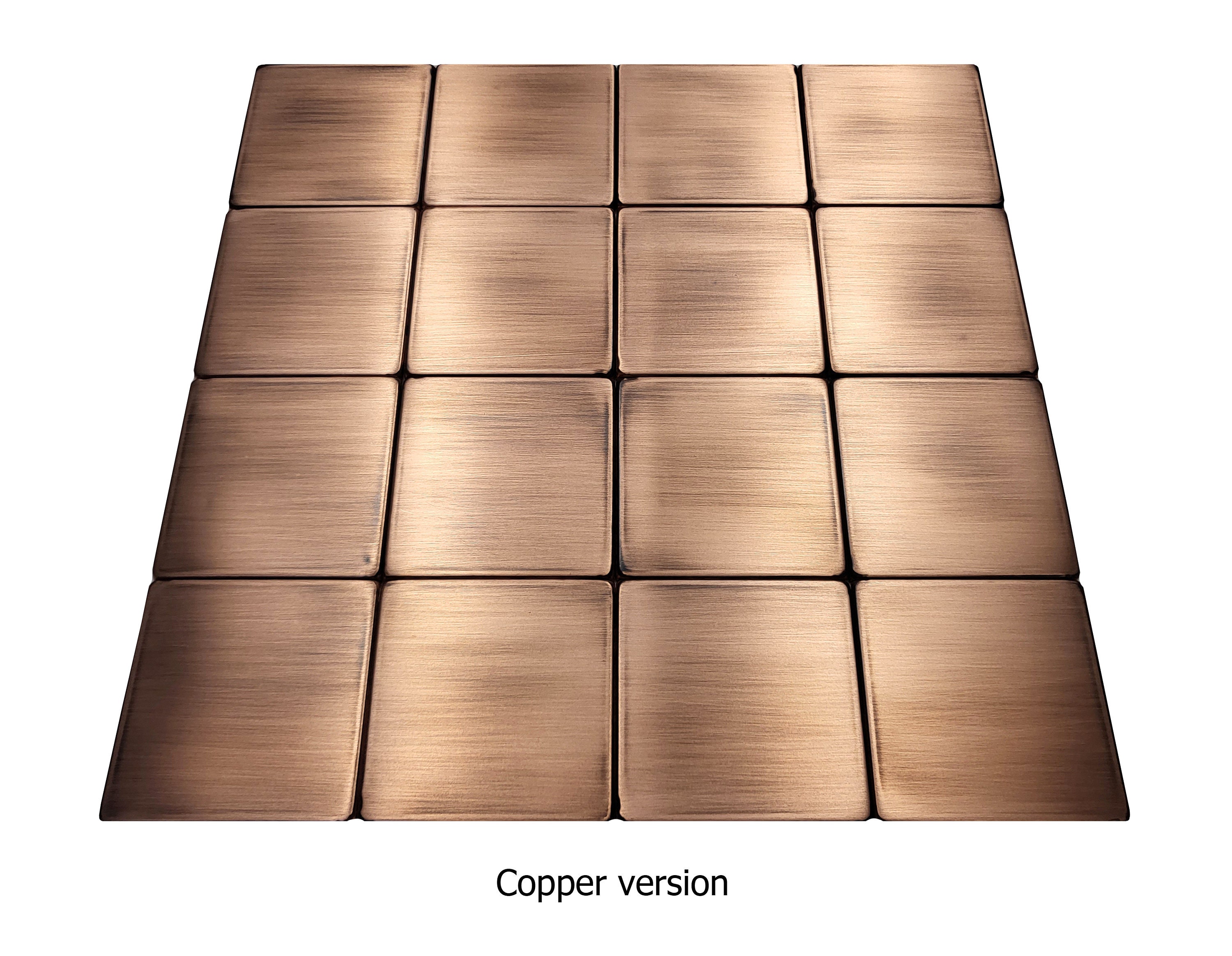 All my tiles are made of 100% real copper. It is not painted plastic or other copper-colored material that you can see from other manufacturers. I also offer tiles made of 100% brass and stainless steel.