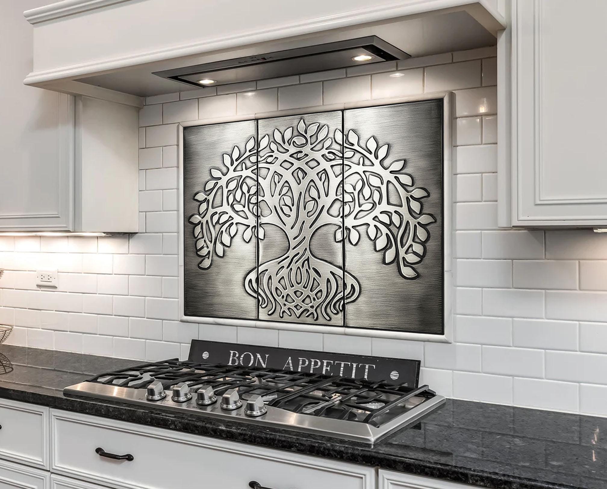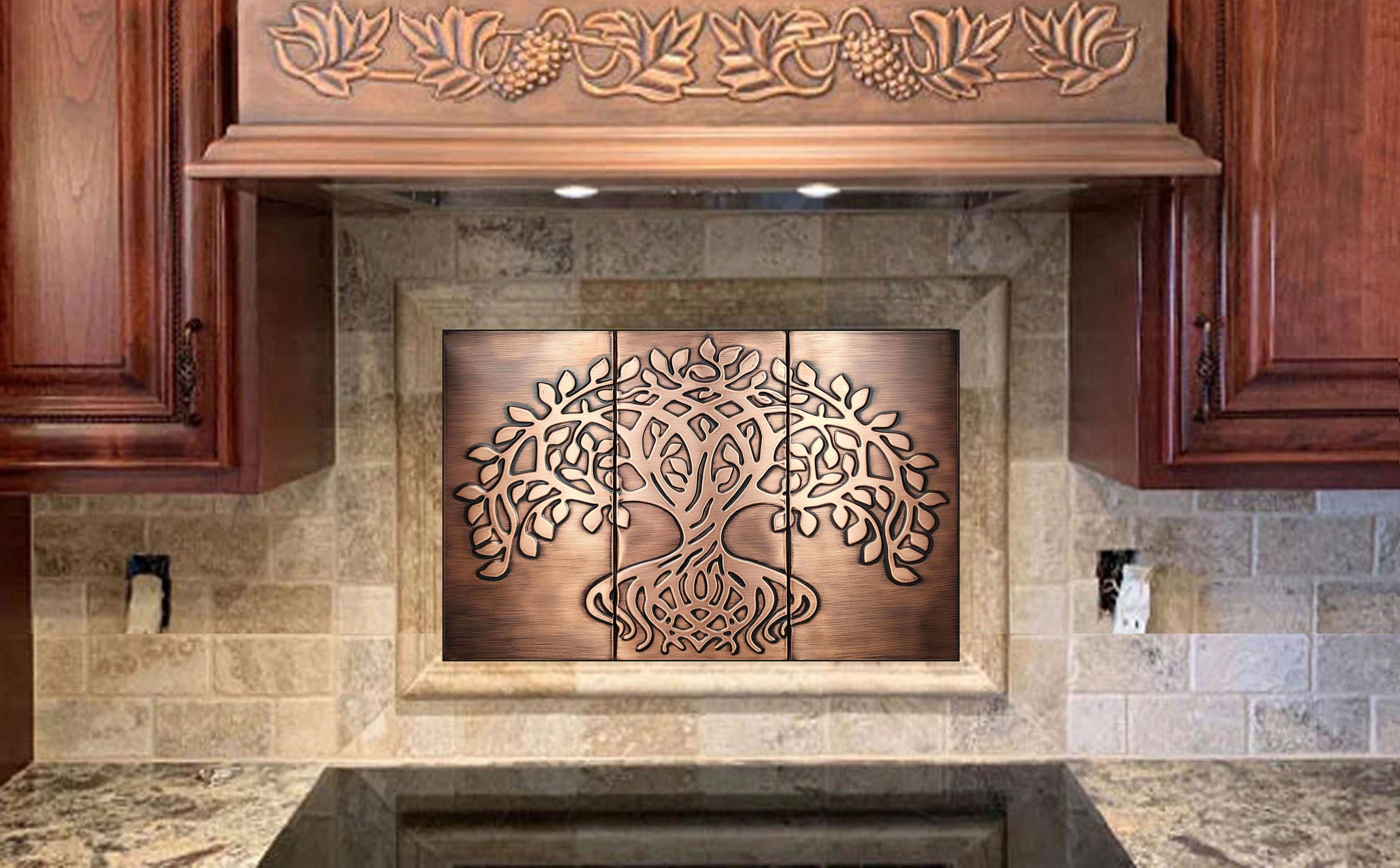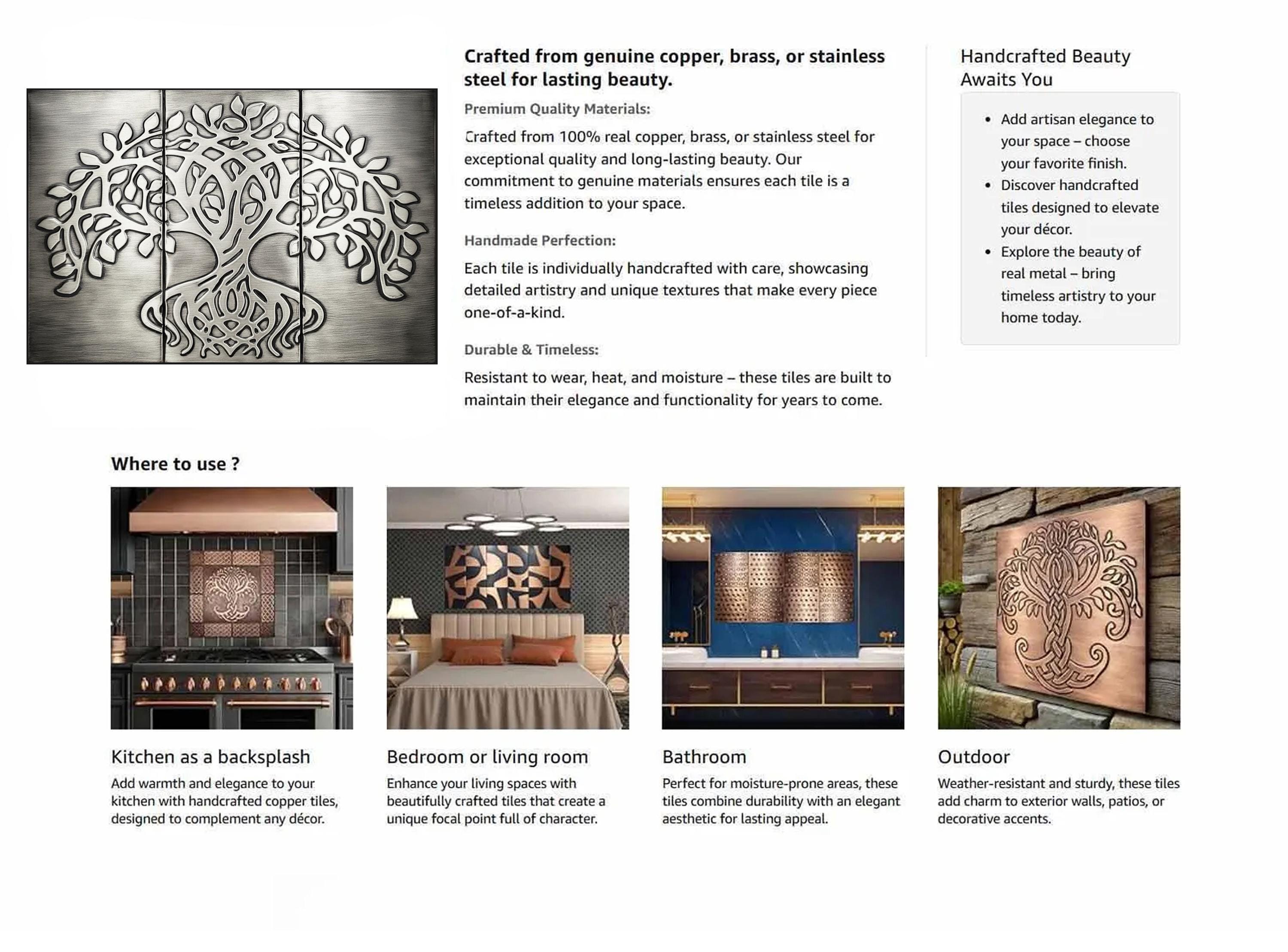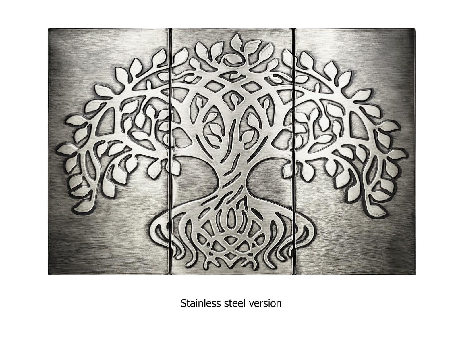 ⚒️ Made by hand from premium copper, brass, or stainless steel, each tile is brushed, polished, and protected with wax – creating a finish that blends rustic authenticity with sleek detail. The set is composed of 3 individual tiles, perfectly aligned to create one powerful centerpiece.