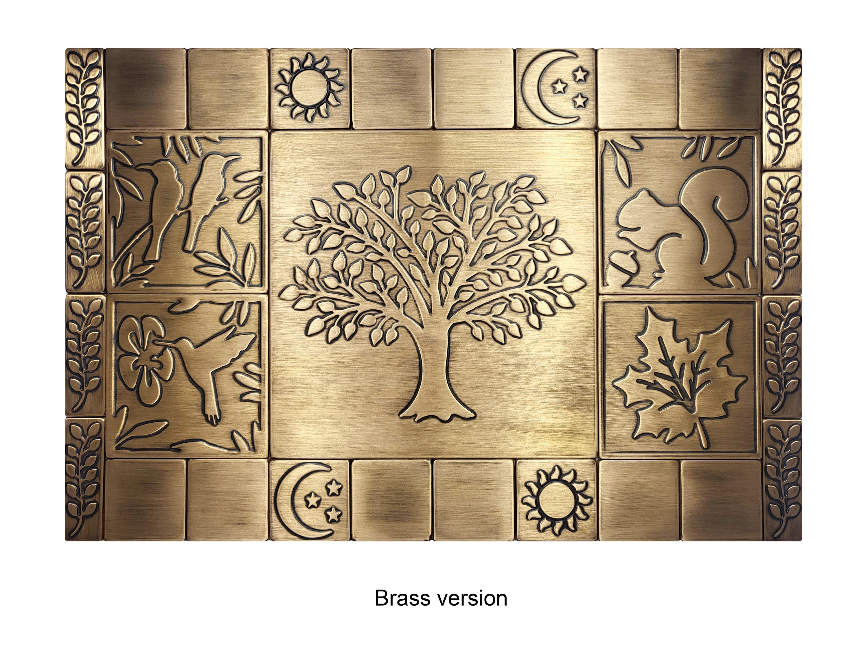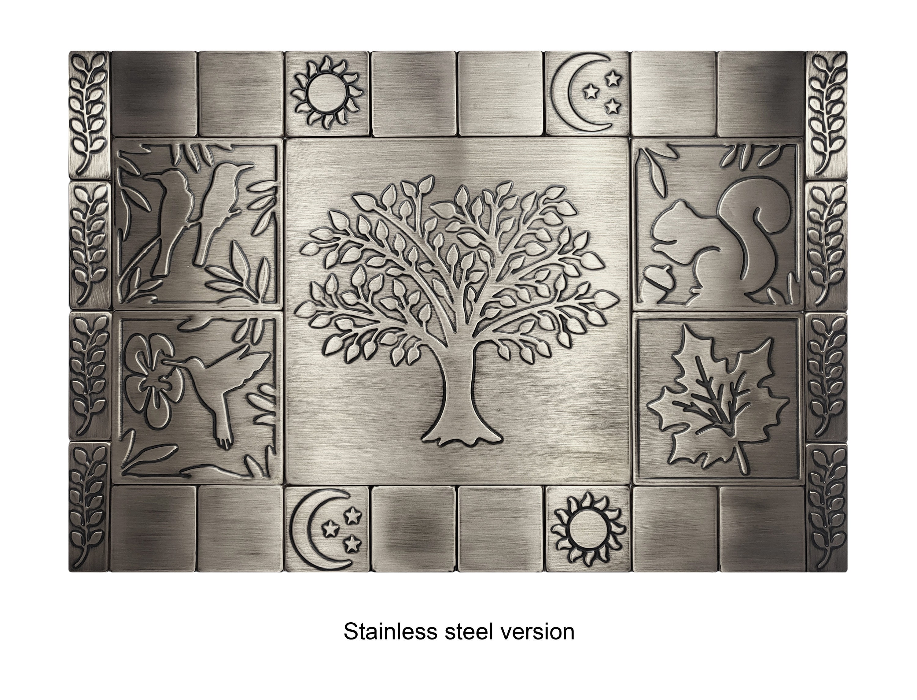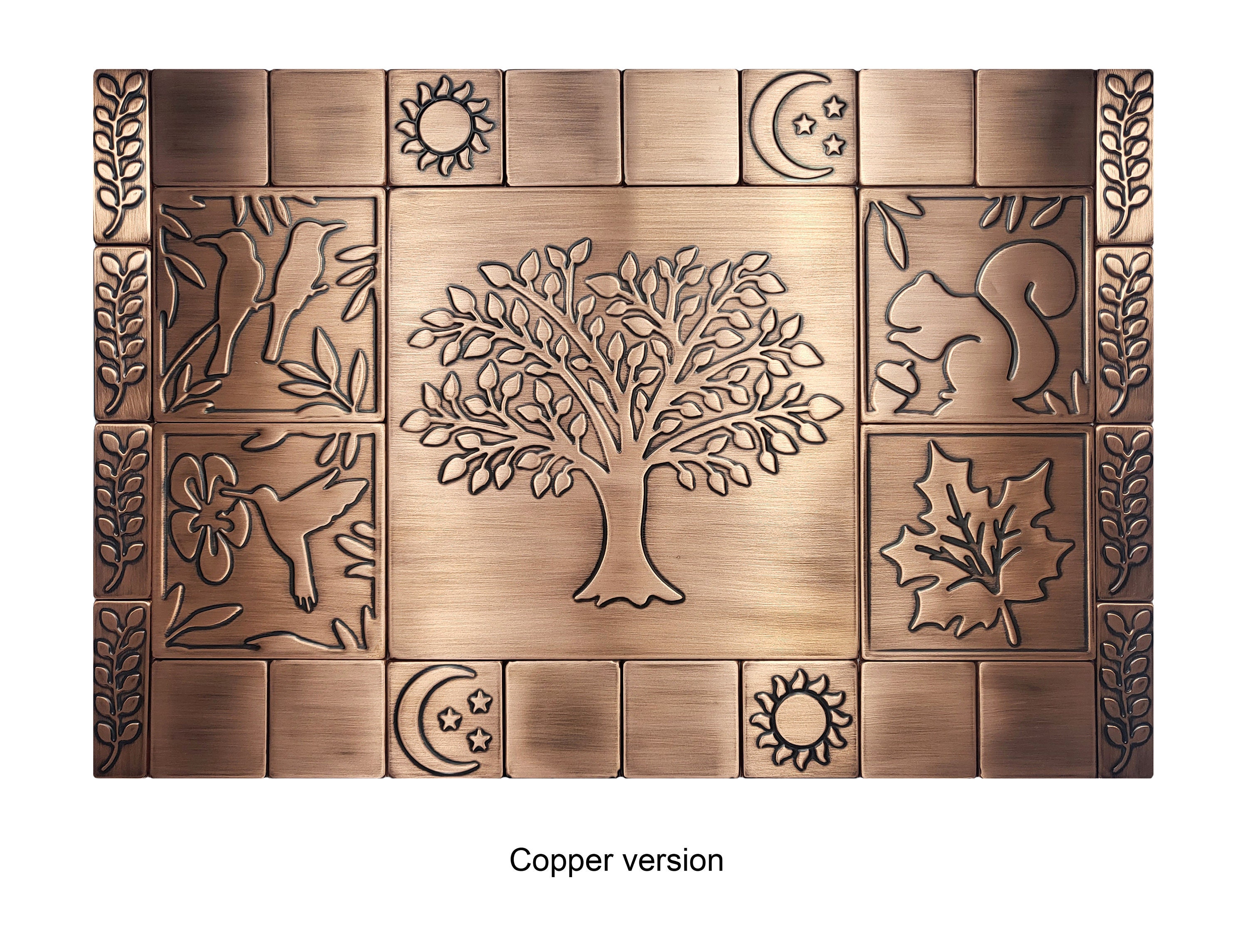 From the central Tree of Life to nature’s elements surrounding it, every tile speaks a visual language – this isn’t just décor, it’s narrative metalwork.