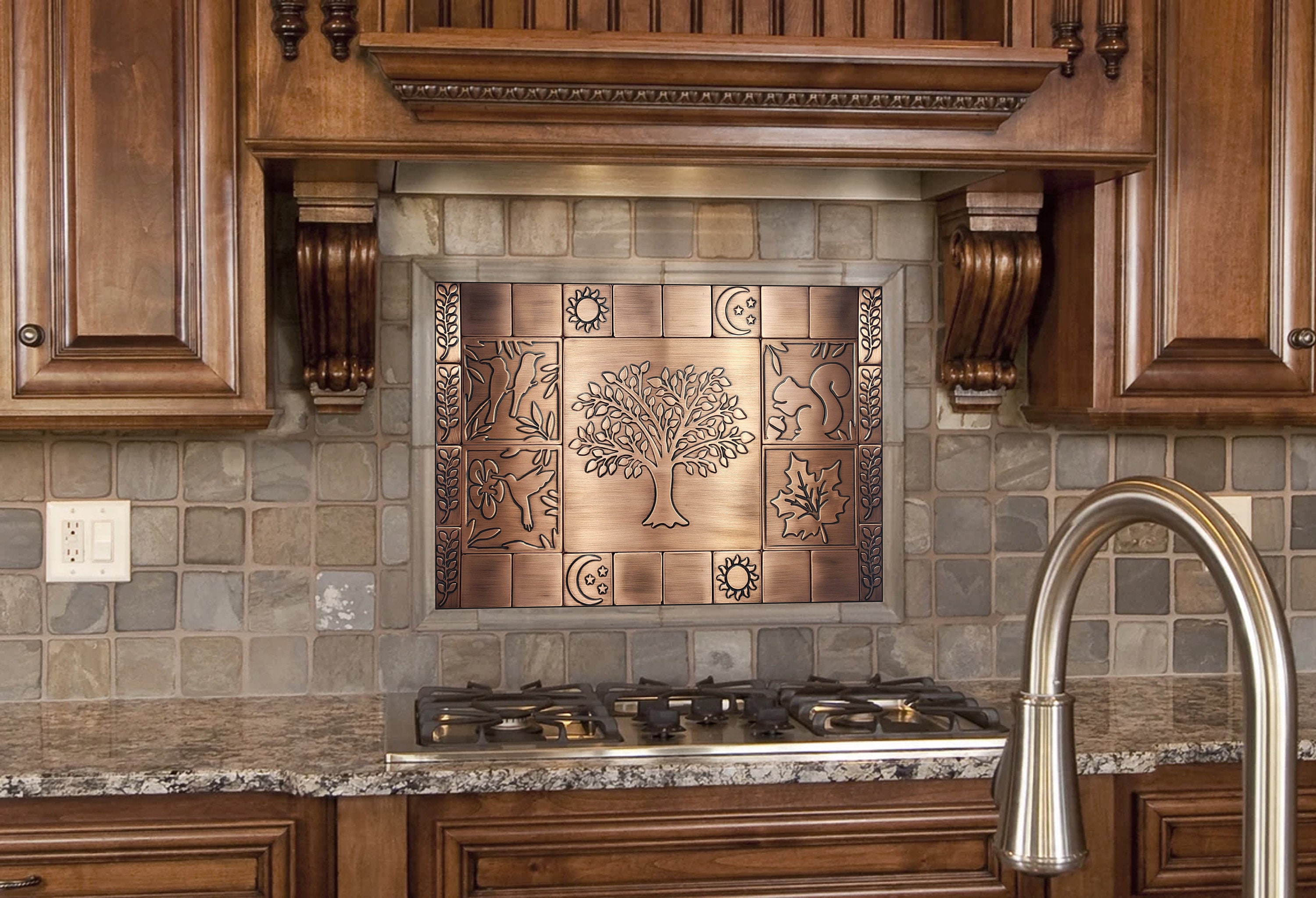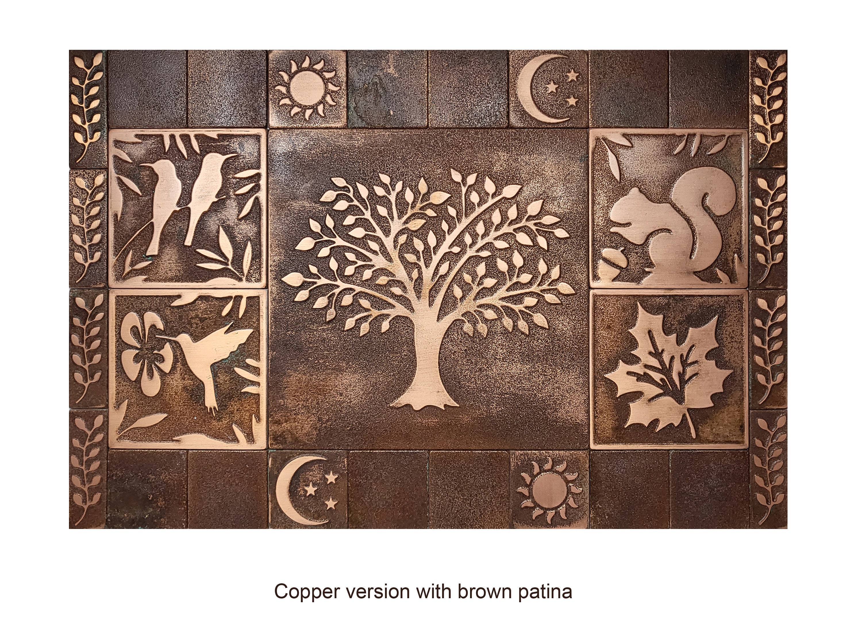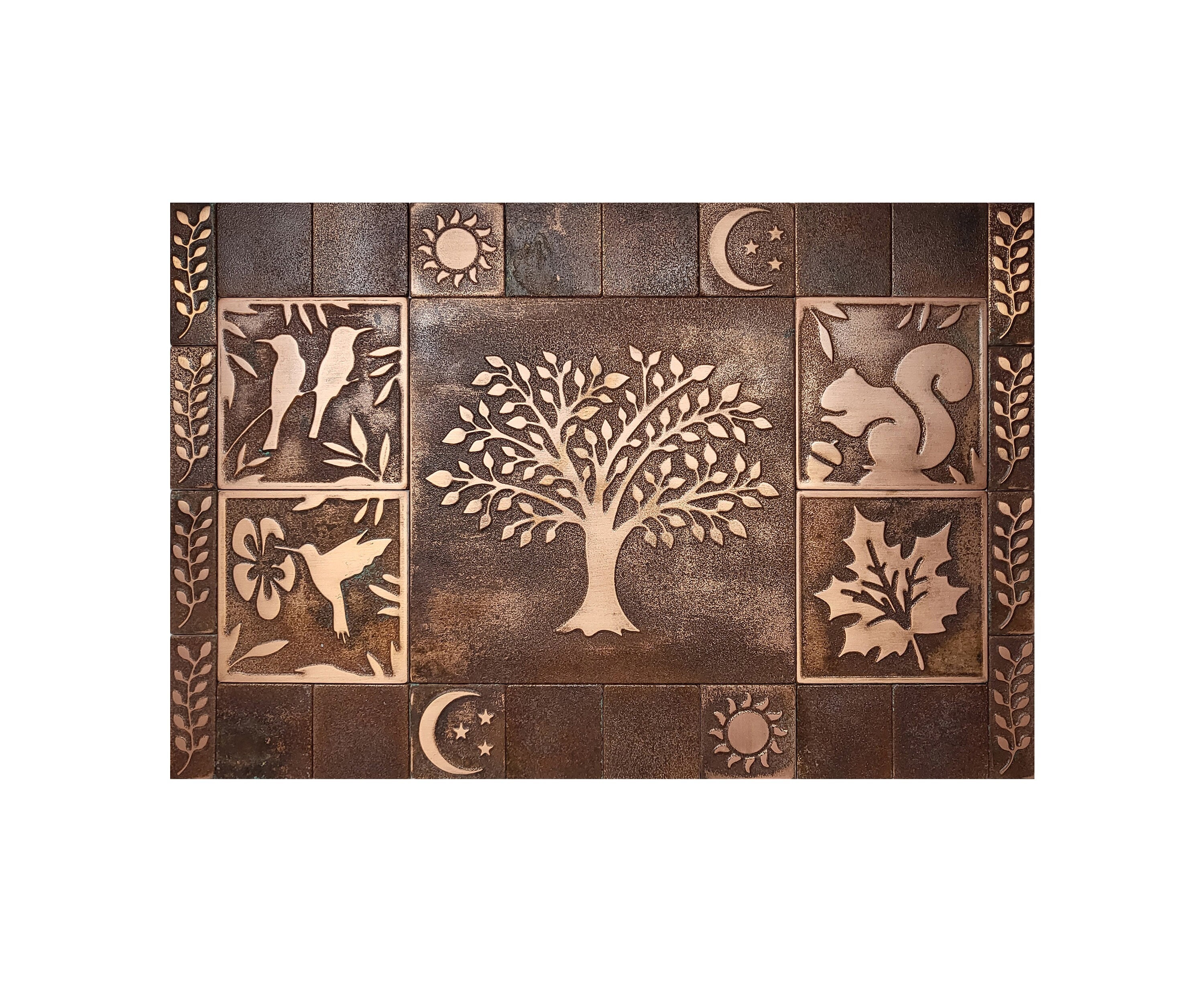 Real Metal Backsplash Tile Set – 29 Handmade Copper Tiles | Tree of Life & Nature Motifs | Large Decorative Wall Art for Kitchen or Home