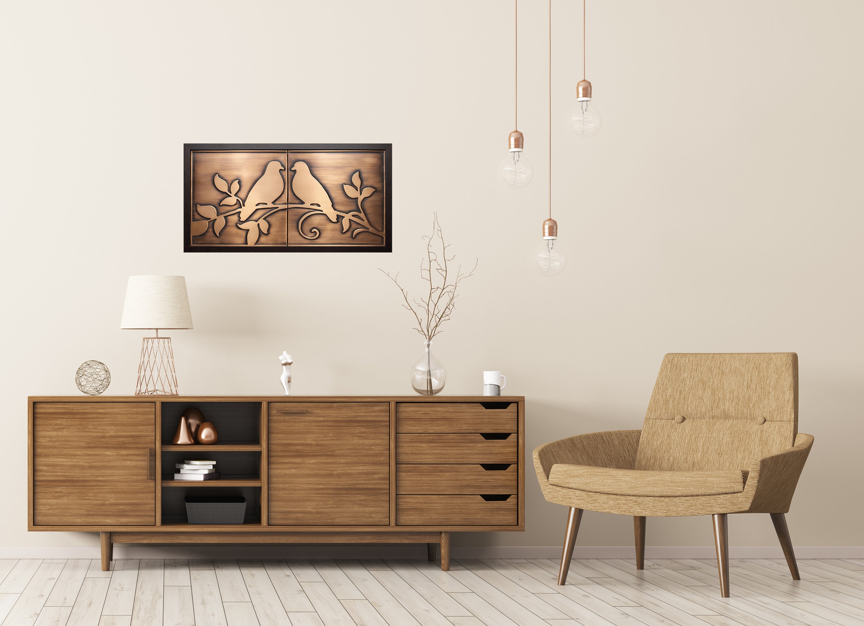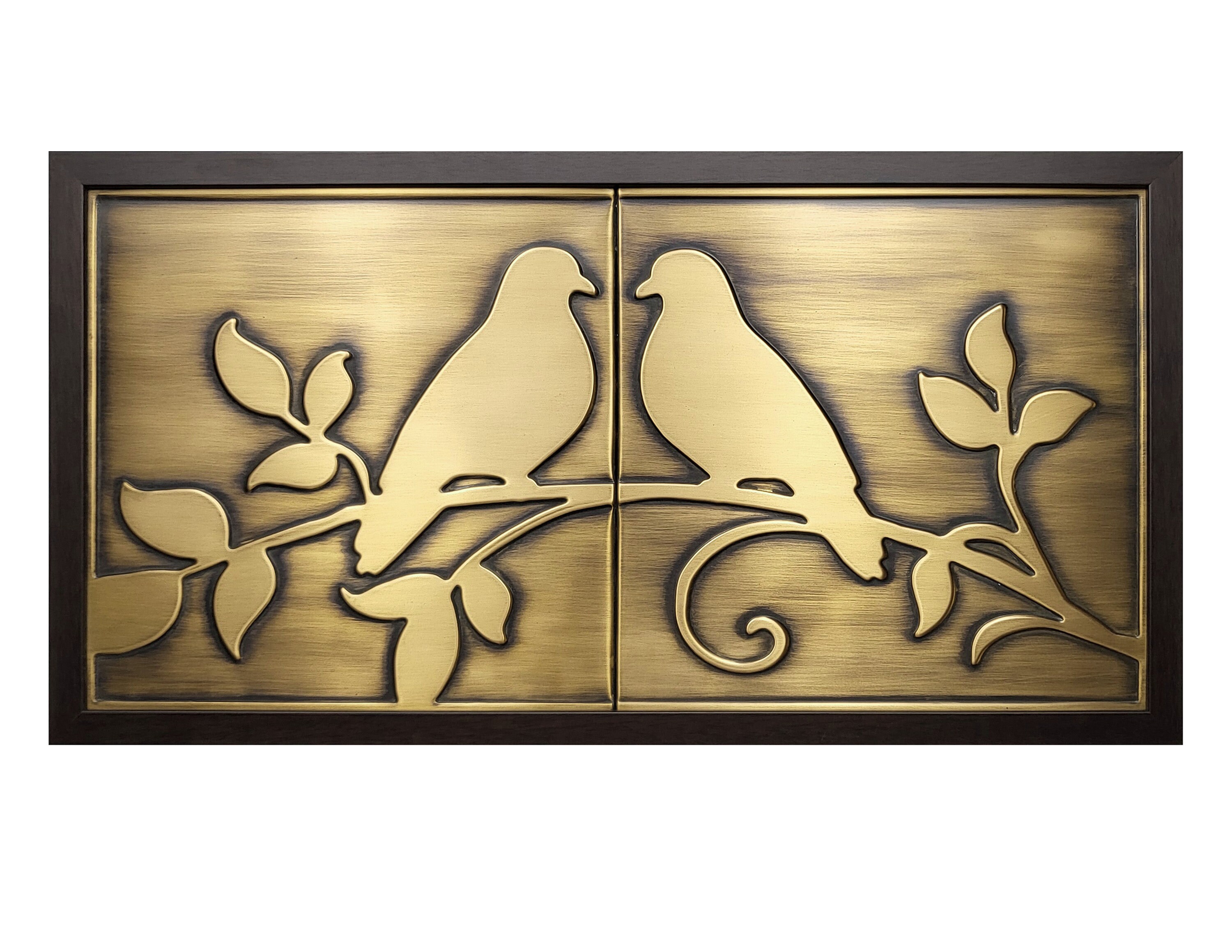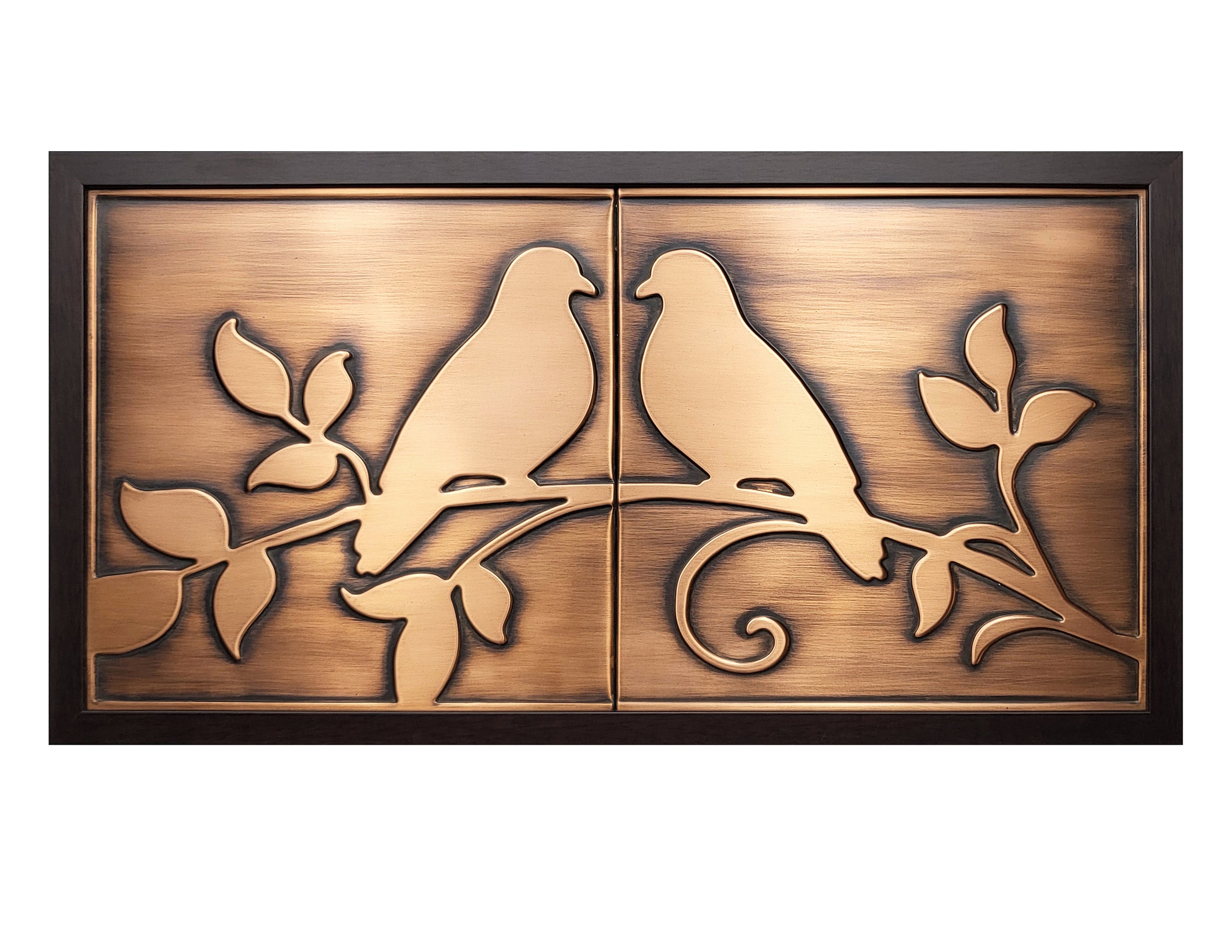 Each set is made from real copper, brass, or stainless steel, and deeply etched with precision to highlight every feather and curve. Finished in a warm, rustic tone and framed for easy hanging, it’s the perfect accent for any romantic space – bedroom, hallway, or living room.