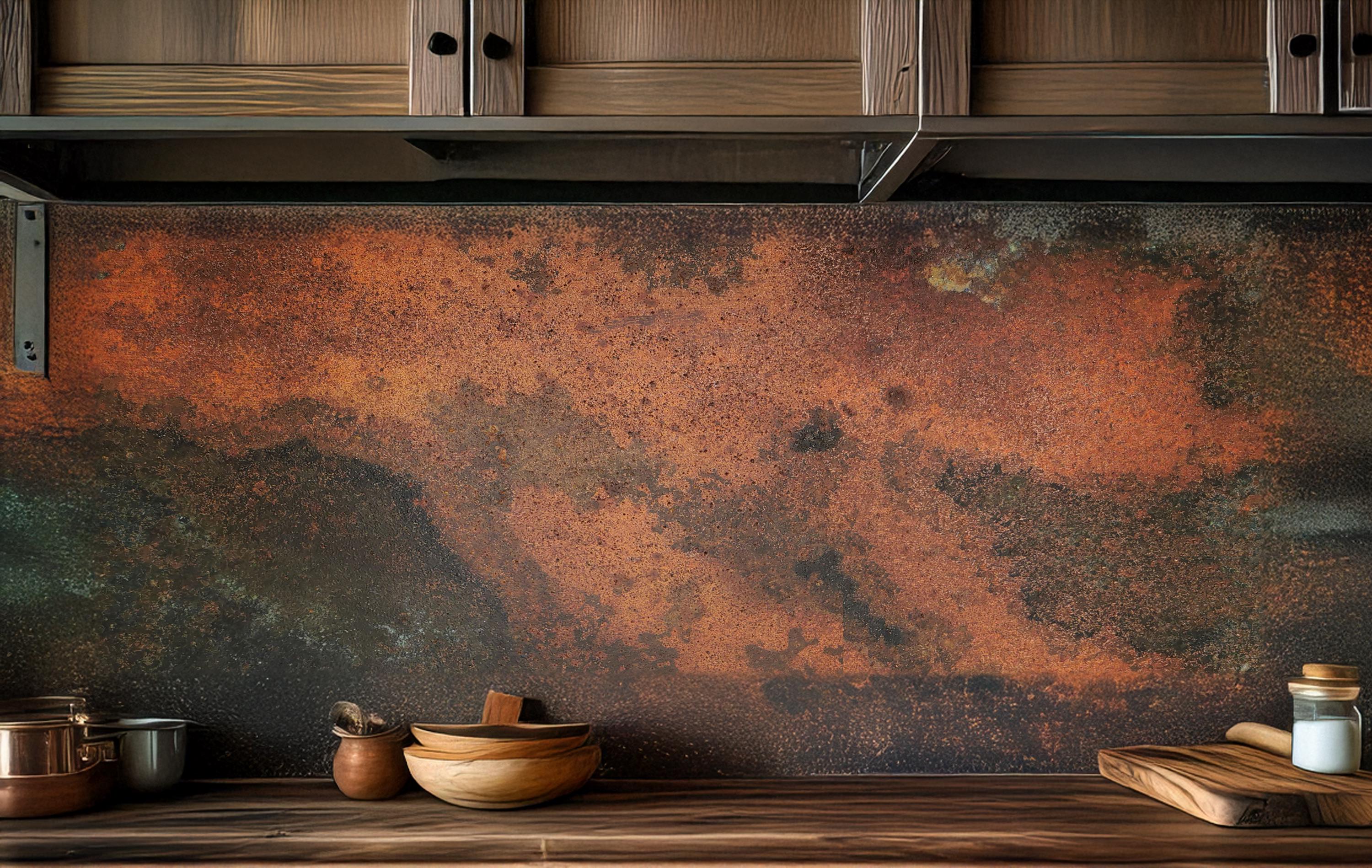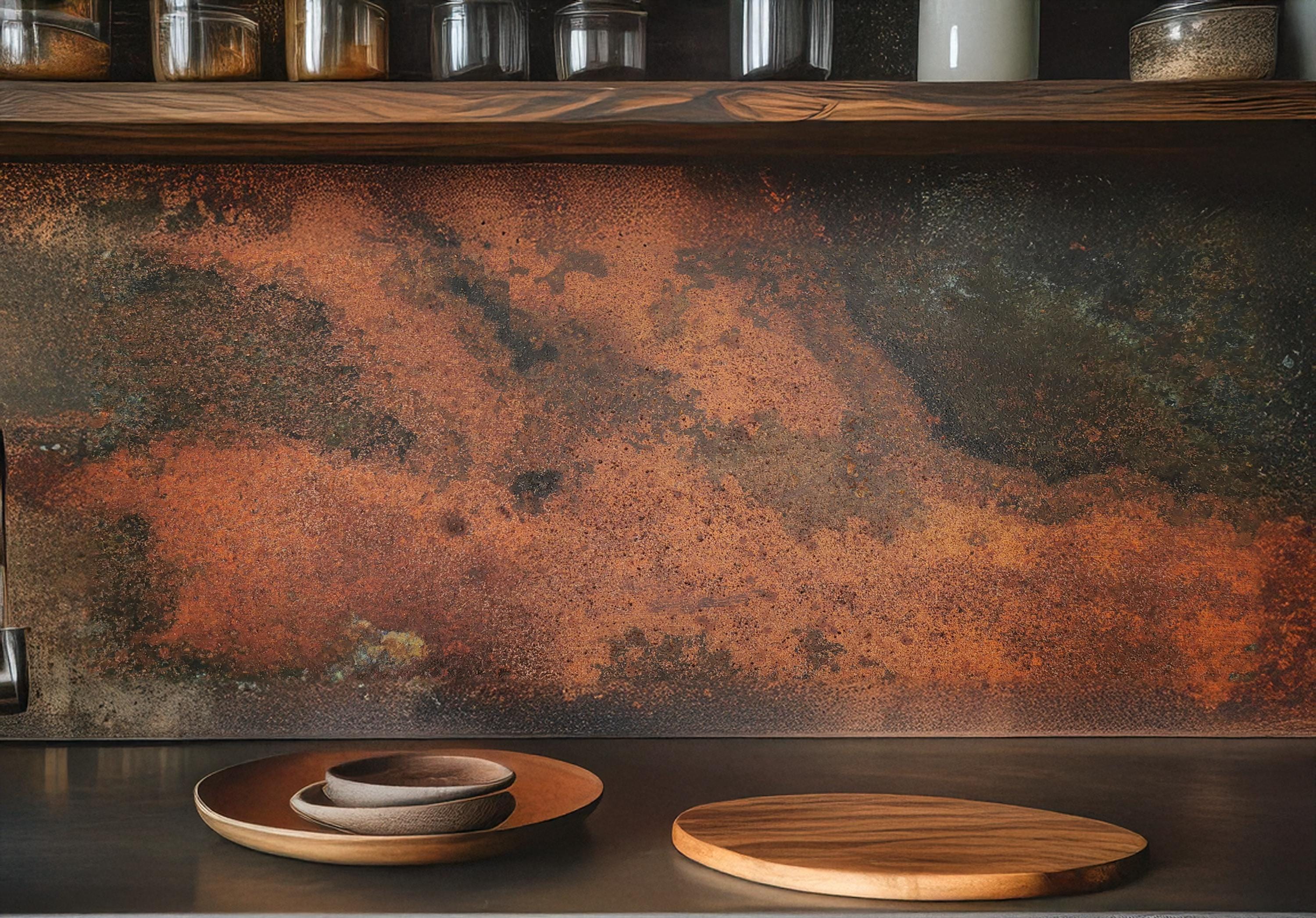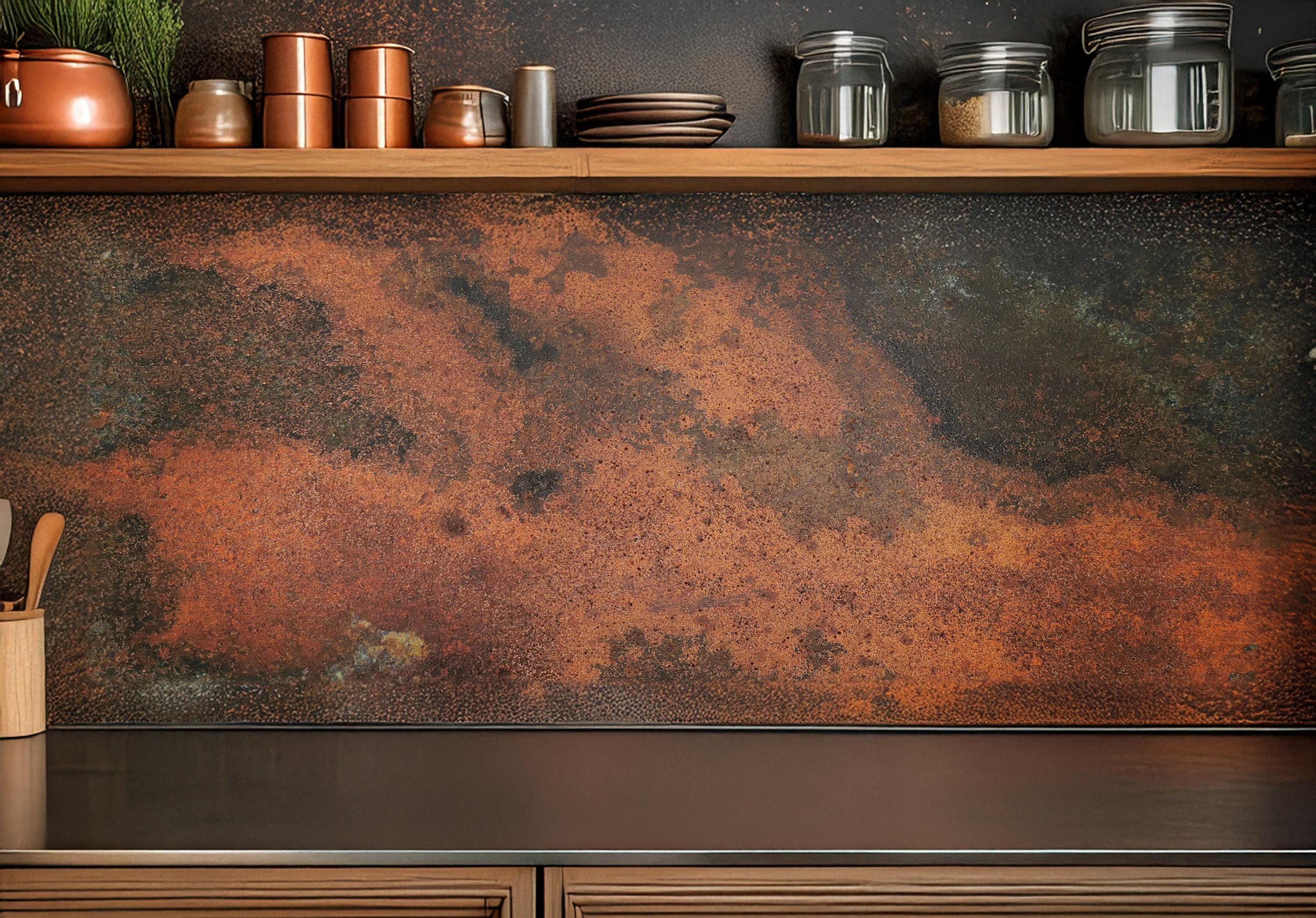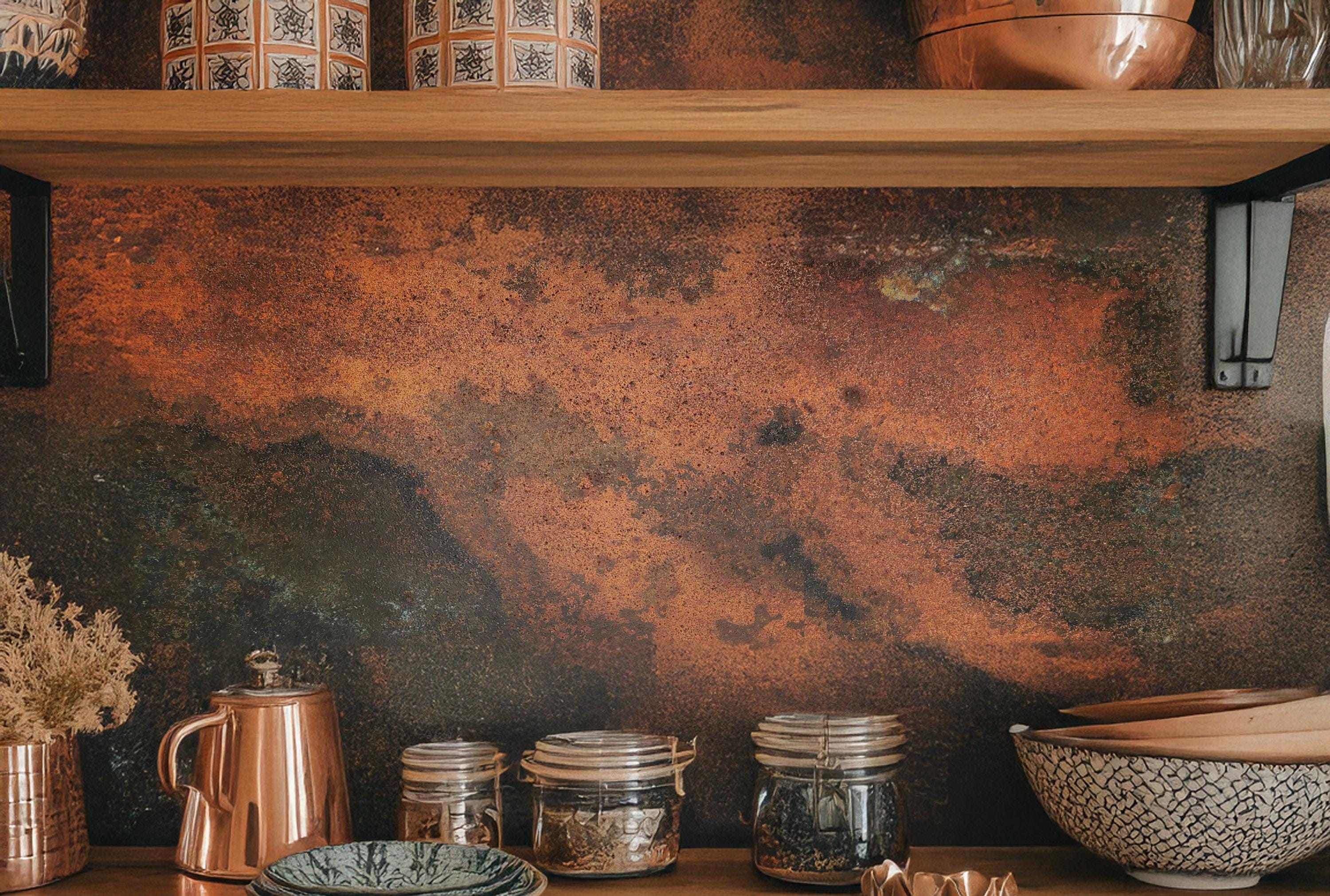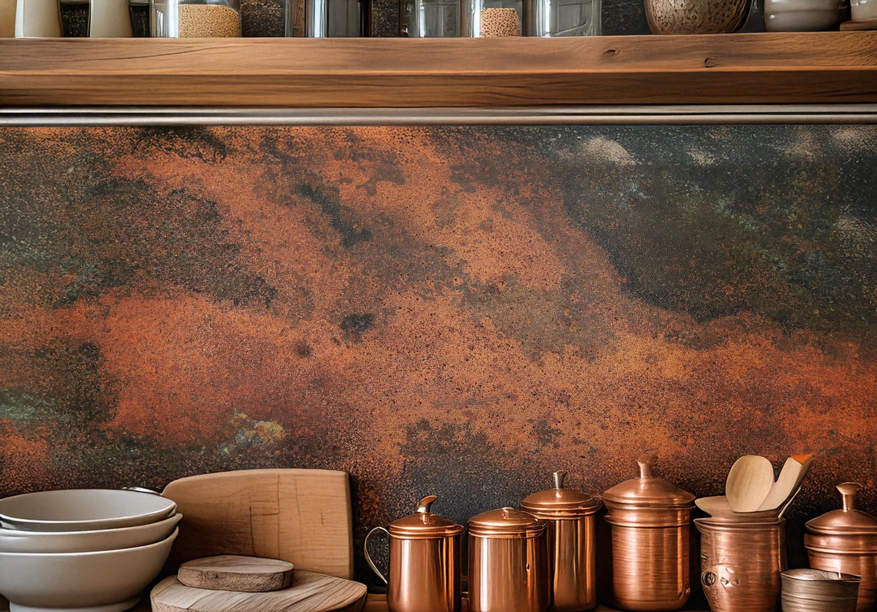 Real Copper Backsplash Panel β Handmade Metal Wall Art for Kitchen β Rustic Patina Finish β Eternal Copper Inferno β Artisan Accent Panel