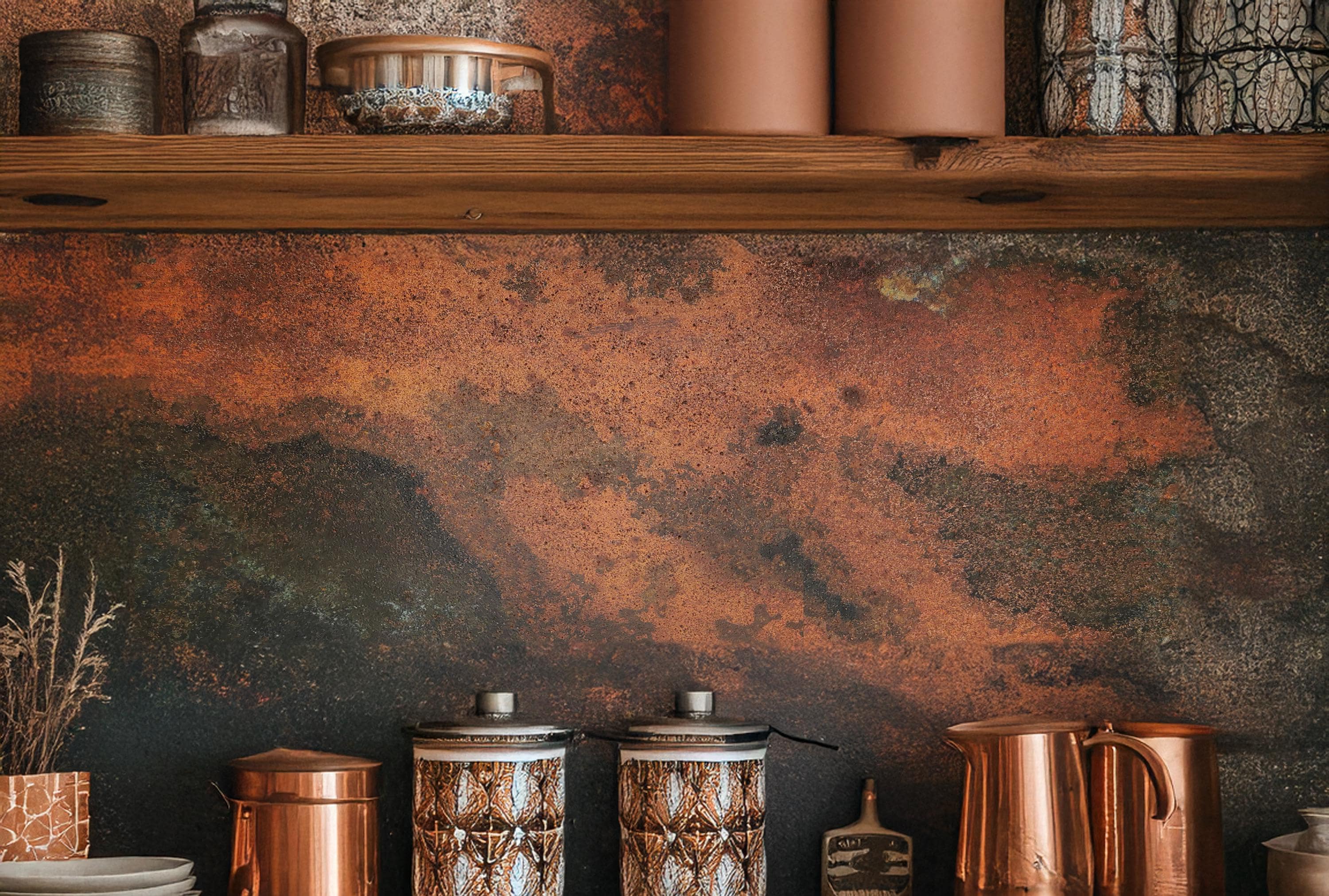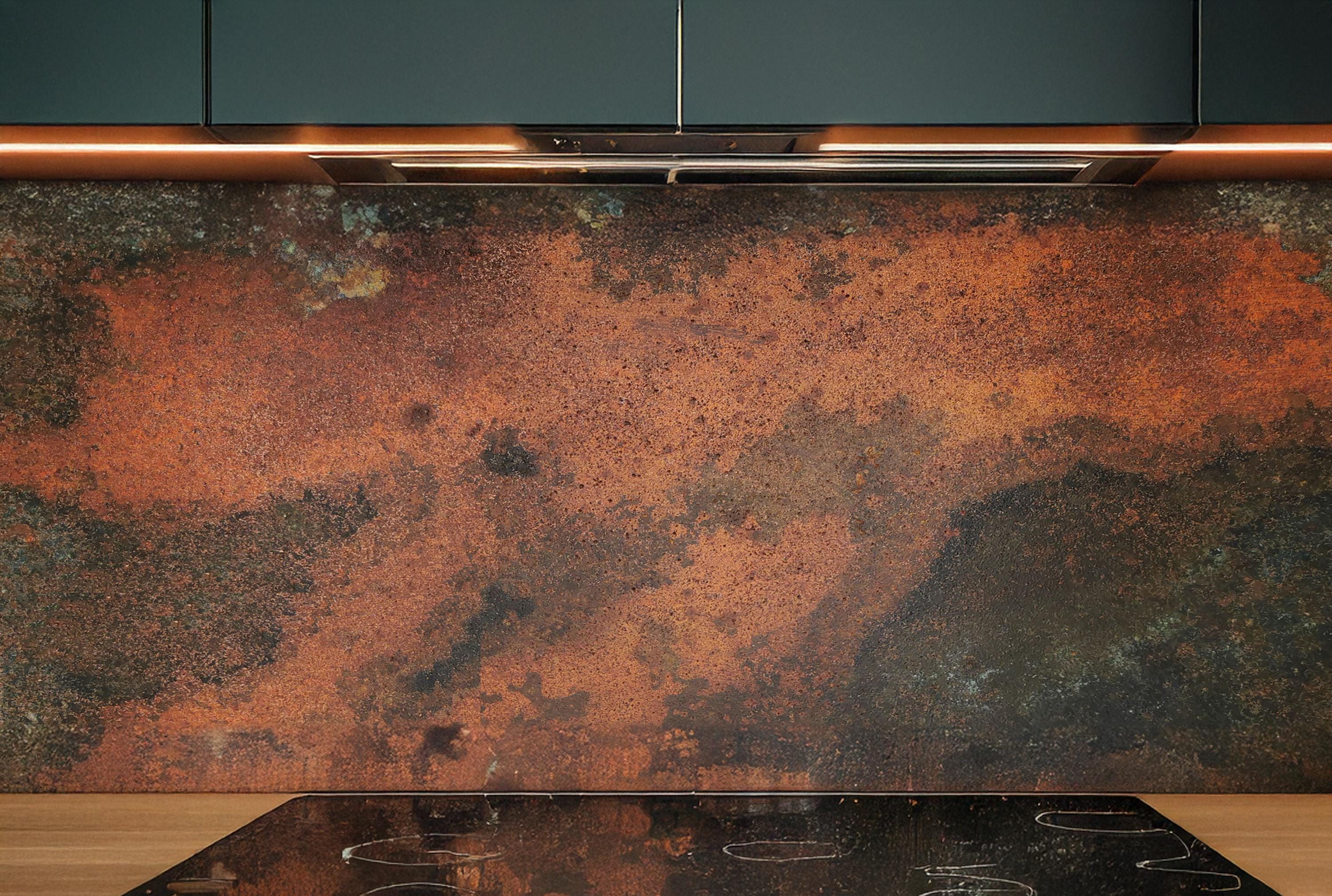 Transform your kitchen with the molten glow π₯ of our Eternal Copper Inferno backsplash panel. Meticulously handcrafted βοΈ from solid copper π§‘, each piece reveals an intense patina with rich copper reds, volcanic browns, and charred black tones π β like captured fire forged into metal.
