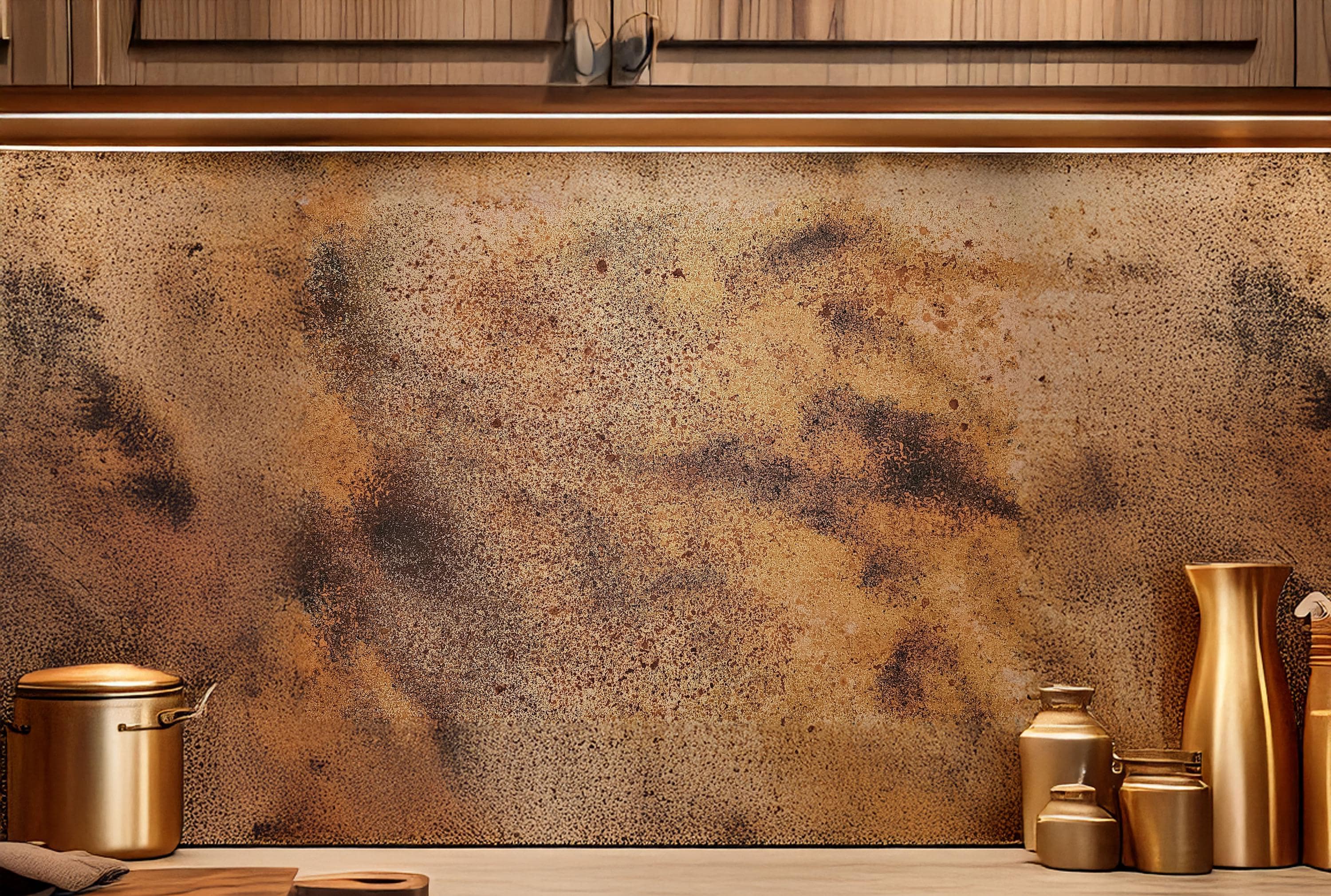 Brass Backsplash Panel β Handmade Metal Wall Art for Kitchen β Rustic Patina Decor β Mystic Brass Nebula β Modern Rustic Home Accent