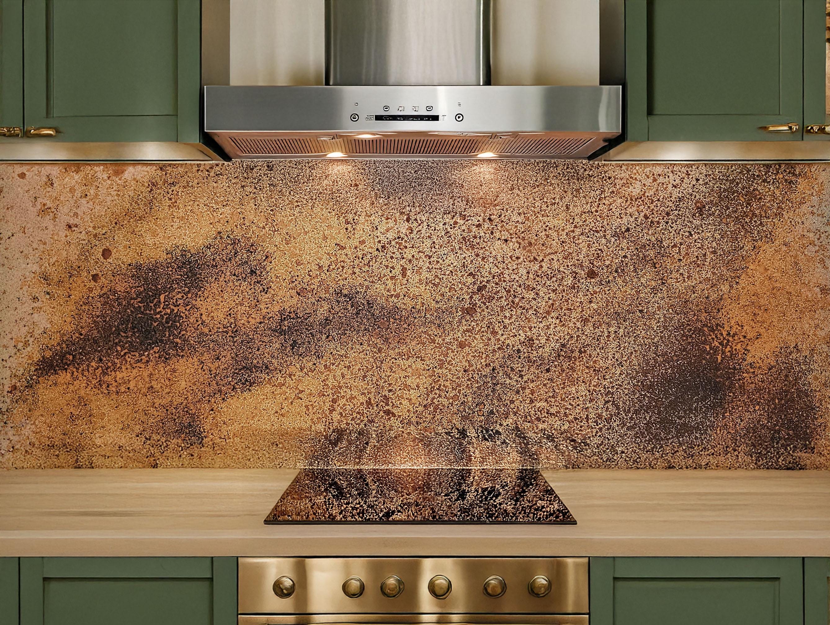 Elevate your home with the cosmic glow of the Mystic Brass Nebula backsplash panel.