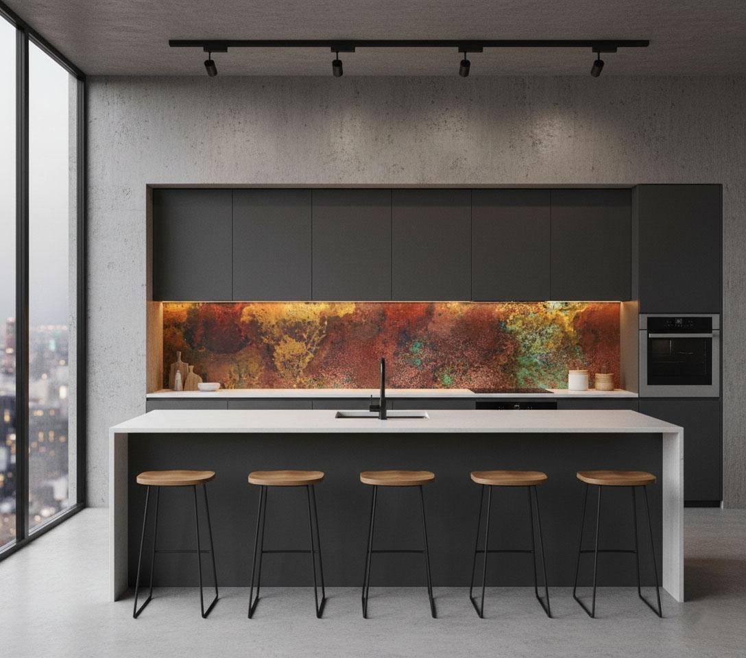 The Savage Copper Bloom finish received accolades at the 2025 European Metal Arts Showcase for its fearless depth of color and bold raw beauty. 🌍 From Milan to New York, this design turns walls into unforgettable statements.