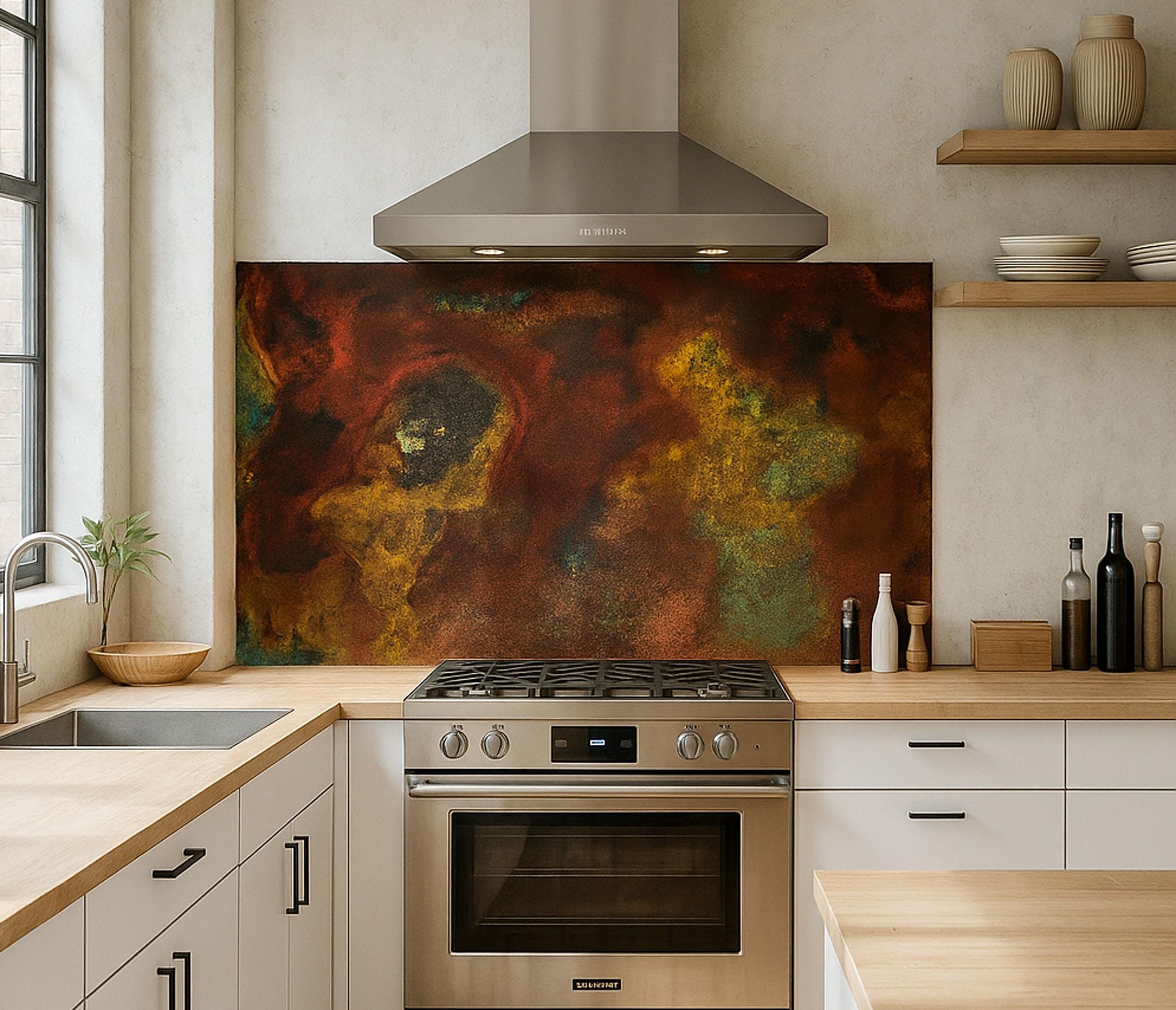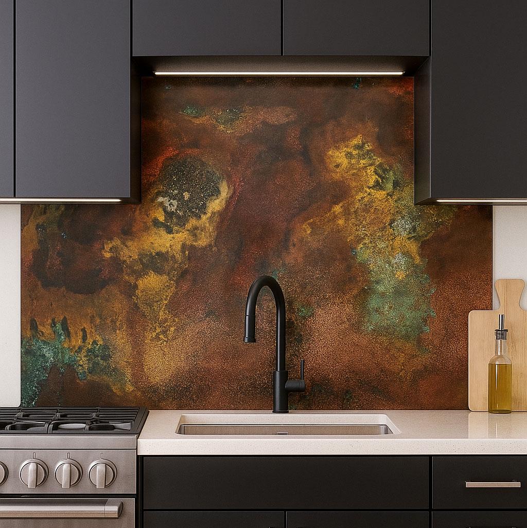 Real Copper Wall Panel – Savage Copper Bloom – Handmade Patina Metal Art – Rustic Modern Decor for Kitchens & Interiors