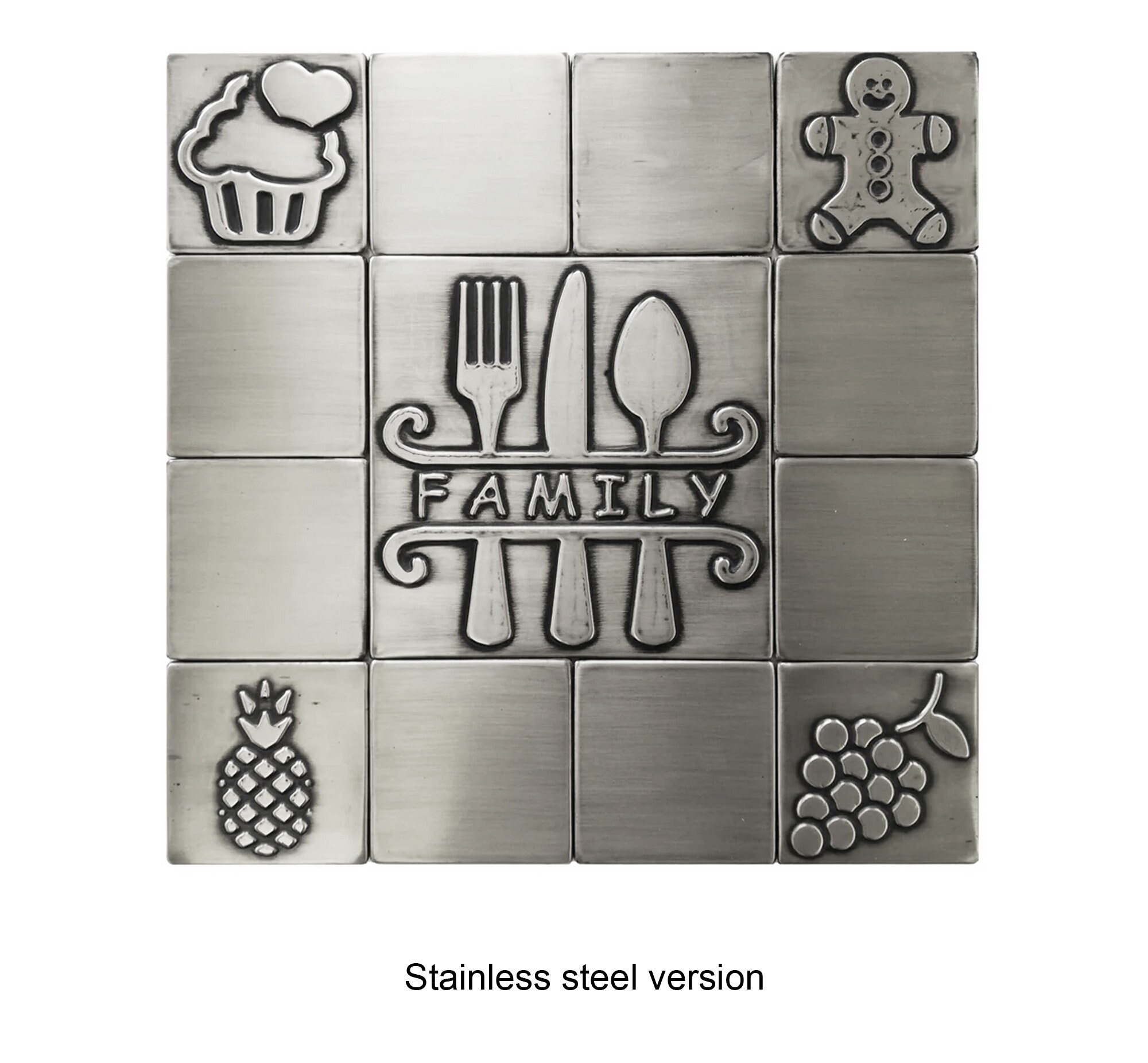 This FAMILY stylish tile is surrounded by eight plain tiles and four pieces corresponding to the idea of the main tile. Family reminds me of homemade food. This set will make any interior cozy and warm.