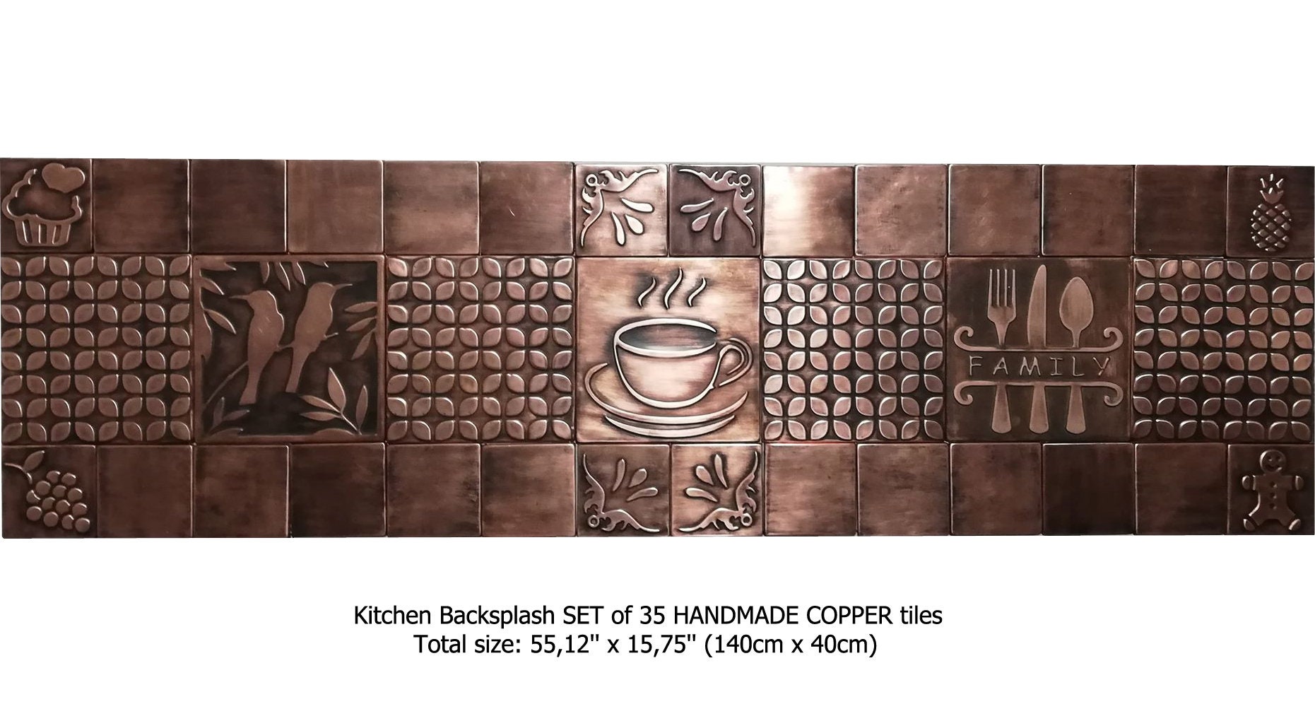 Large Kitchen Backsplash Set of 35 Handmade copper tiles. Perfect for kitchen backsplash. Total size: 55.12'' x 15.75''