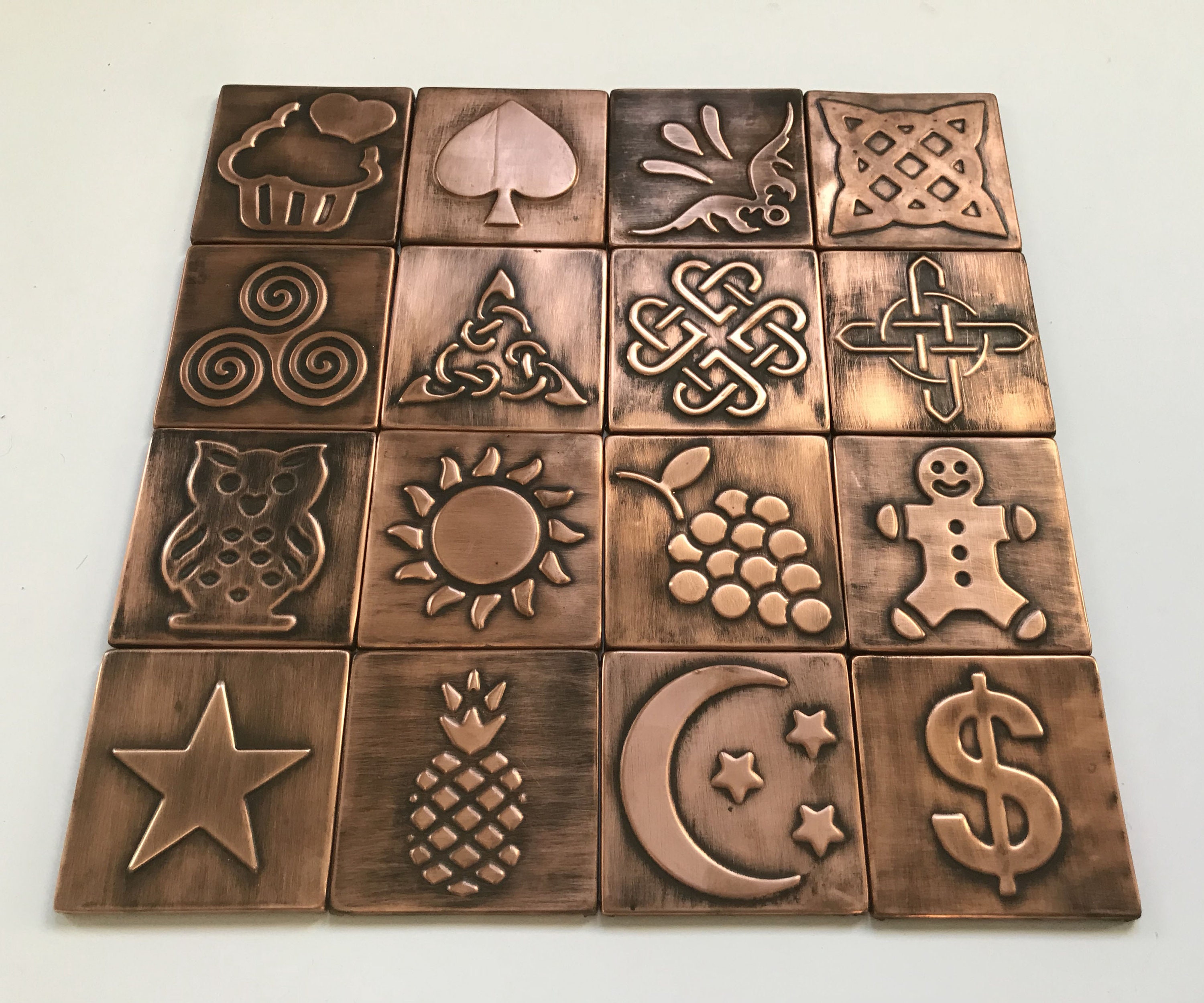 Set of Handmade copper celtic tiles. Each tile is 3.93" x 3.93" (10cm x 10cm)