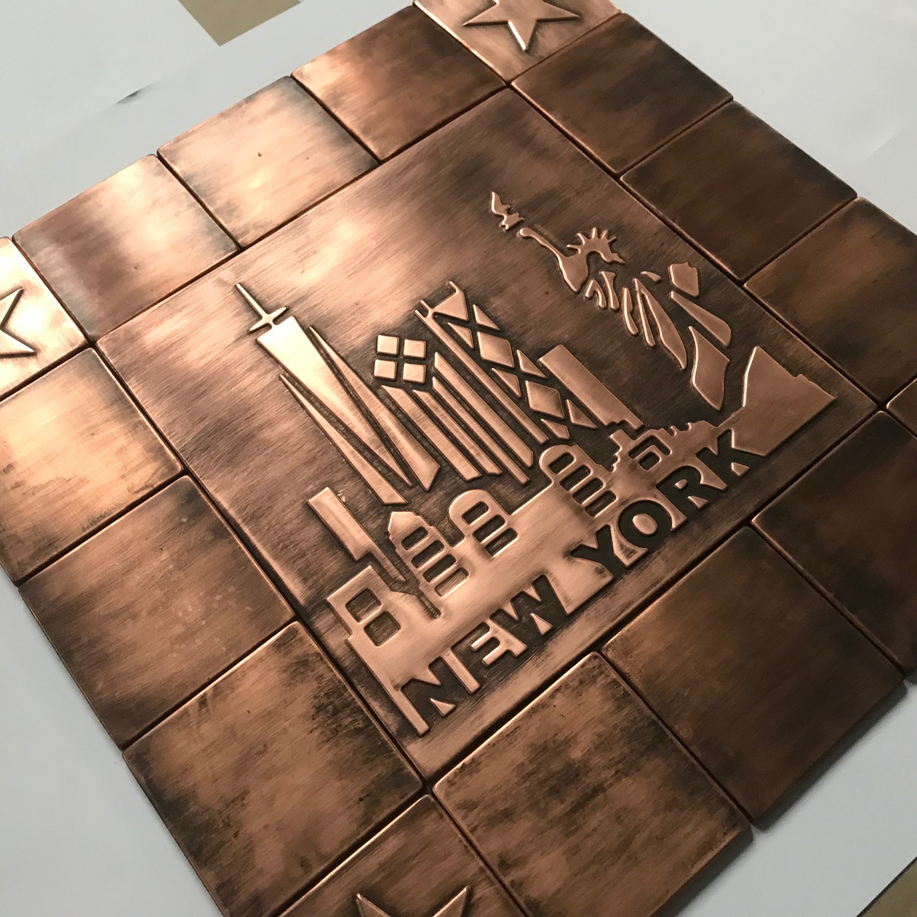New York tiles, SET of 17 Handmade COPPER tiles. Total size: 19.69'' x 19.69'' (50cm x 50cm)