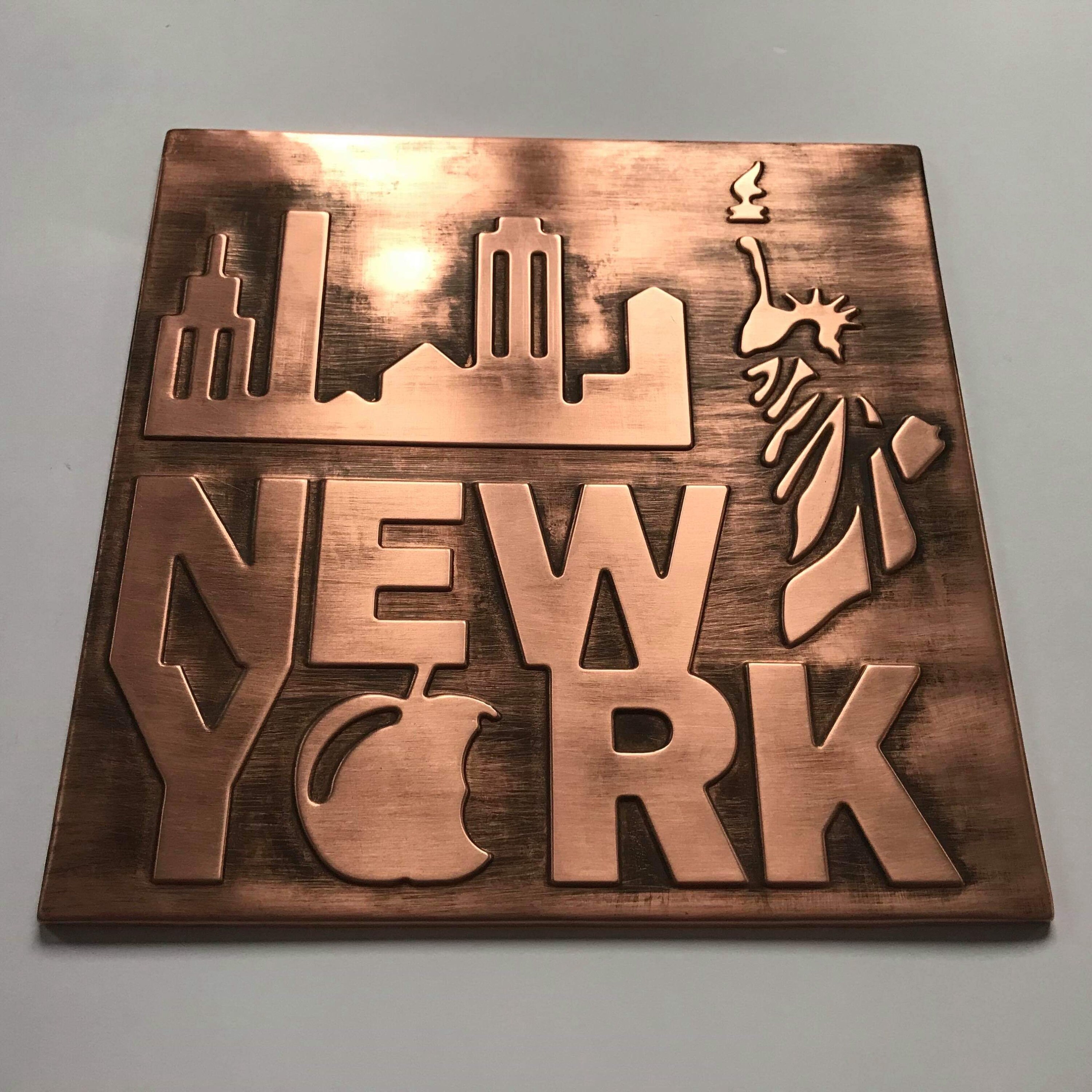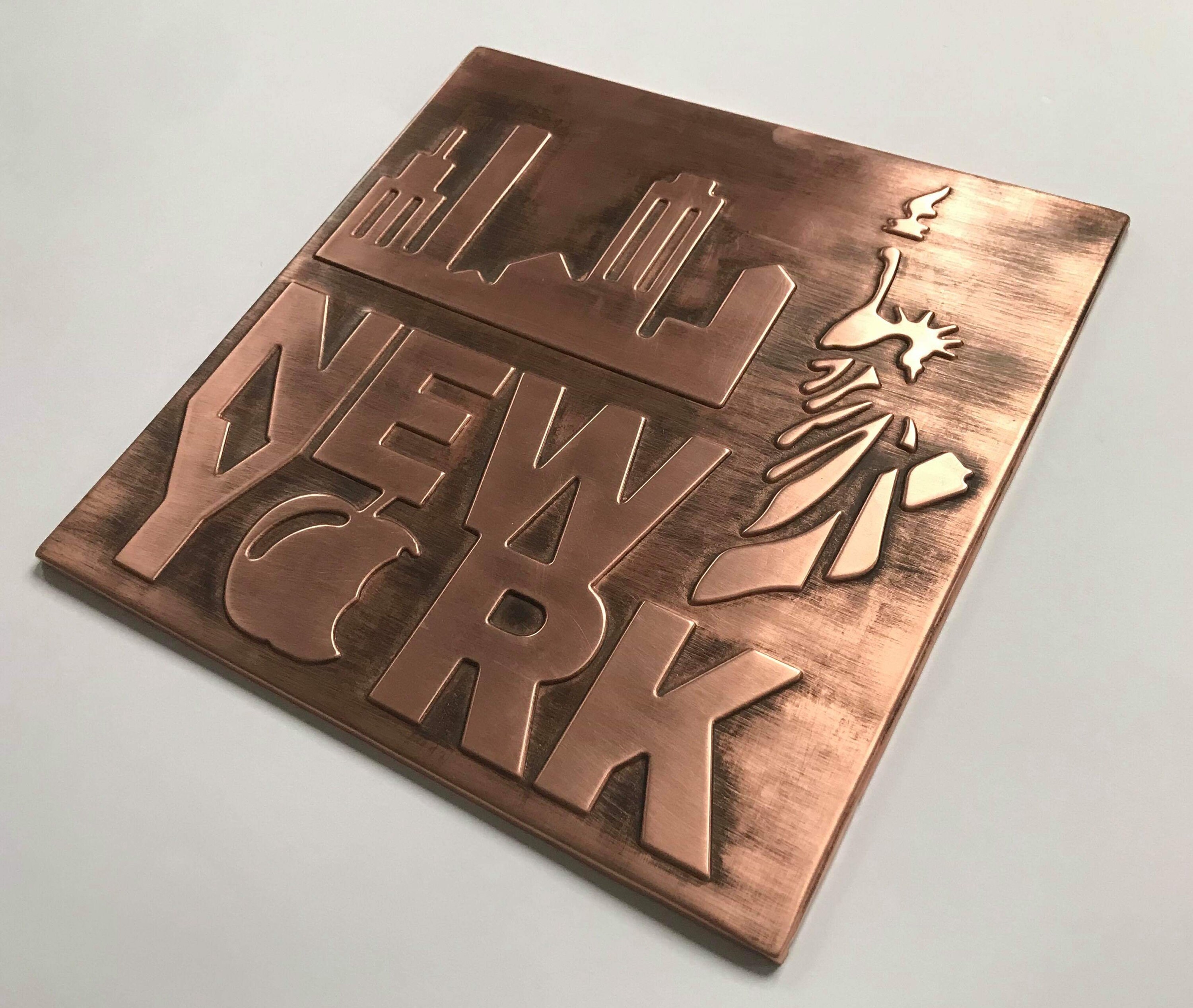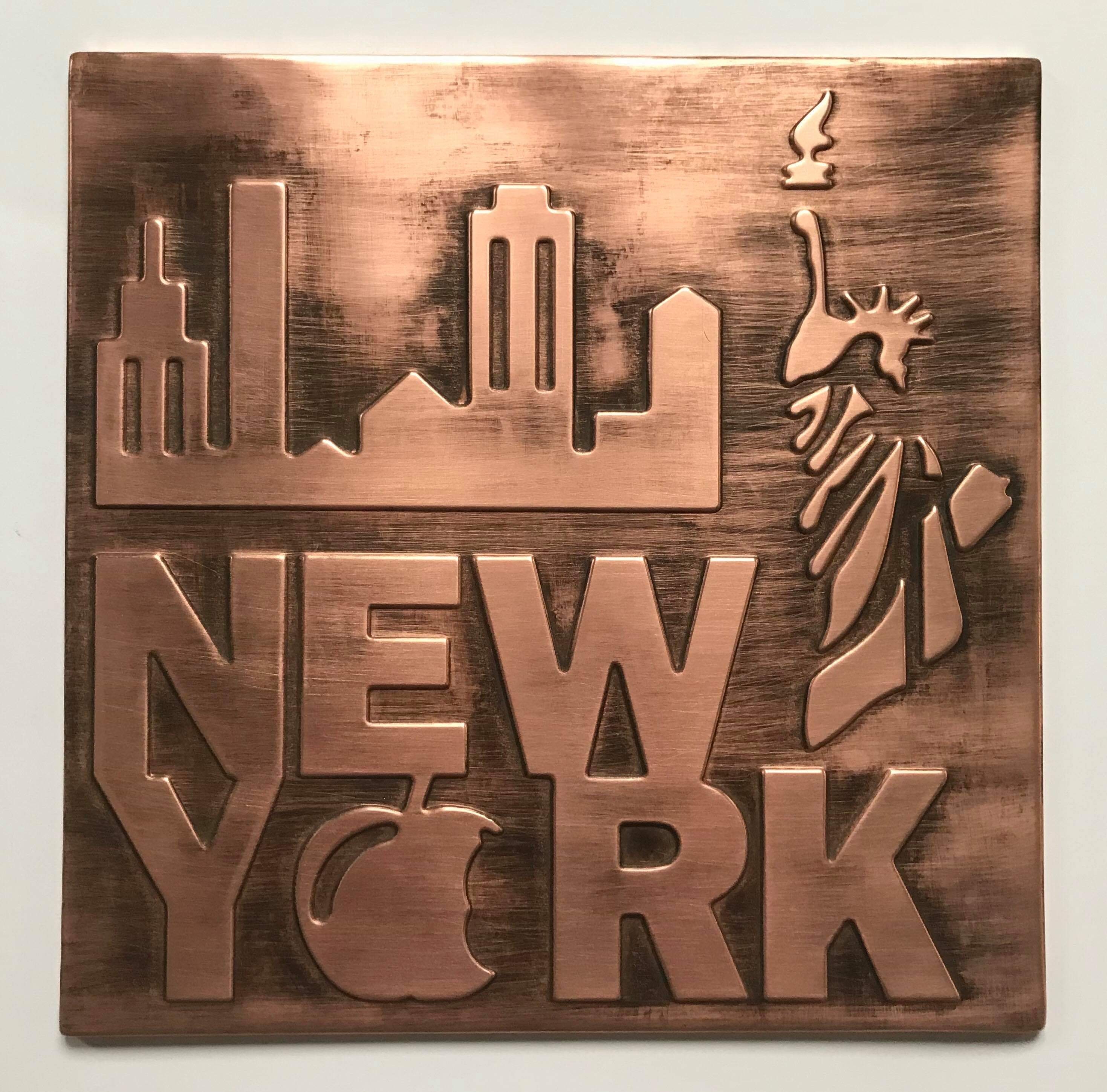 NEW YORK handmade tile, 100% COPPER with patina and wax.