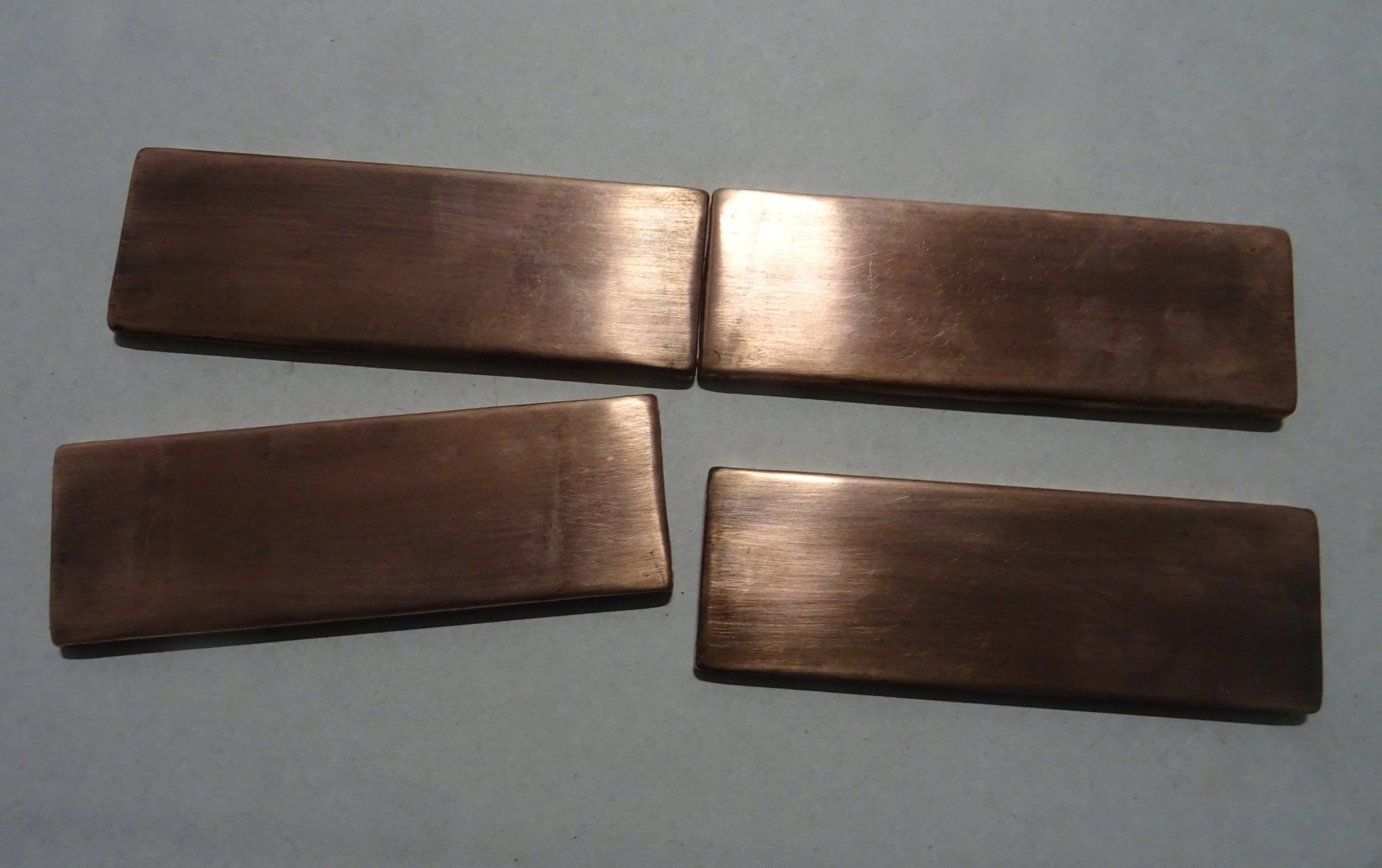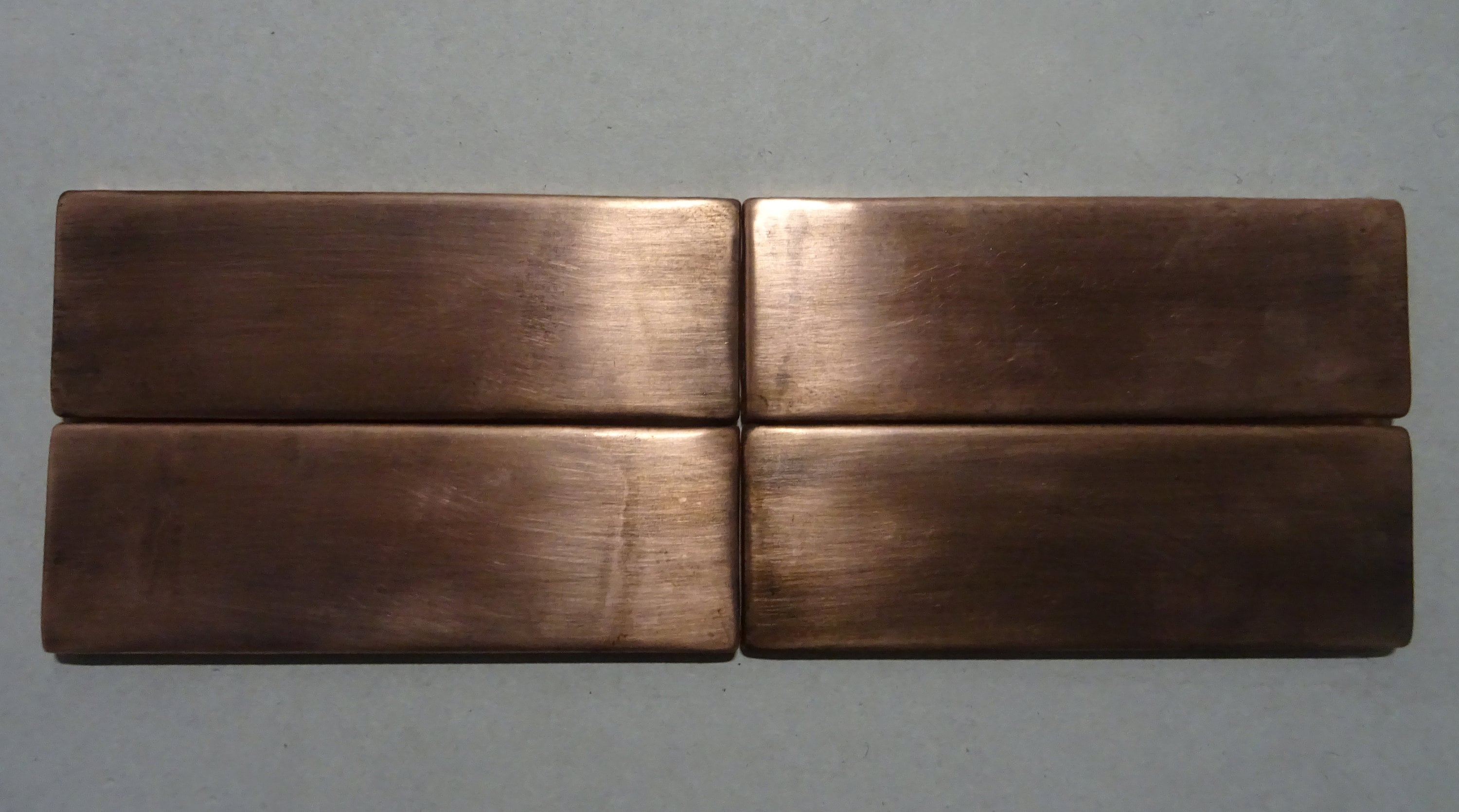 Set of 4 Handmade copper tiles. Perfect for kitchen backsplash, livingroom, fireplace. 100% copper - true metal with patina and wax