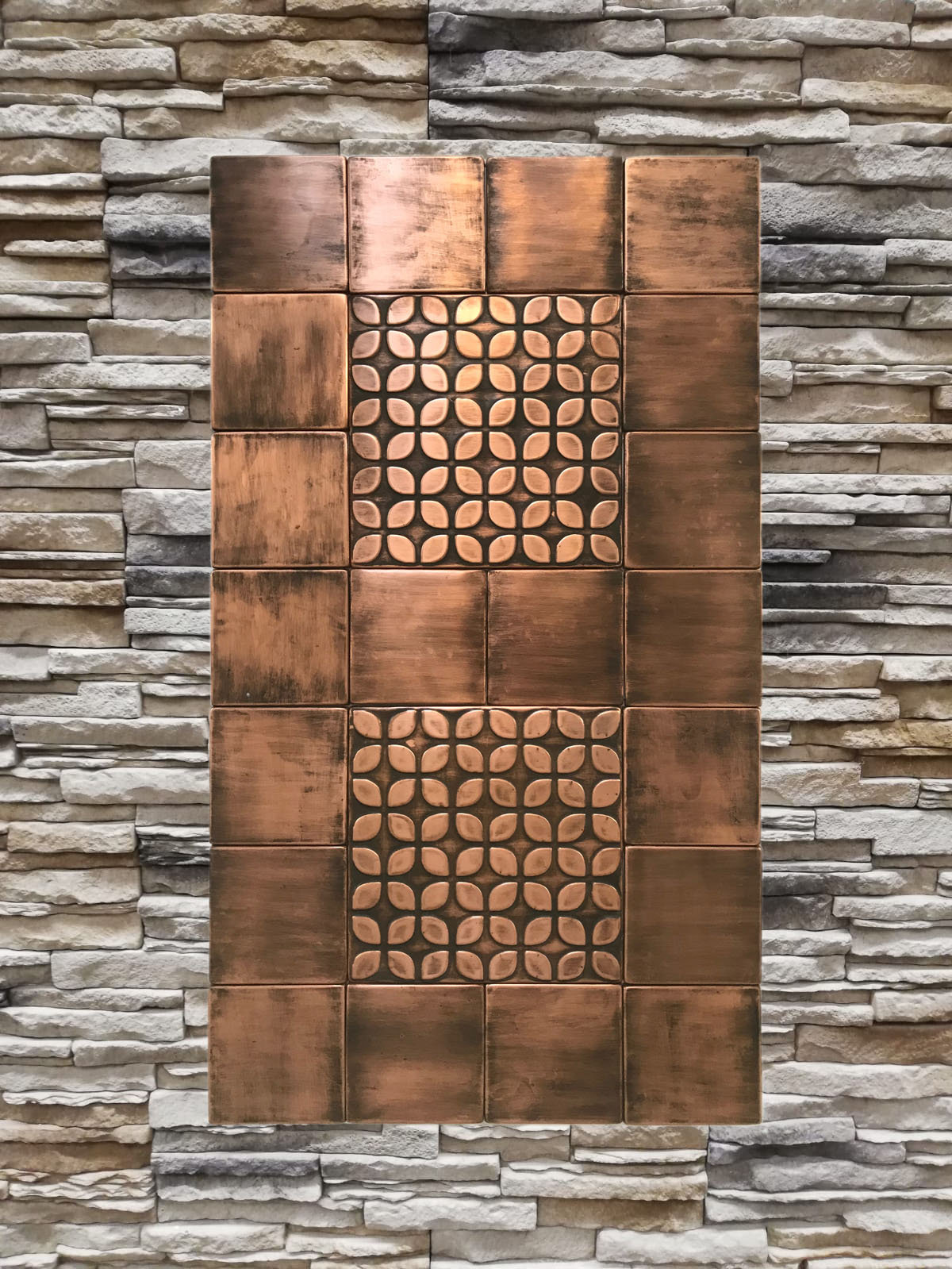 Large Kitchen Backsplash Set of 22 Handmade COPPER tiles, Total size: 15.75'' x 27.56'' (40 cm X 70 cm)