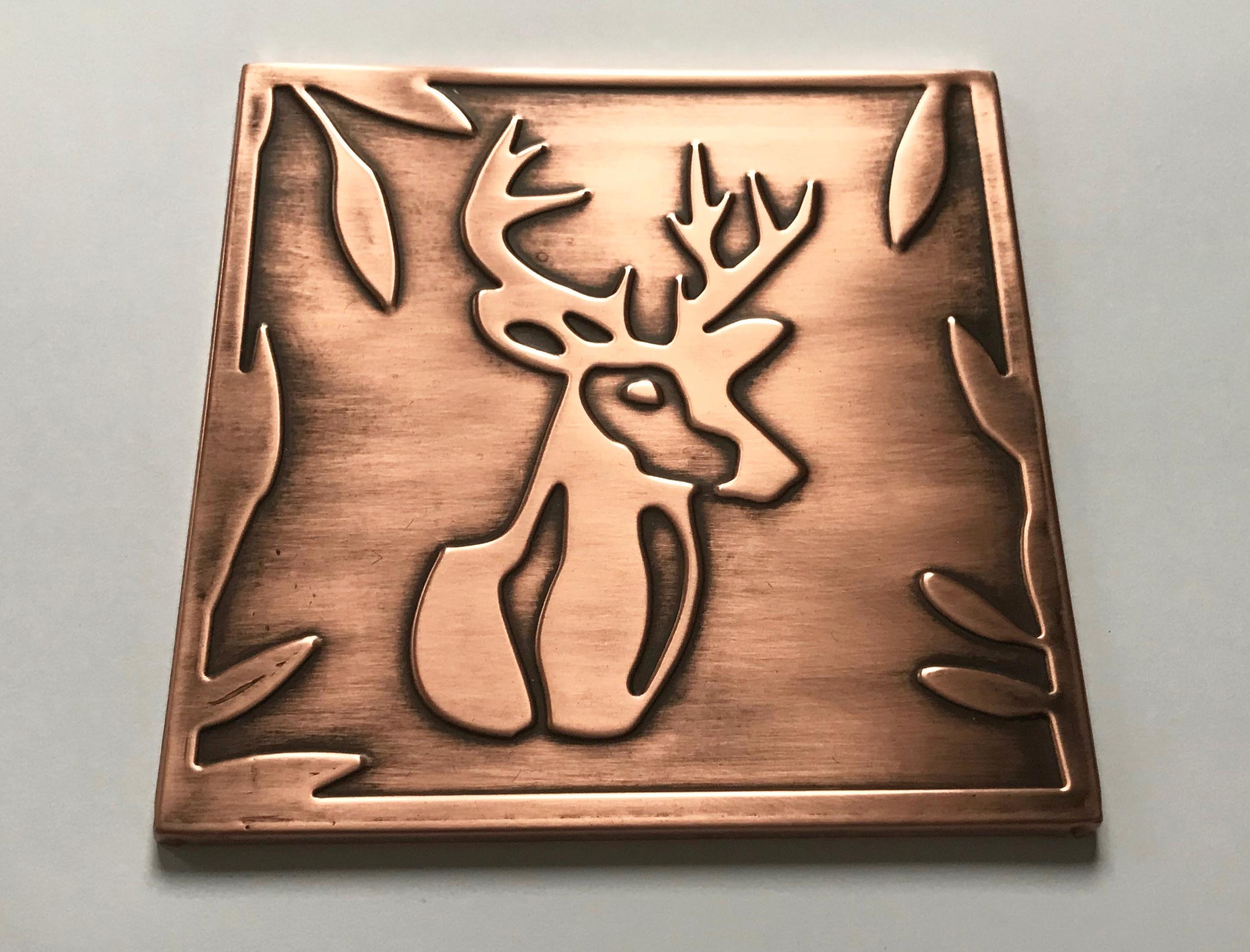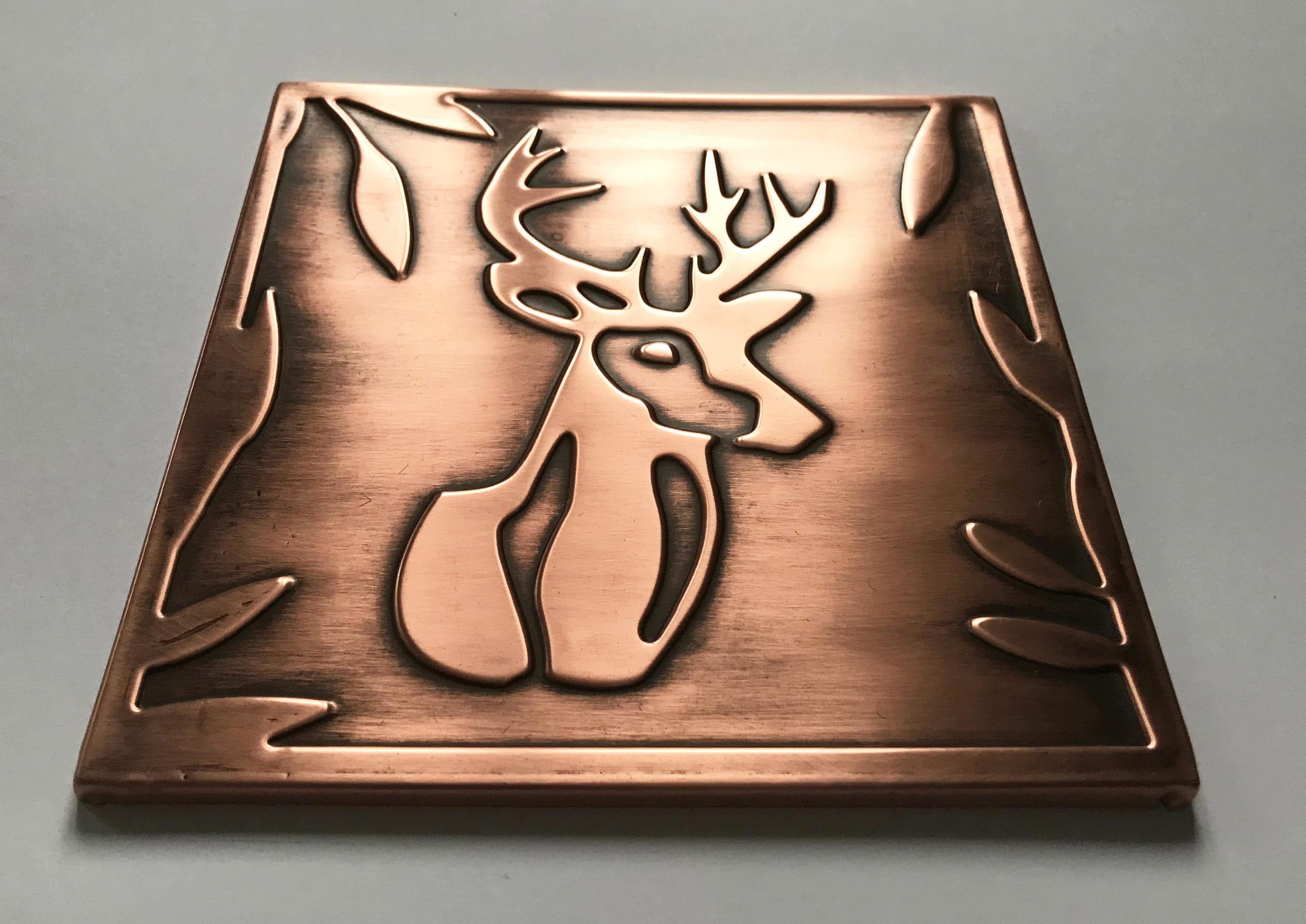 Deer 100% Copper Tile, Handmade metal wall art, wall tile, kitchen tile, rustic, art deco, accent kitchen tile, backsplash