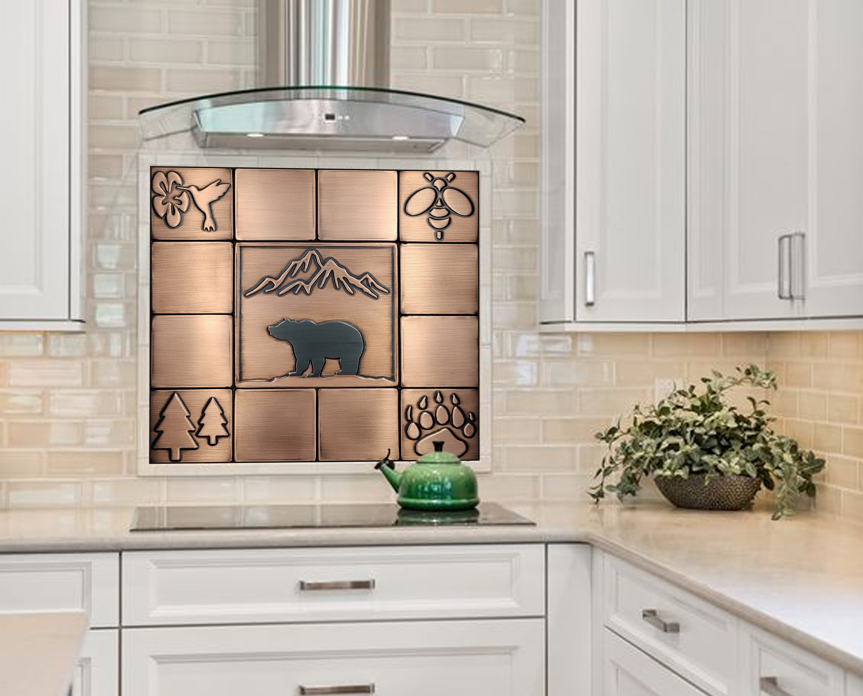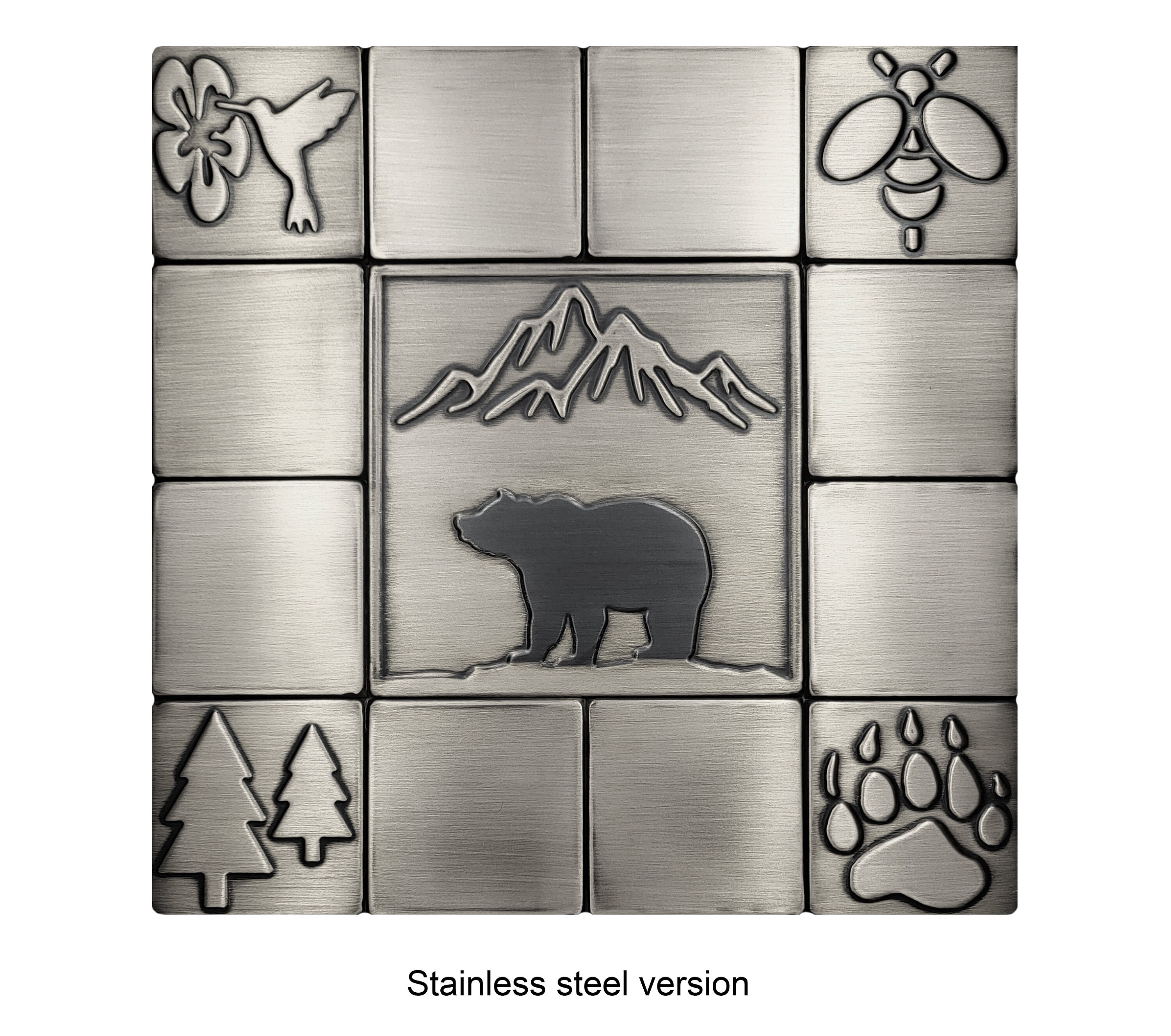 Bear and mountains - SET of 13 HANDMADE tiles - Copper, Brass or Stainless Steel
