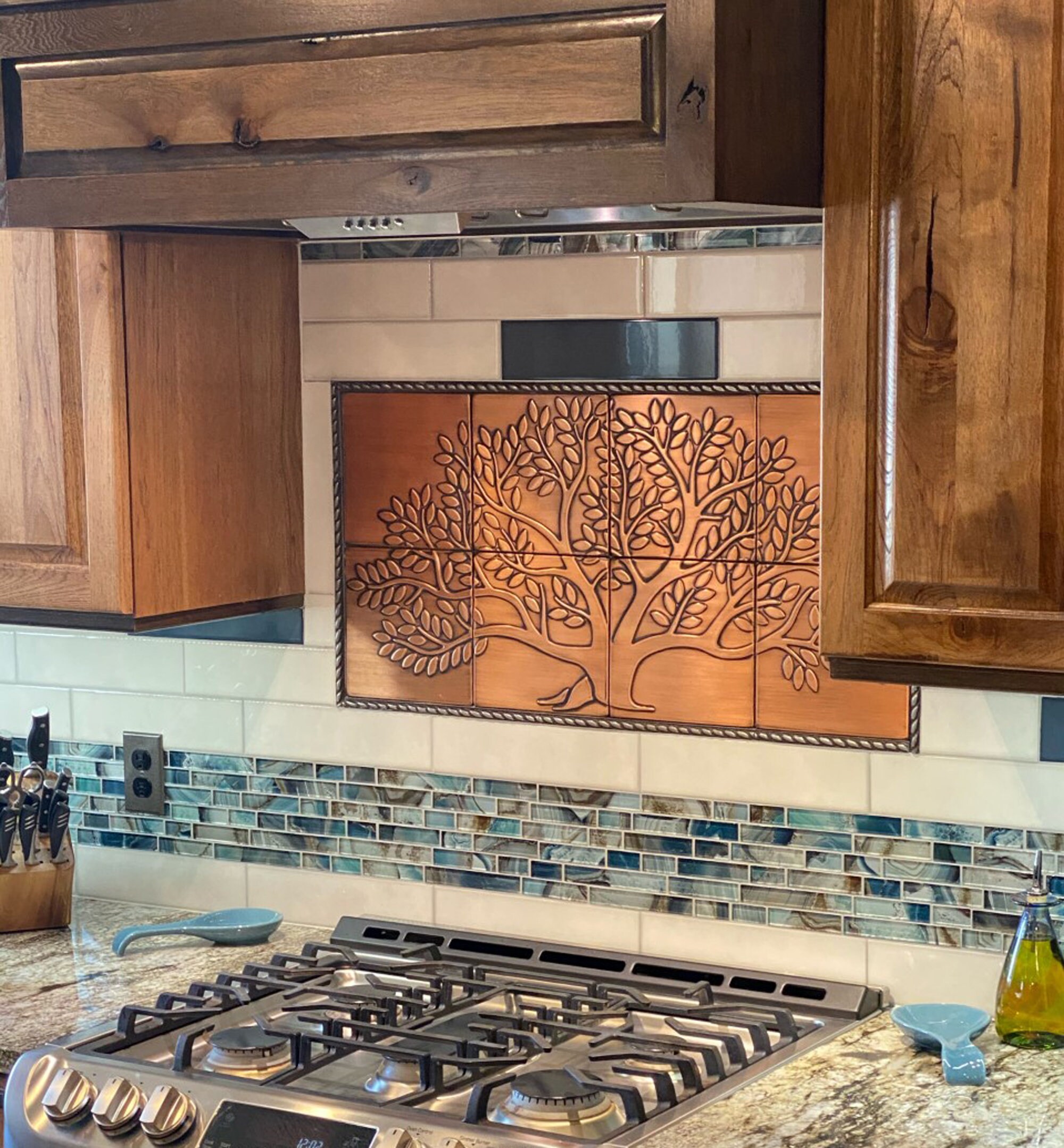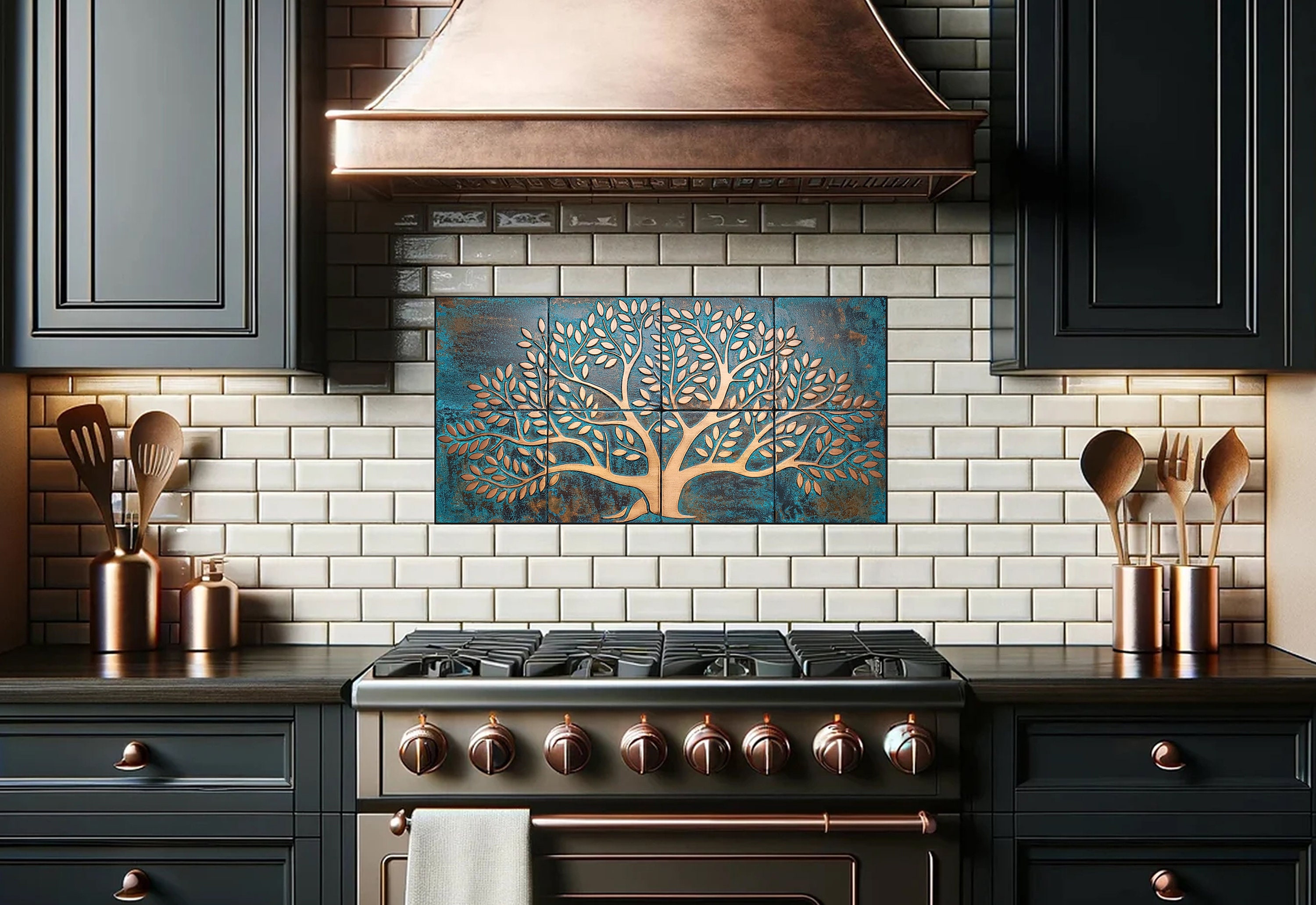 Eight square tiles, each an artwork in itself, unite to narrate a story as old as life itself—the Tree of Life. The sprawling branches and robust trunk unfold across the tiles, embracing spaces with the tranquility and grace that only nature-inspired art can impart. Handcrafted in your choice of pure copper, gleaming stainless steel, or timeless brass, this masterwork is more than mere decoration. It's a philosophical reflection, a cultural icon, a touch of elegance that transcends mere aesthetics.