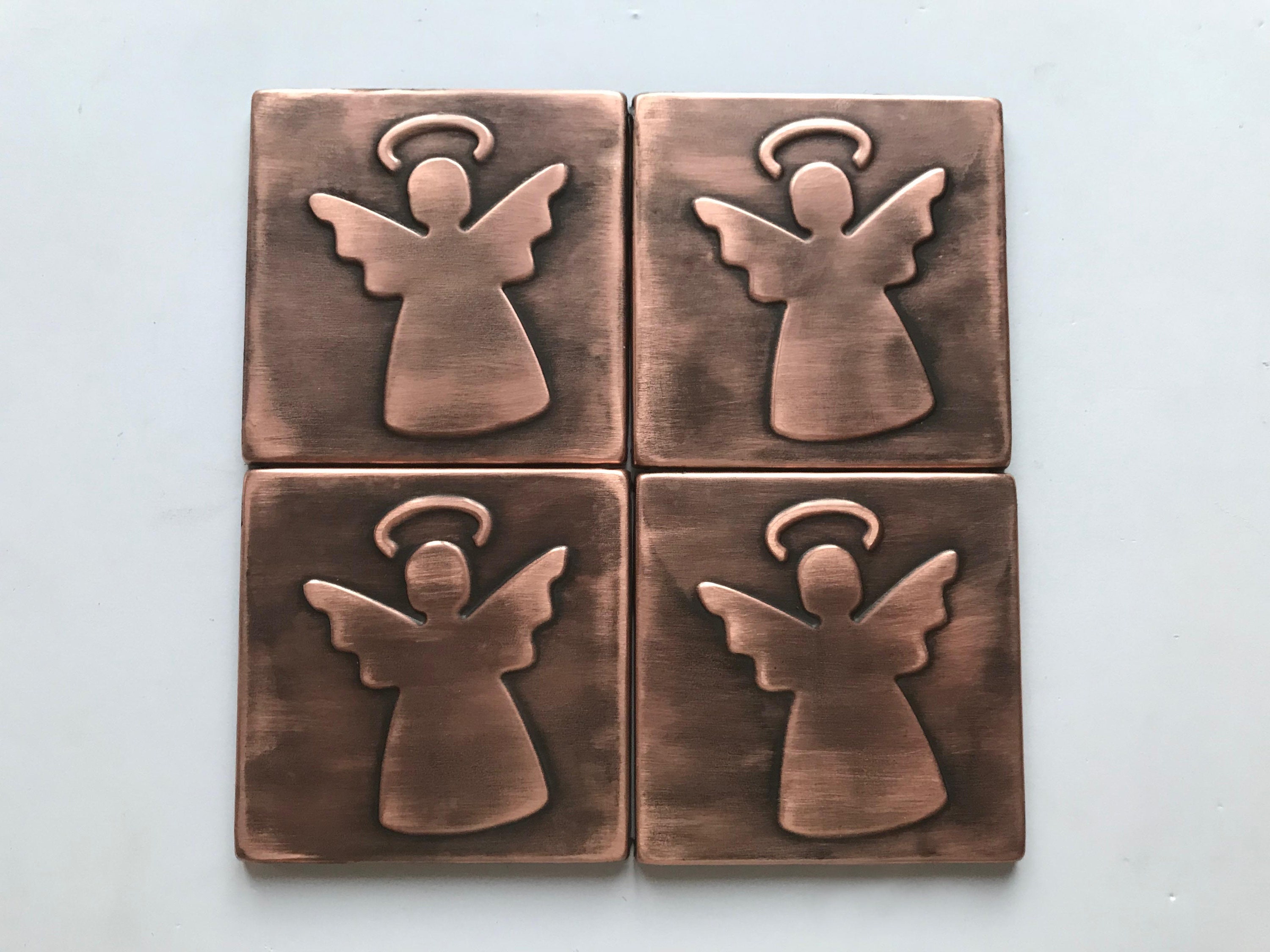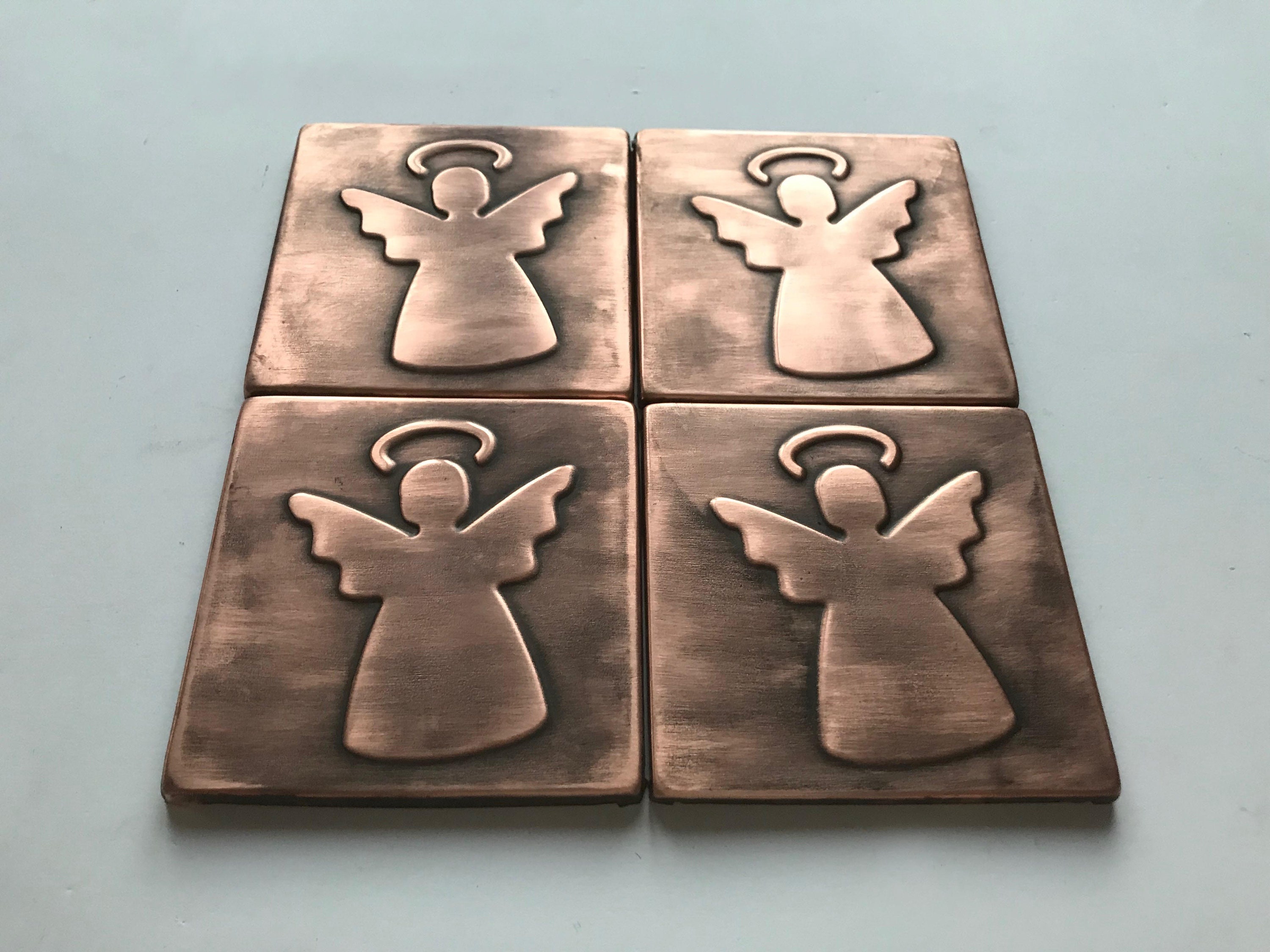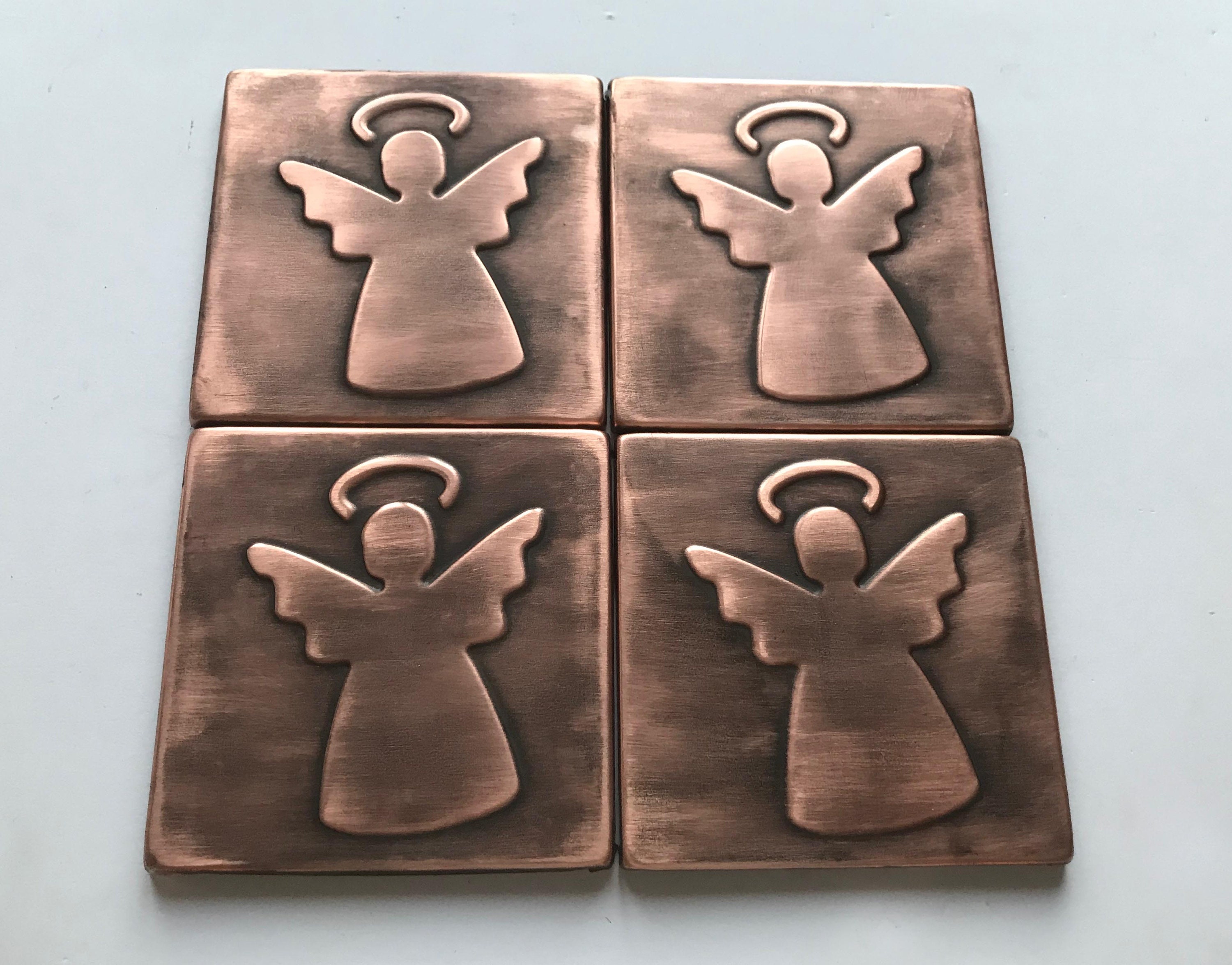 Set of 4 Angels Handmade Copper Tiles