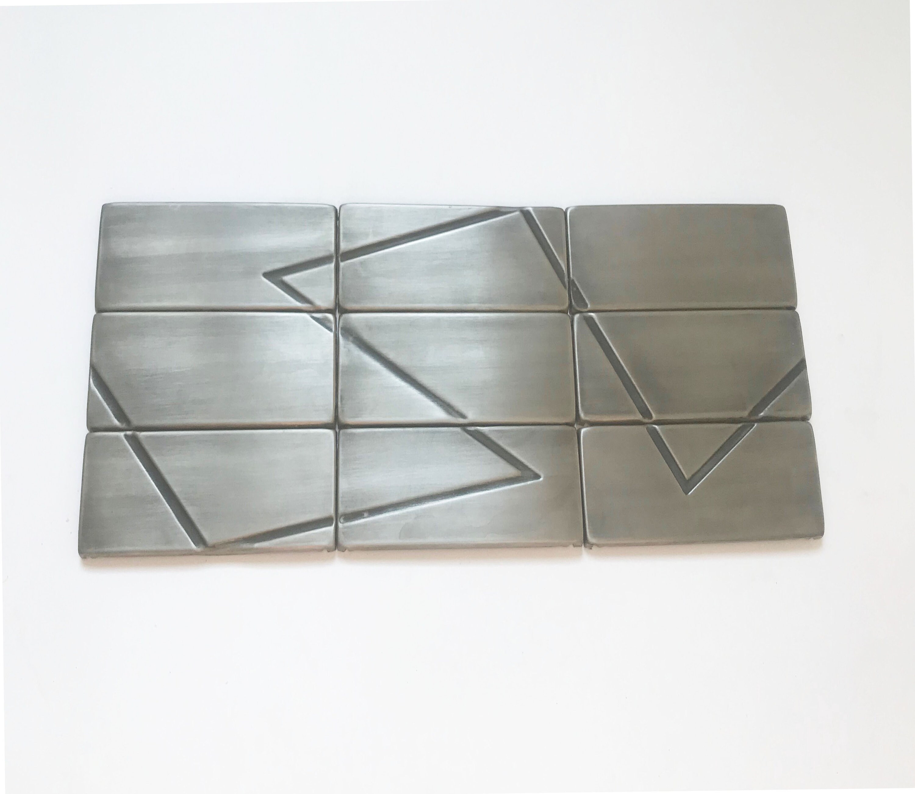 Modern pattern- Set of 9 Handmade stainless steel tiles. Perfect for kitchen backsplash, livingroom, fireplace