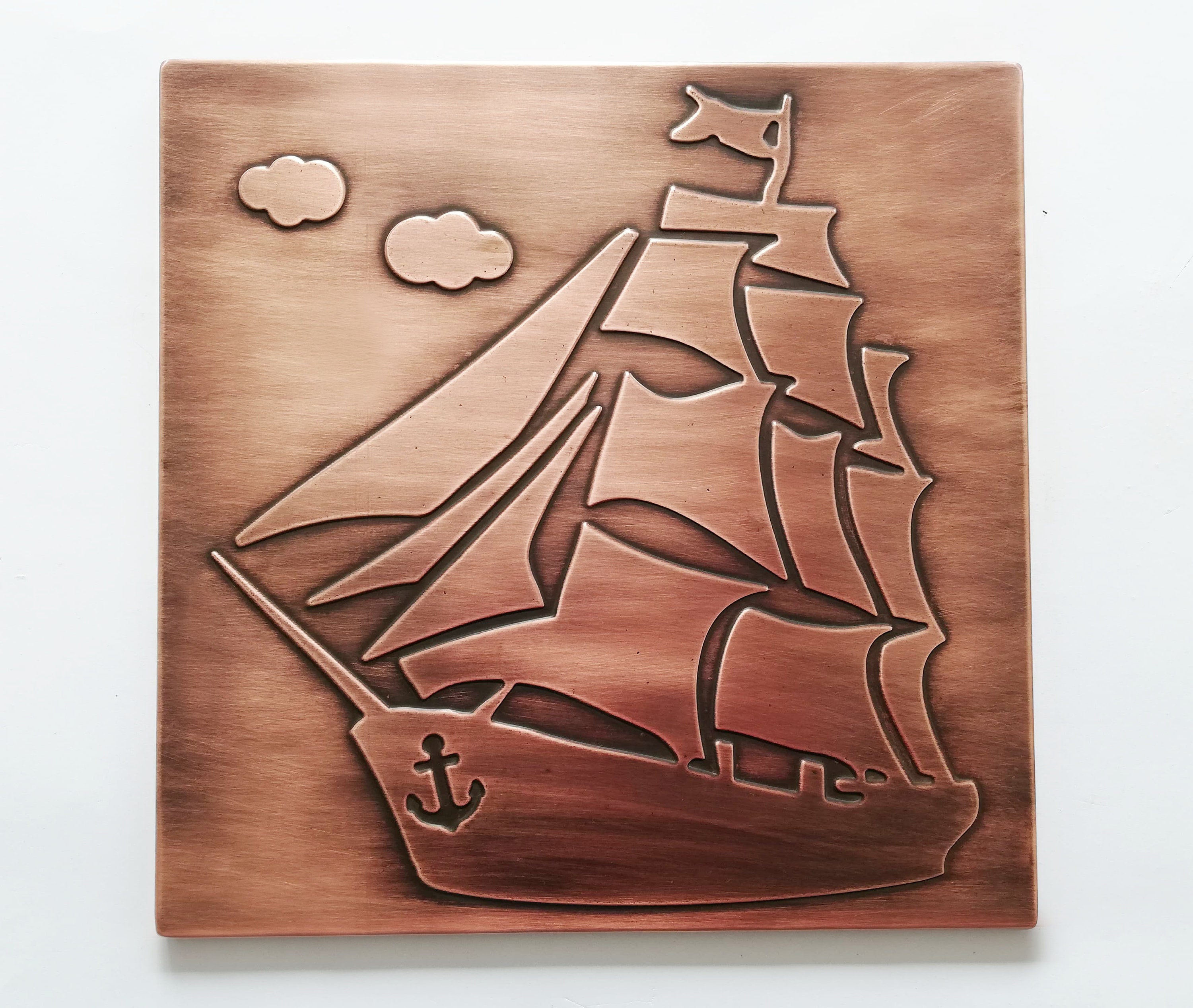 Sailing ship 100% Copper Tile, Handmade metal wall art, wall tile, kitchen tile, rustic, art deco, accent kitchen tile, backsplash