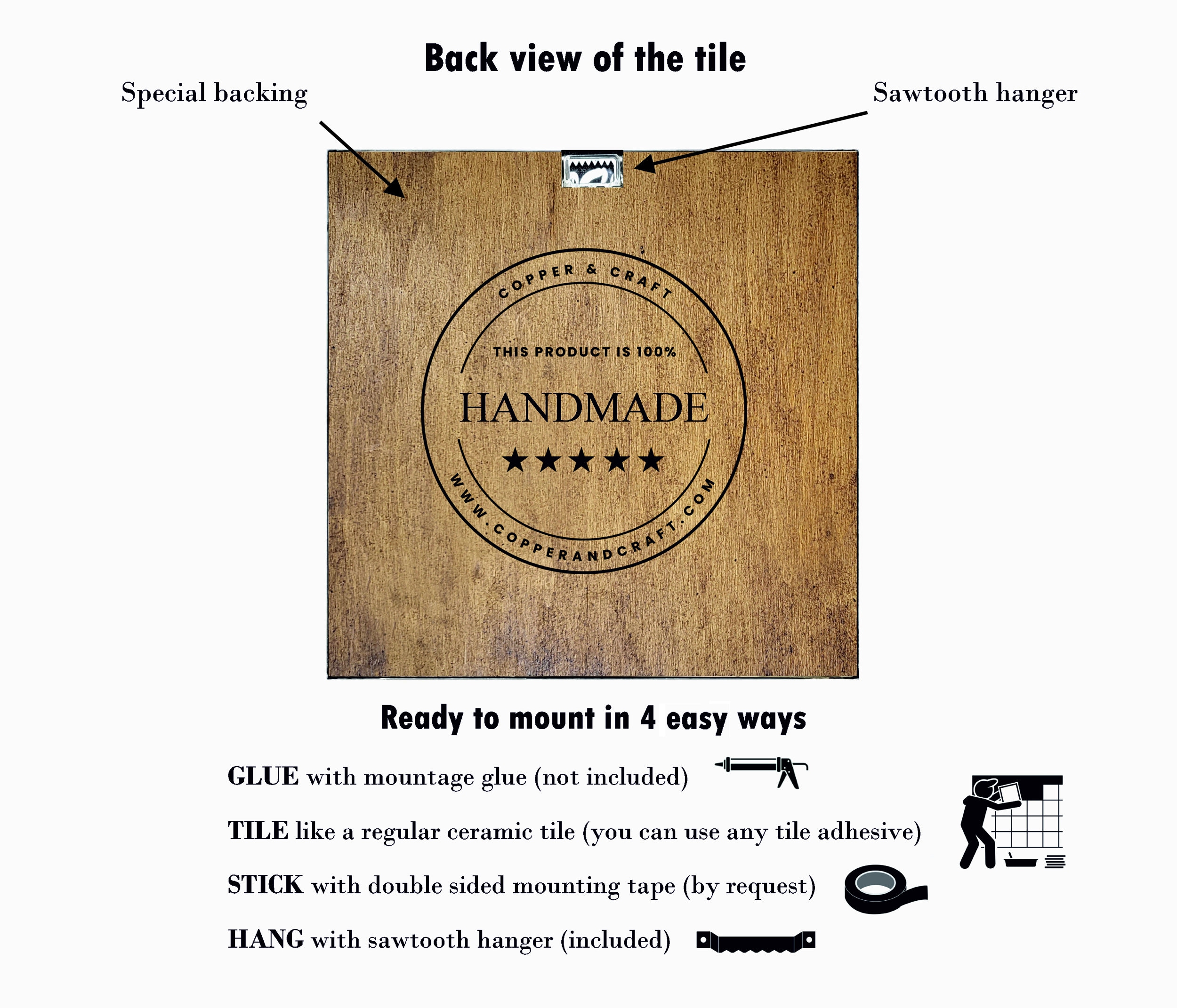 All my tiles are made of 100% real copper. It is not painted plastic or other copper-colored material that you can see from other manufacturers. I also offer tiles made of 100% brass and stainless steel.