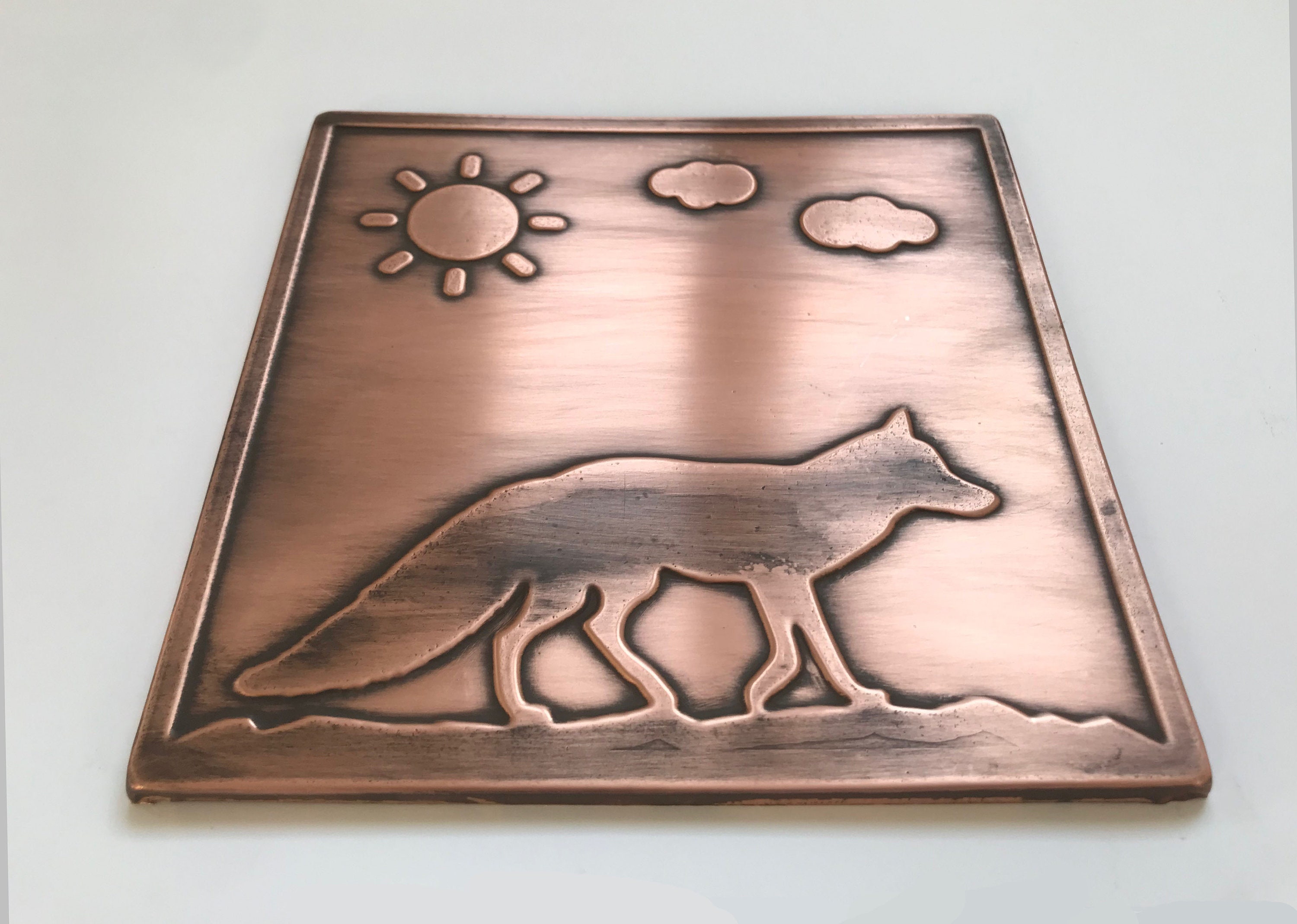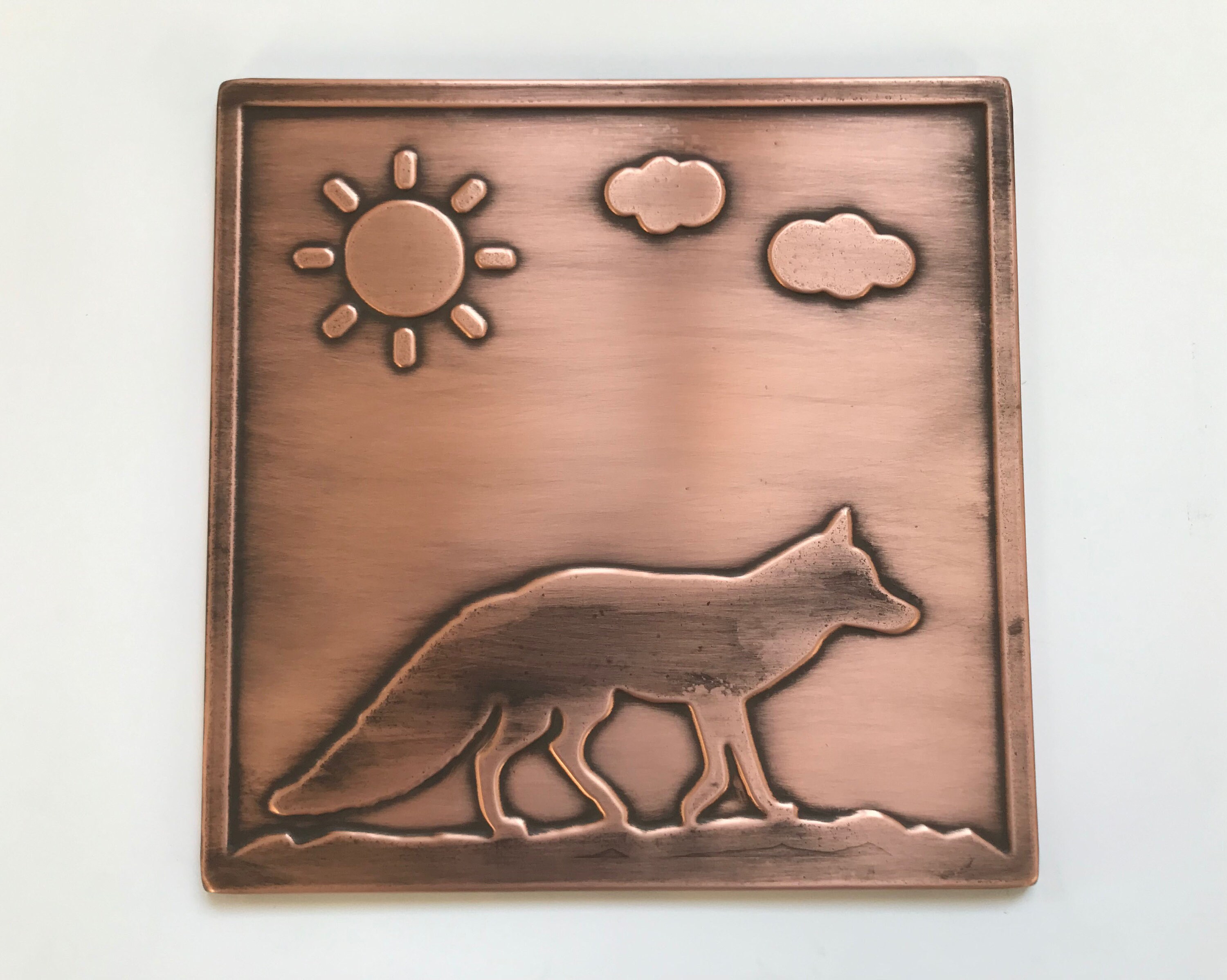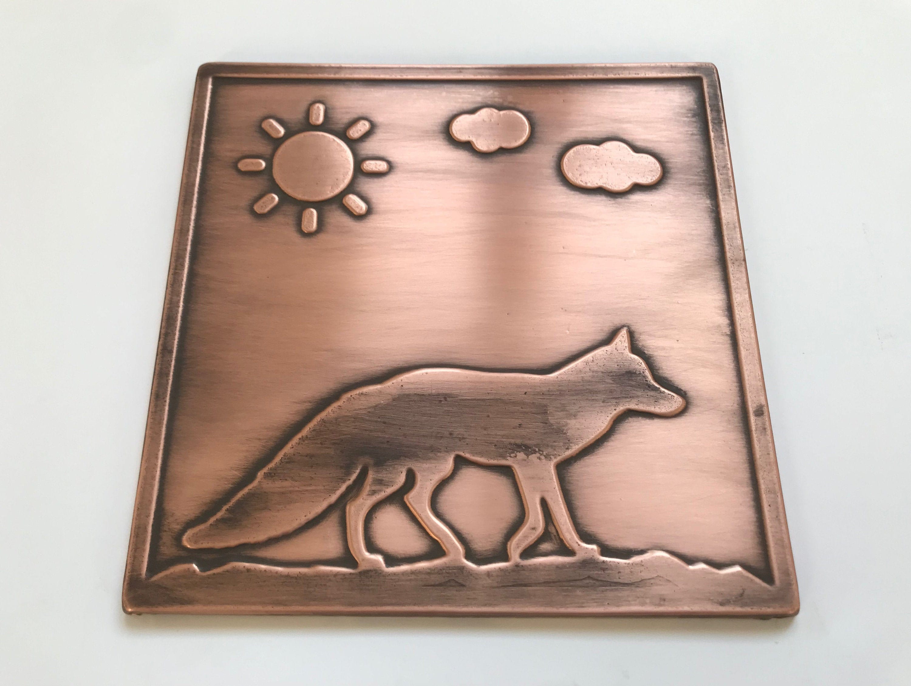 Fox and sun handmade tile, metal wall art, wall tile, kitchen tile, rustic, art deco, accent kitchen tile, backsplash