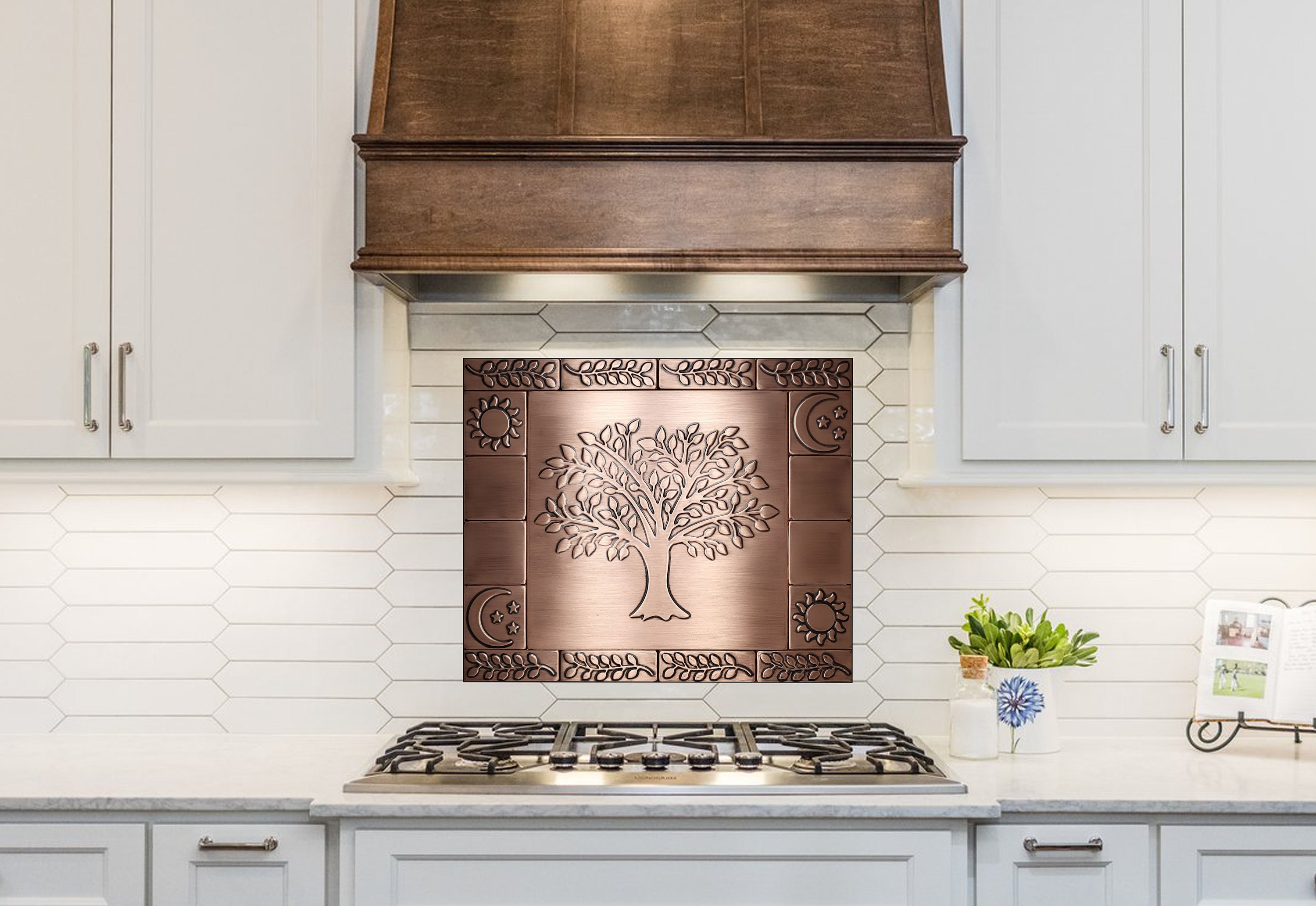 Beautiful Tree of life, Set of 17 Handmade copper tiles, kitchen rustic backsplash tiles