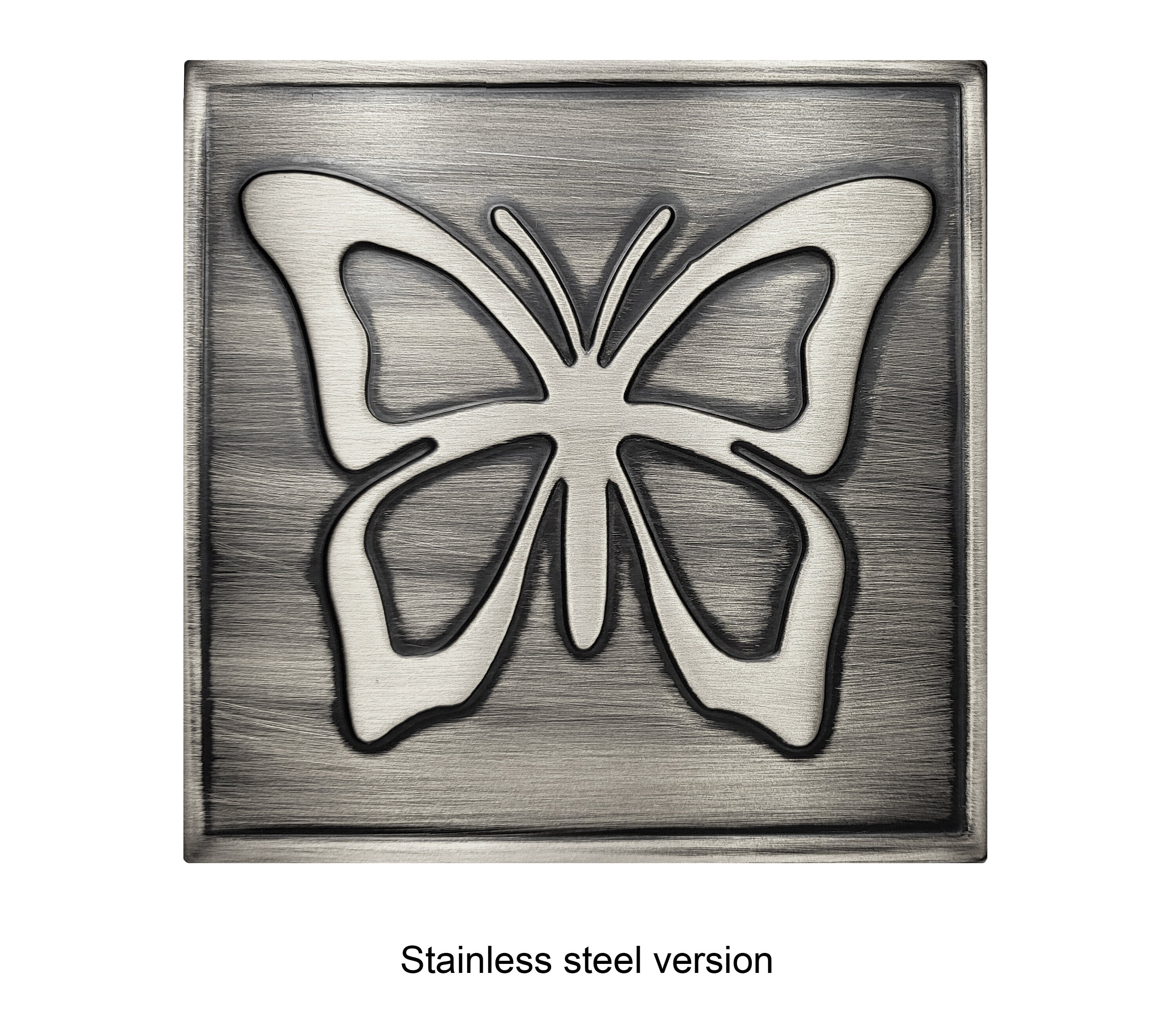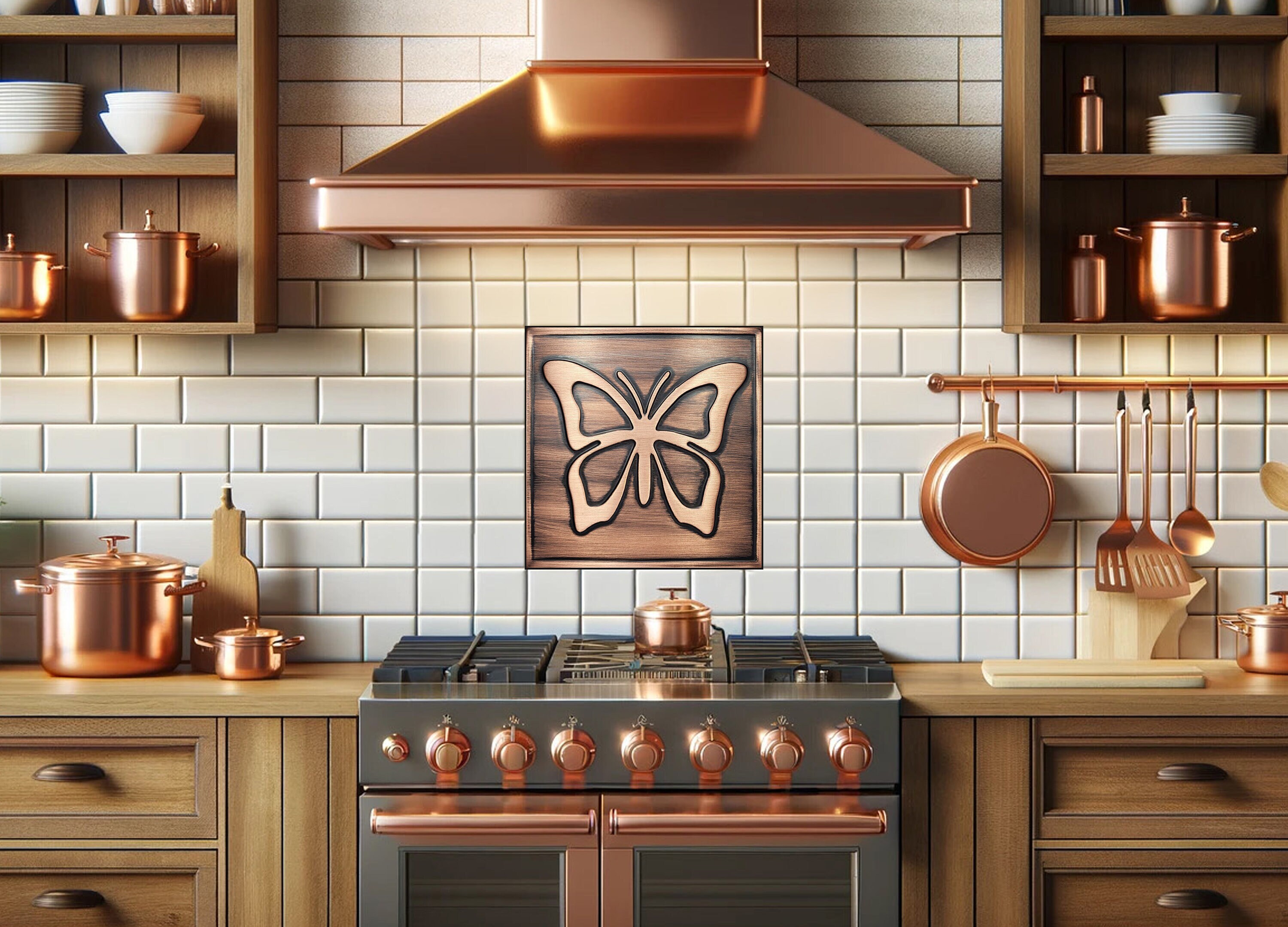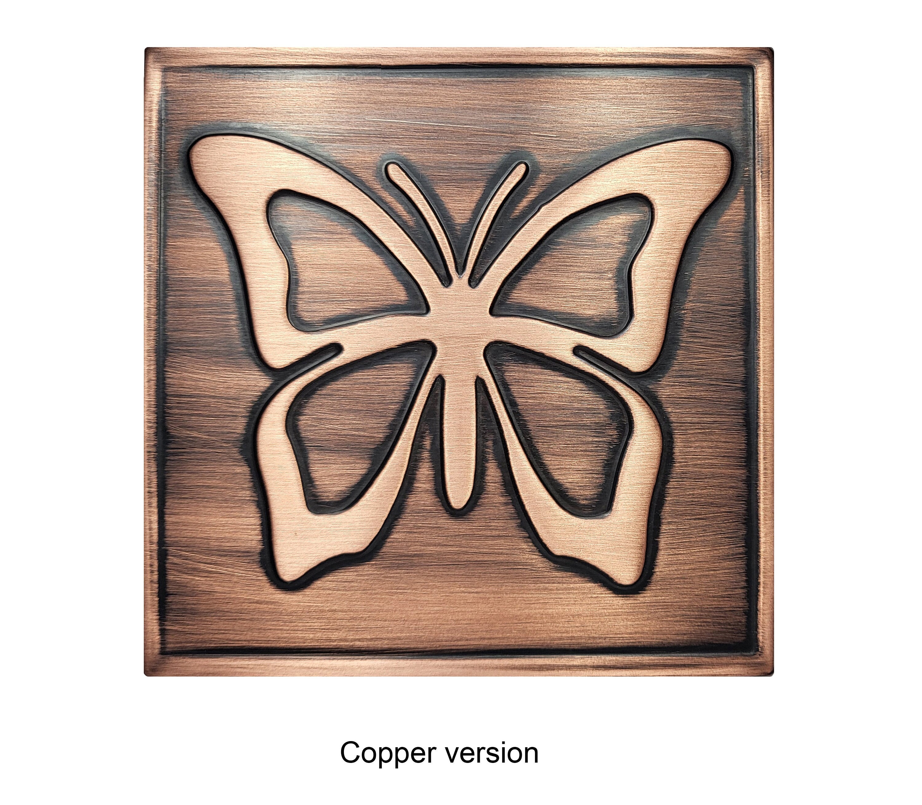 This elegant butterfly tile brings a gentle touch of nature to your home. Handcrafted from copper, brass, or stainless steel, it's perfect for anyone who loves detailed metalwork and symbolic design. The butterfly – a timeless symbol of transformation, freedom, and renewal – will bring harmony to any kitchen, bathroom, or living space.