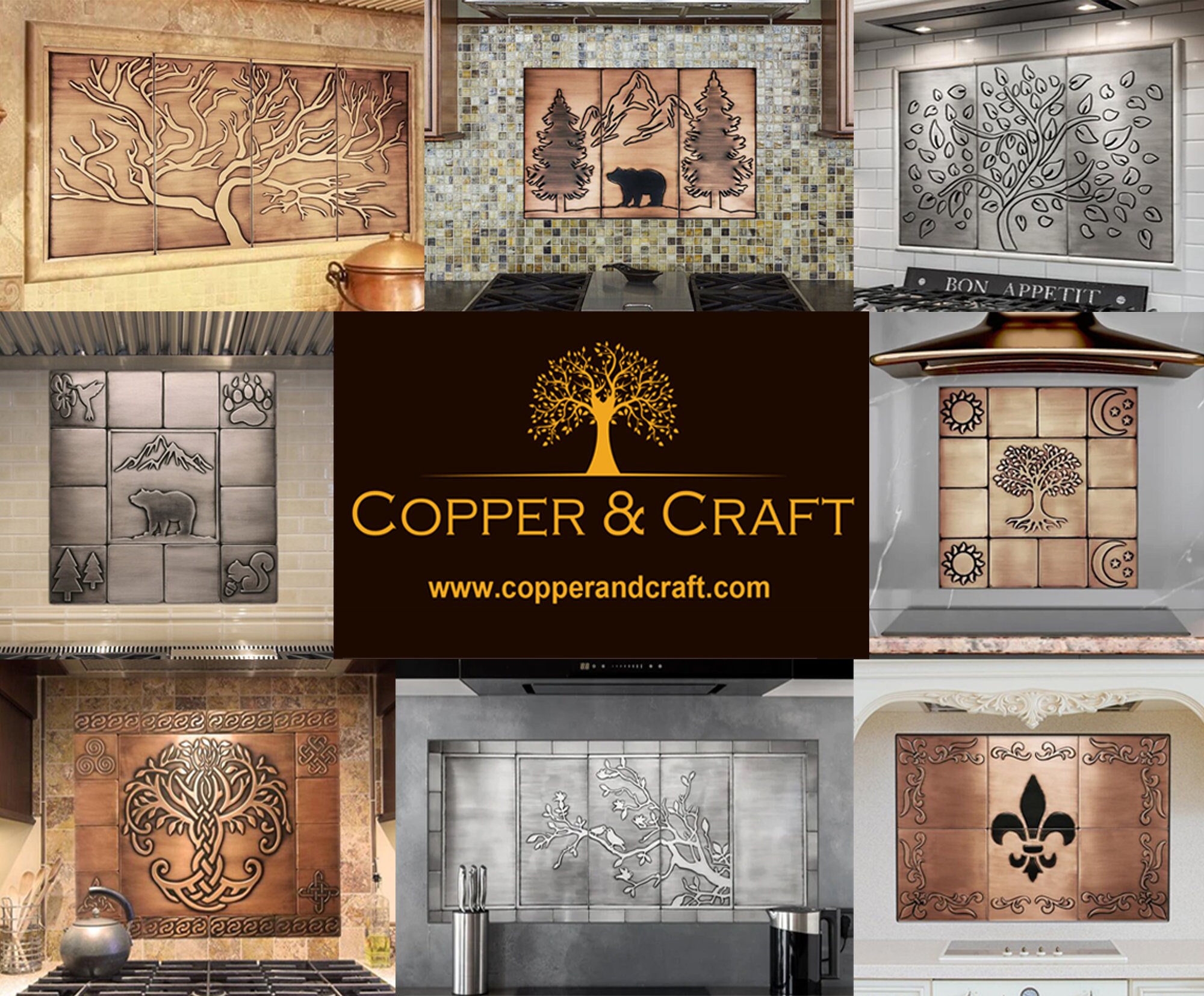 Whether used as a backsplash in a kitchen, a focal point in a living room, or a statement piece in an entryway, this "Wilderness Whispers" Copper Tile Set is versatile and will become a talking point in your home. The natural motifs are perfect for those who wish to bring a touch of the outdoors inside, creating a serene and inviting atmosphere.
