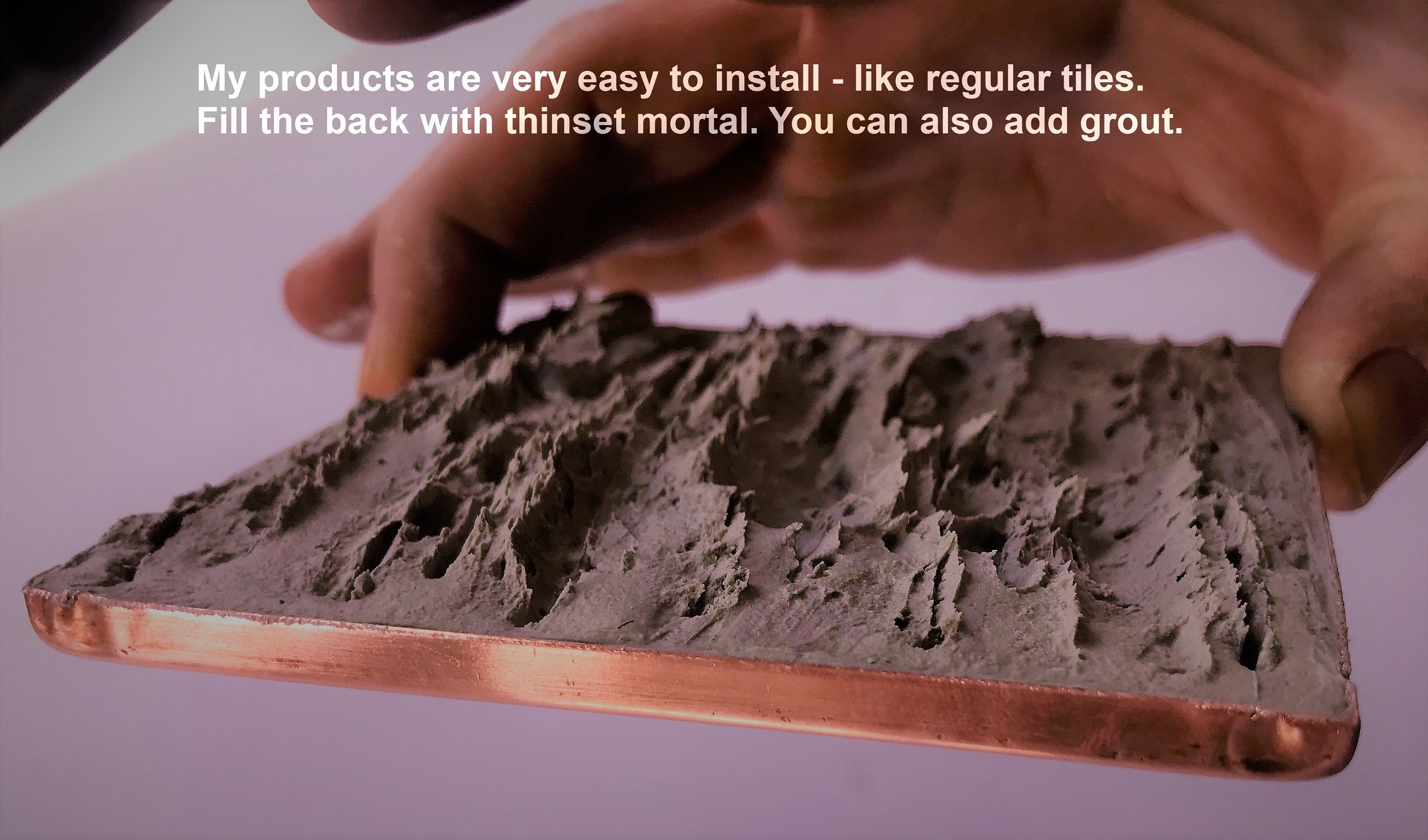 All my tiles are made of 100% real copper. It is not painted plastic or other copper-colored material that you can see from other manufacturers. I also offer tiles made of 100% brass and stainless steel.