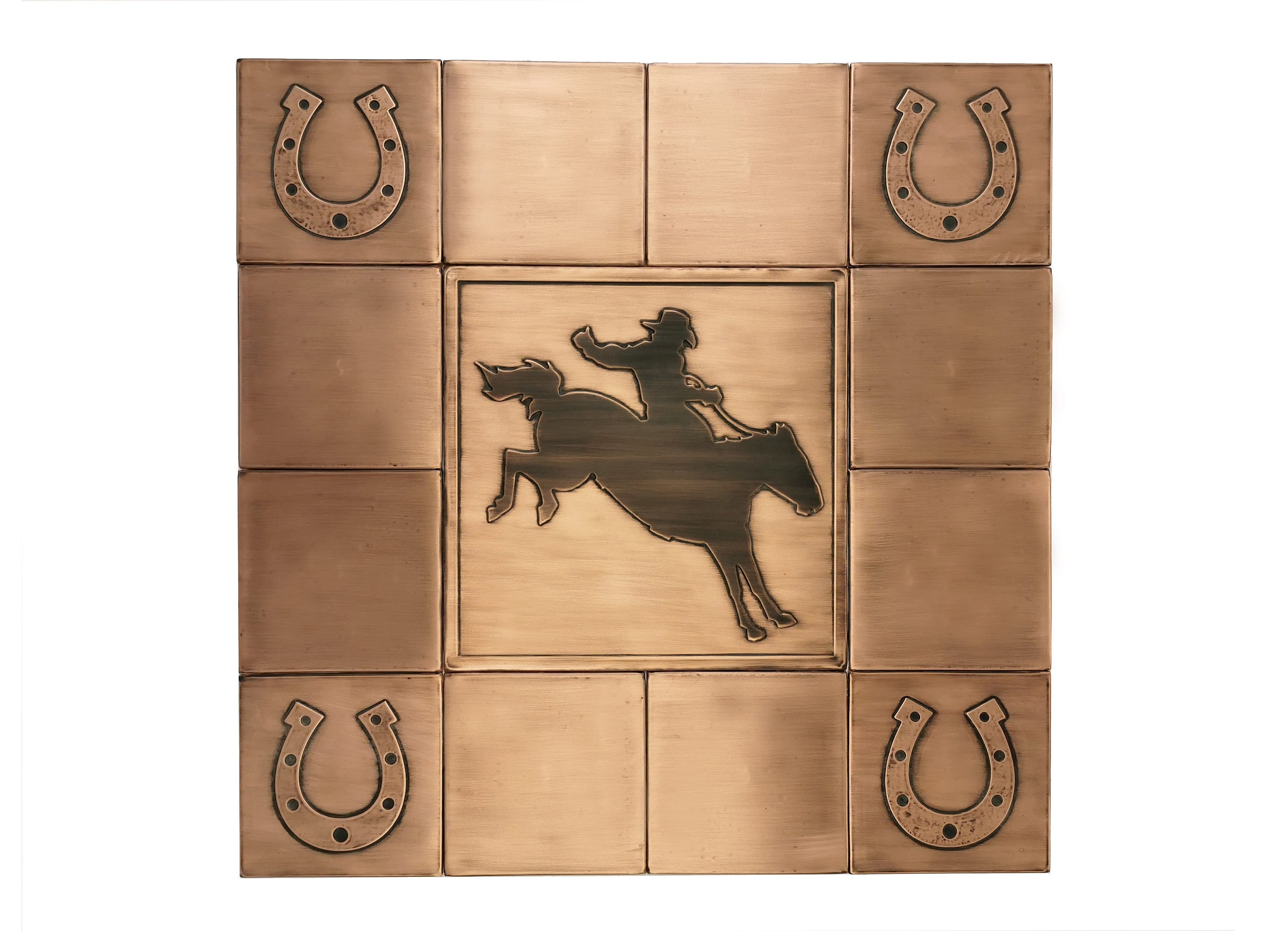 Horse, horseshoe, cowboy - SET of 13 HANDMADE tiles - Copper, Brass or Stainless Steel