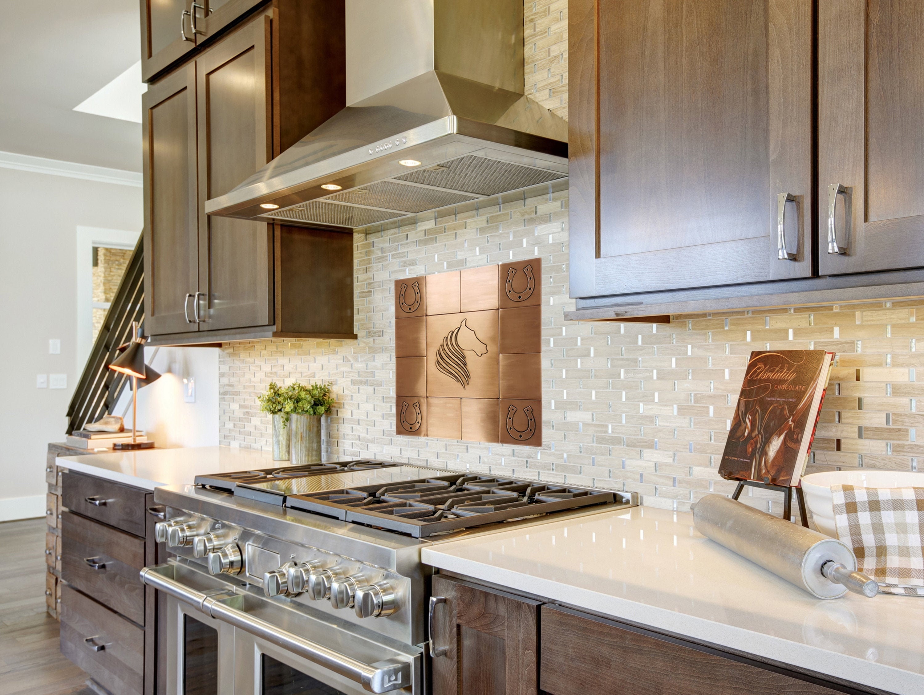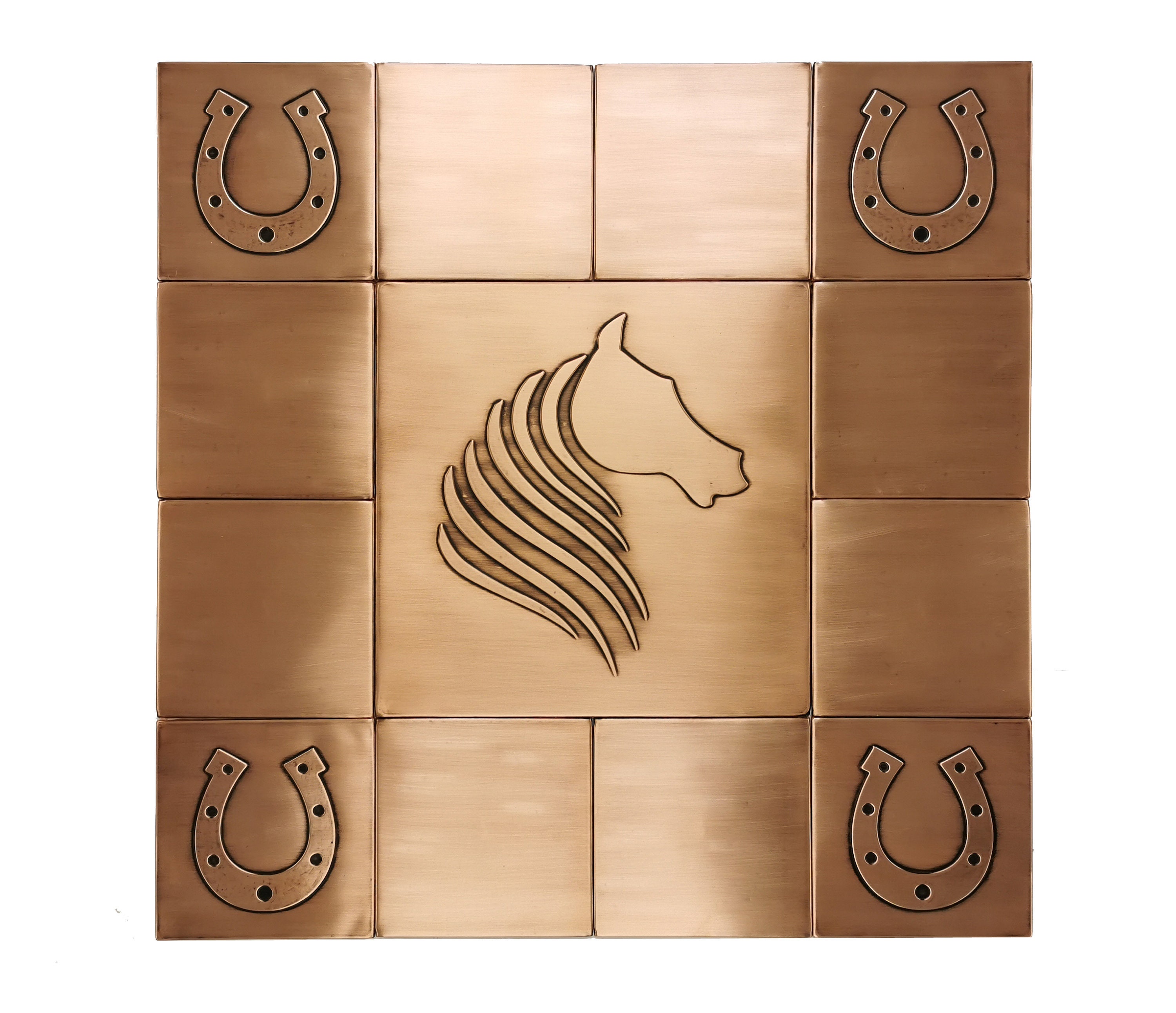Horse head, horseshoe - SET of 13 HANDMADE tiles - Copper, Brass or Stainless Steel