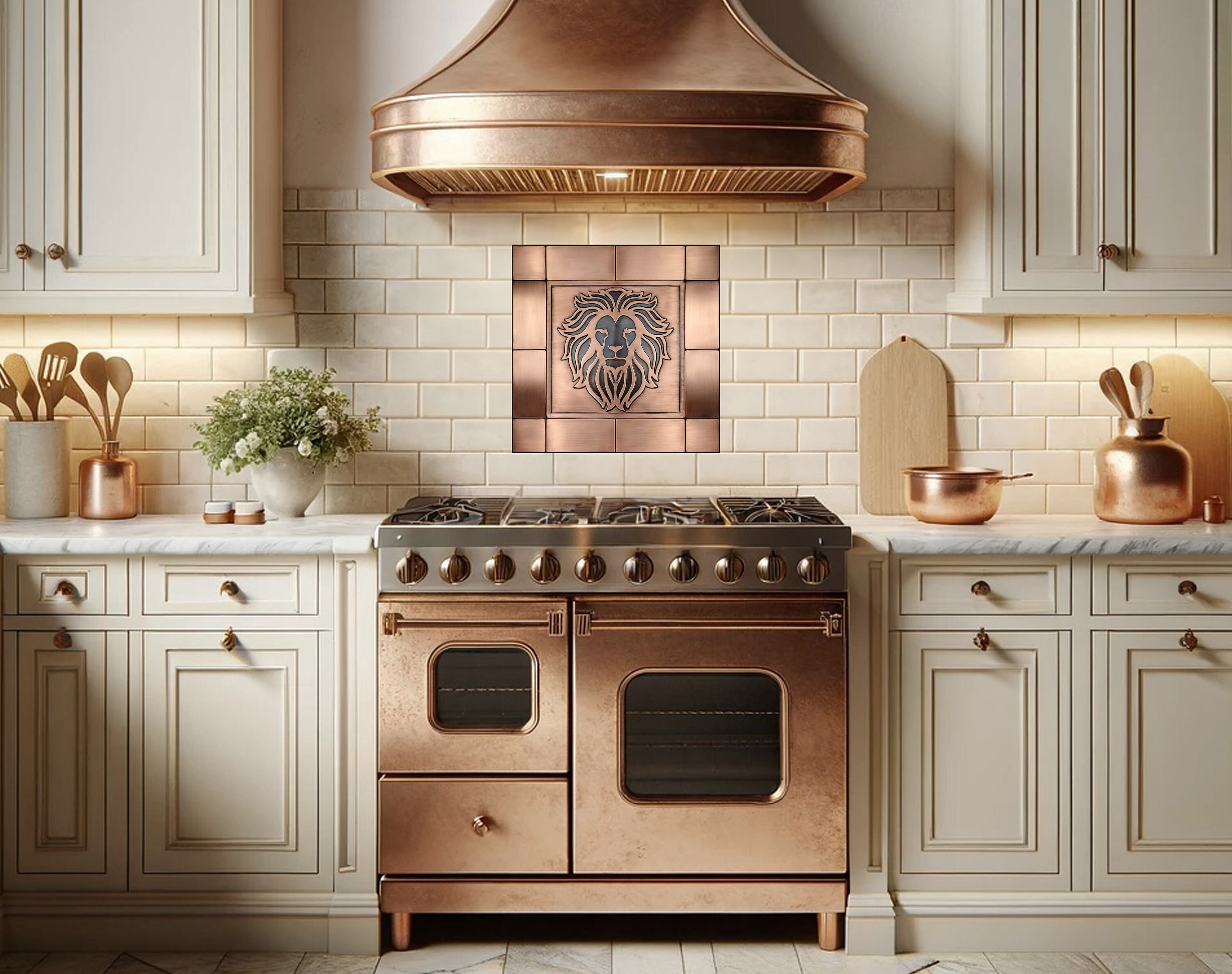 Lion - Set of 13 handmade tiles - Stainless Steel, Copper or Brass