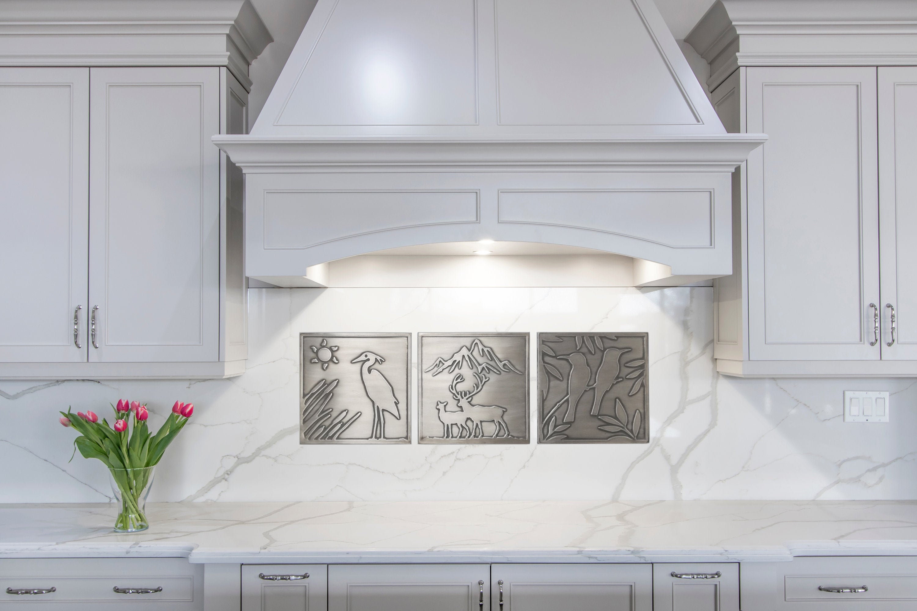 Nature - birds, heron, deer and mountains - Set of 3 Handmade tiles,- Copper, Brass or Stainless Steel