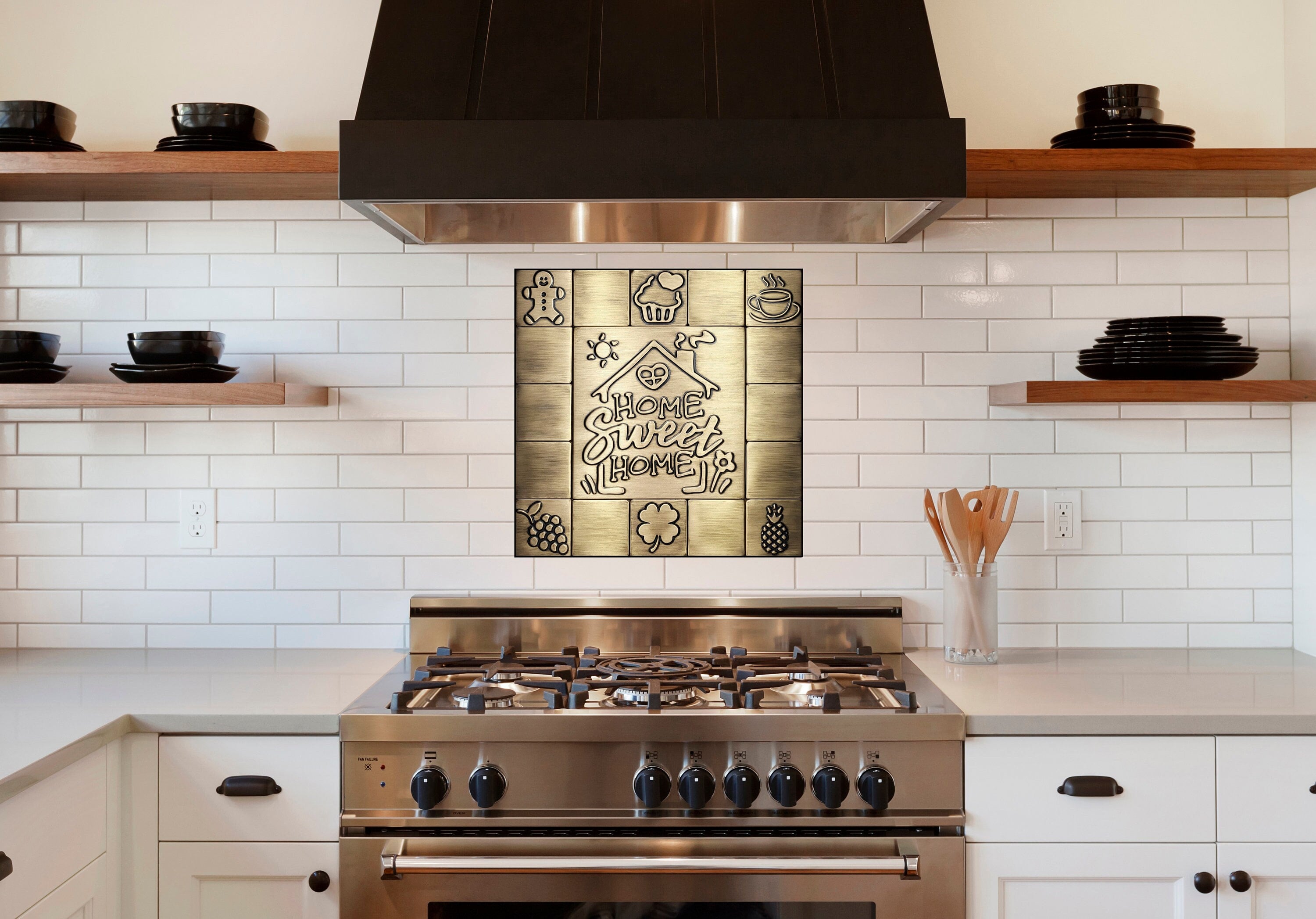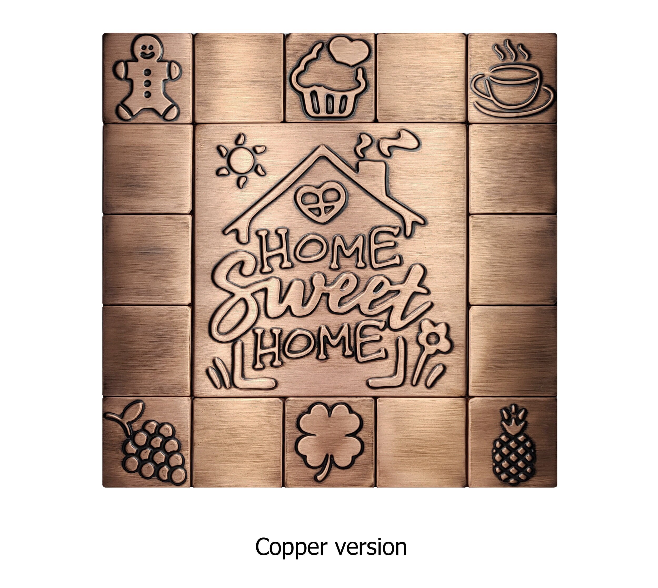 Home Sweet Home - Set of 17 Handmade tiles - 100% Copper, Stainless Steel or Brass
