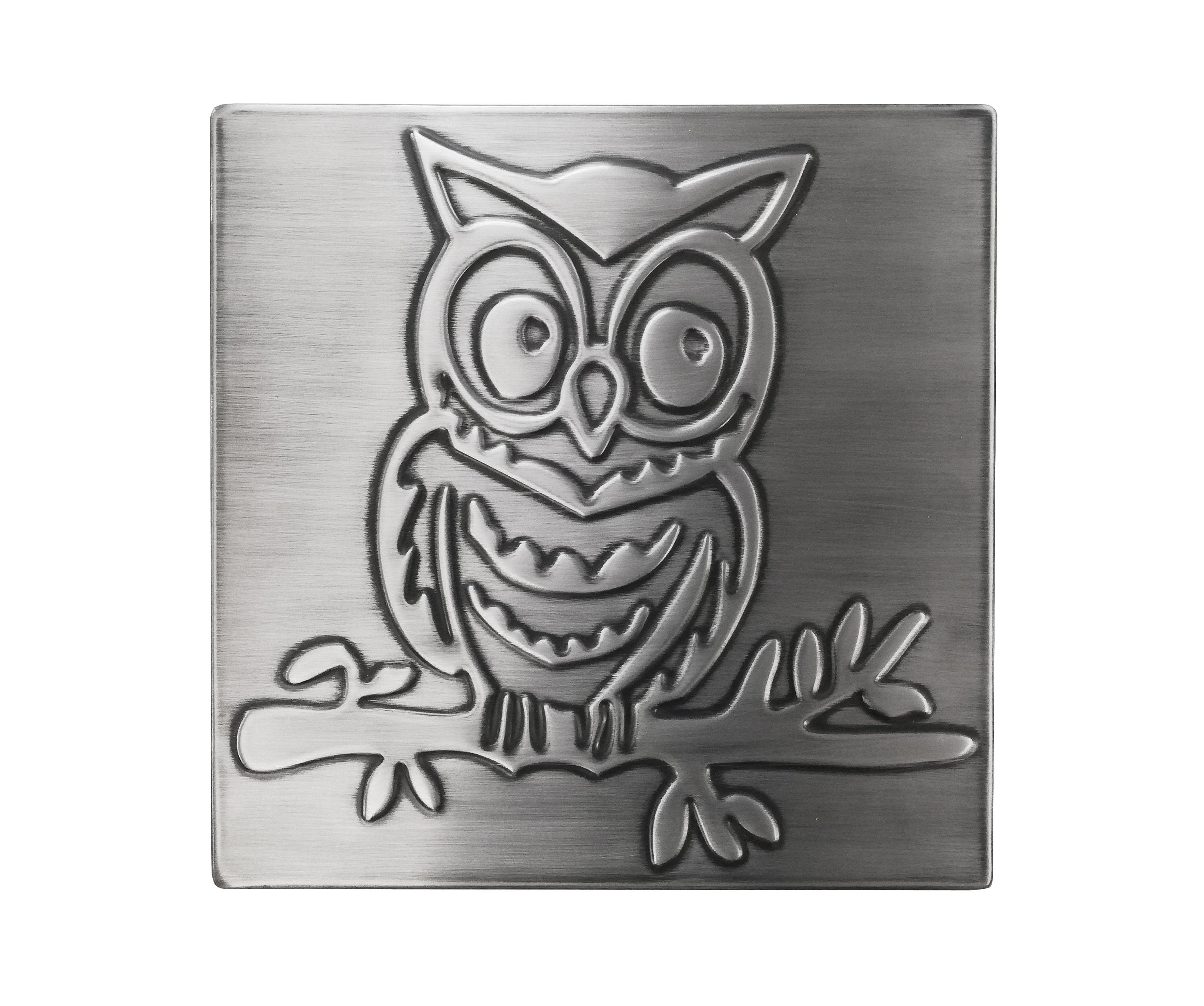 Owl on the branch. Handmade, 100% Stainless Steel Tile, Copper or Brass