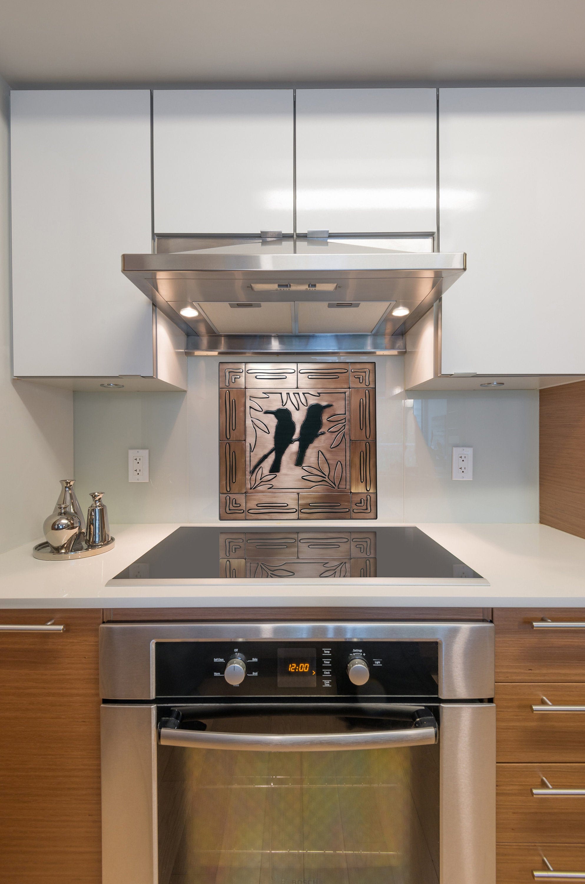 Birds on the branch. Set of 13 handmade tiles - 100% Copper, Stainless Steel or Brass