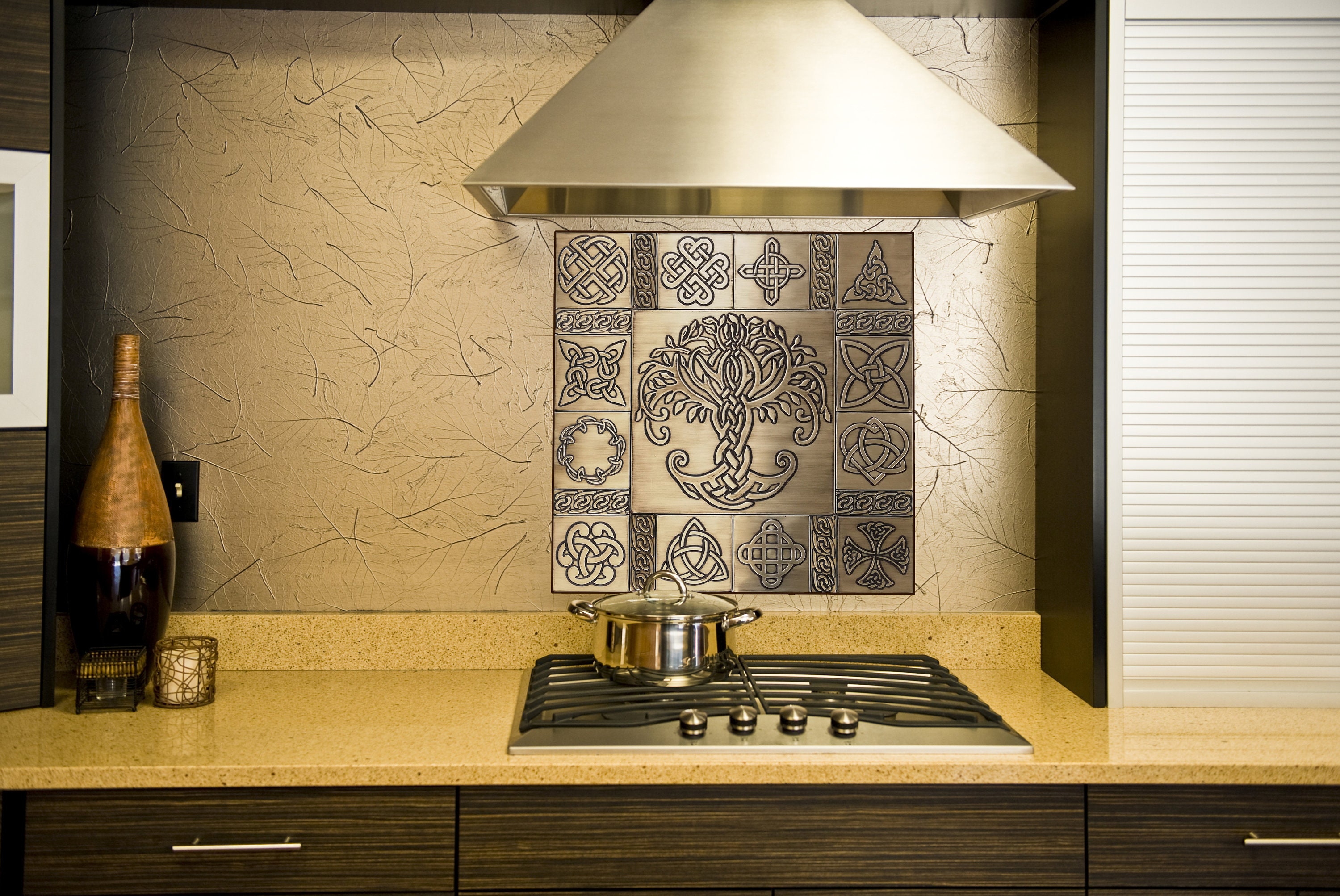 Beautiful, unique celtic backsplash, Set of 21 Handmade tiles - Brass, Stainless Steel or Copper