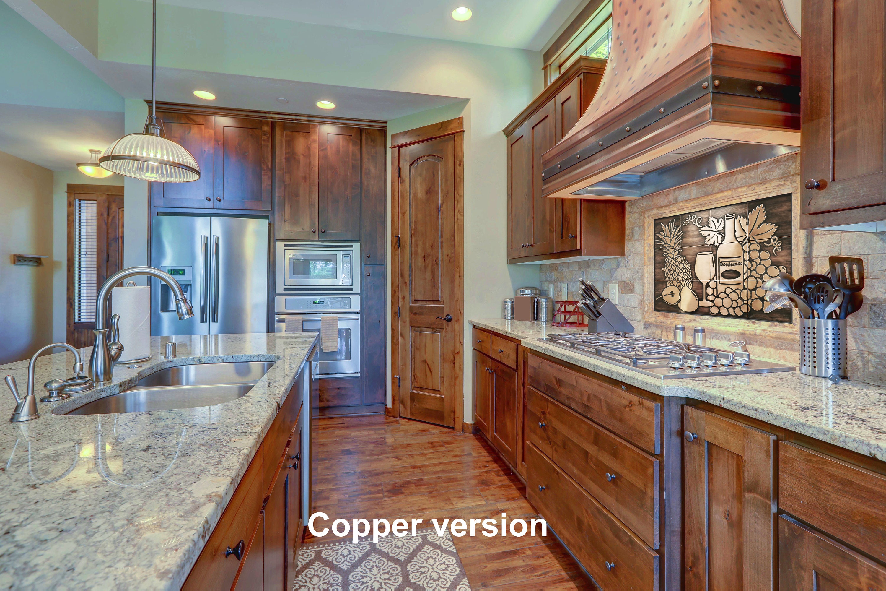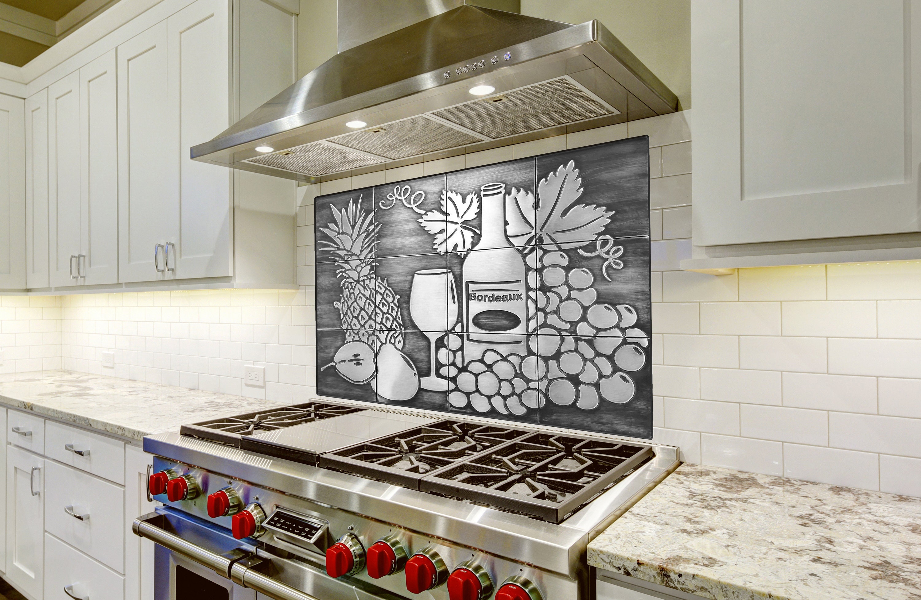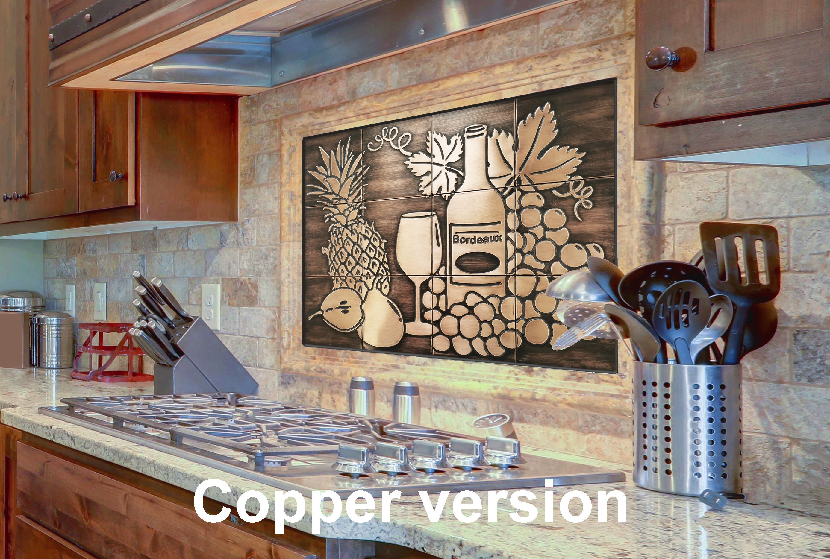 Wine and Fruit Kitchen Backsplash β Copper or Stainless Steel Tile Set β Grapes, Pineapple, Bottle β Rustic Wall Art for Food & Wine Lovers