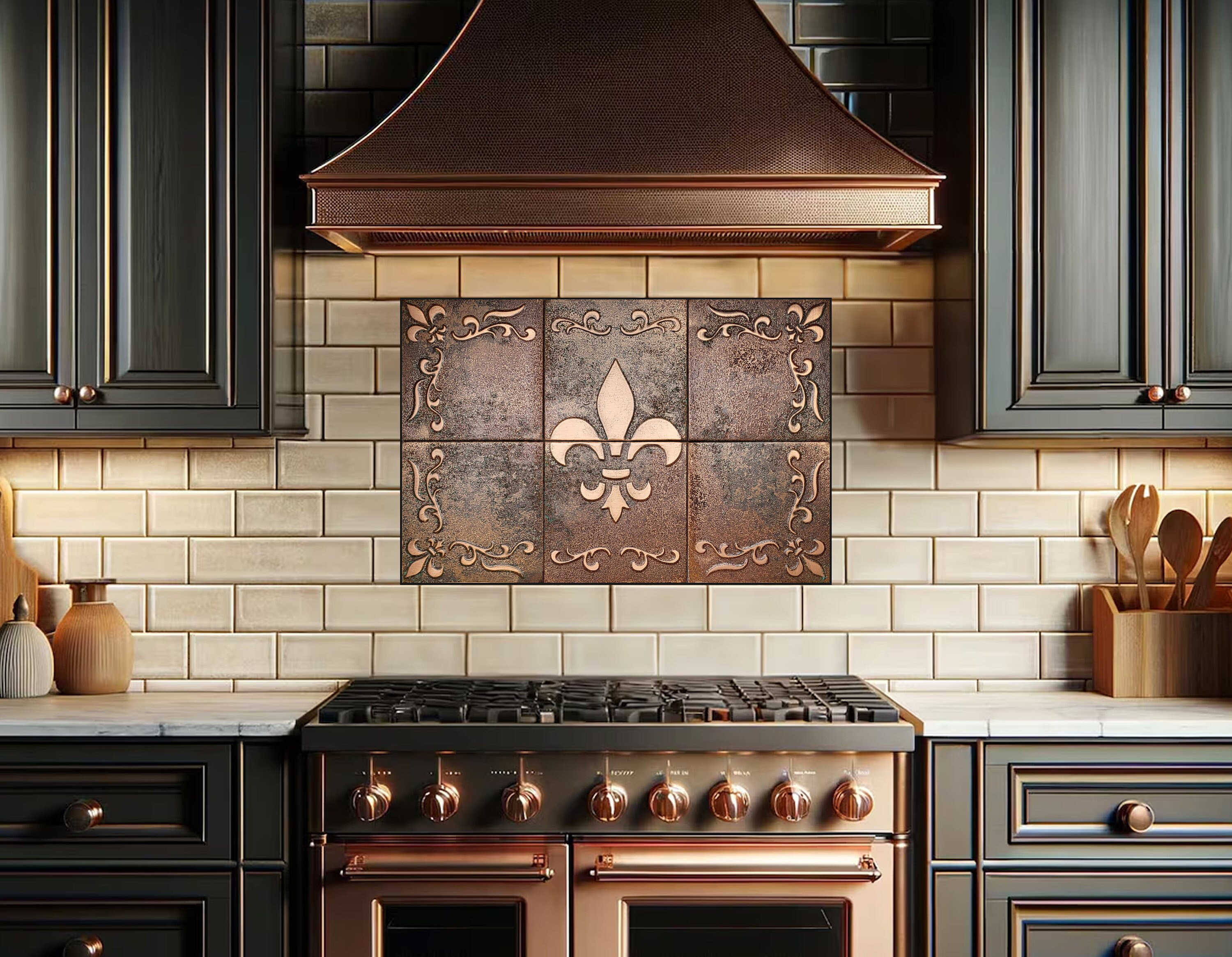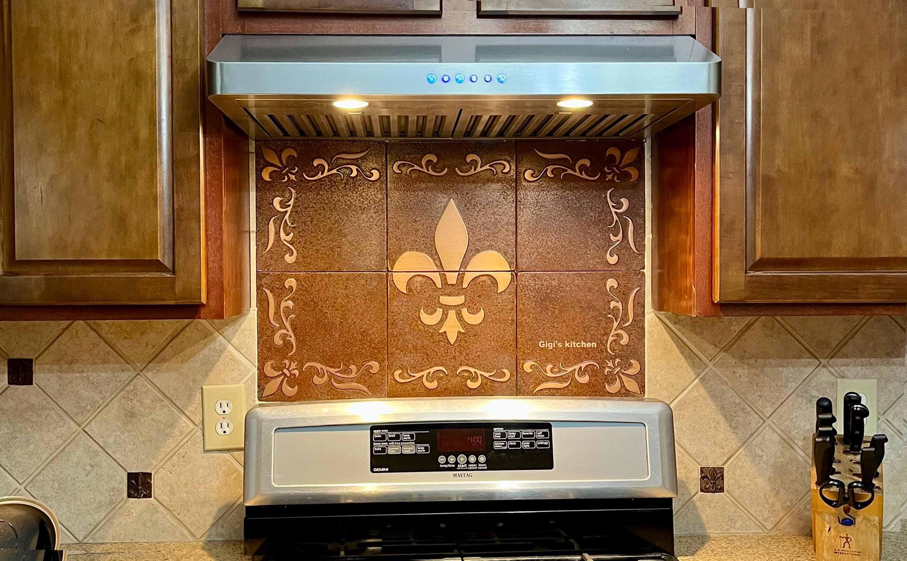 Fleur-de-Lis Backsplash Tile Set – Handmade Copper Art for French Country Kitchens
