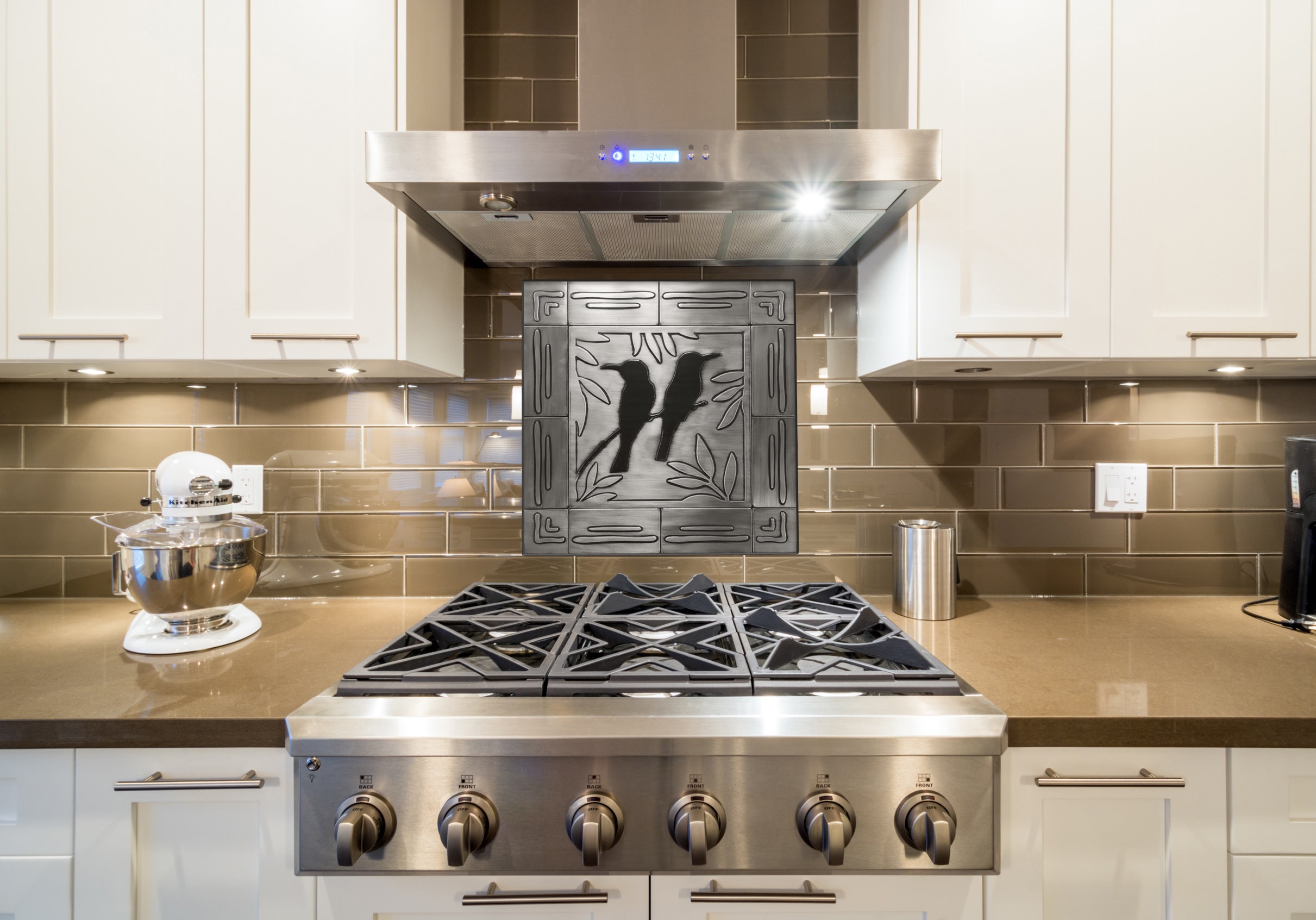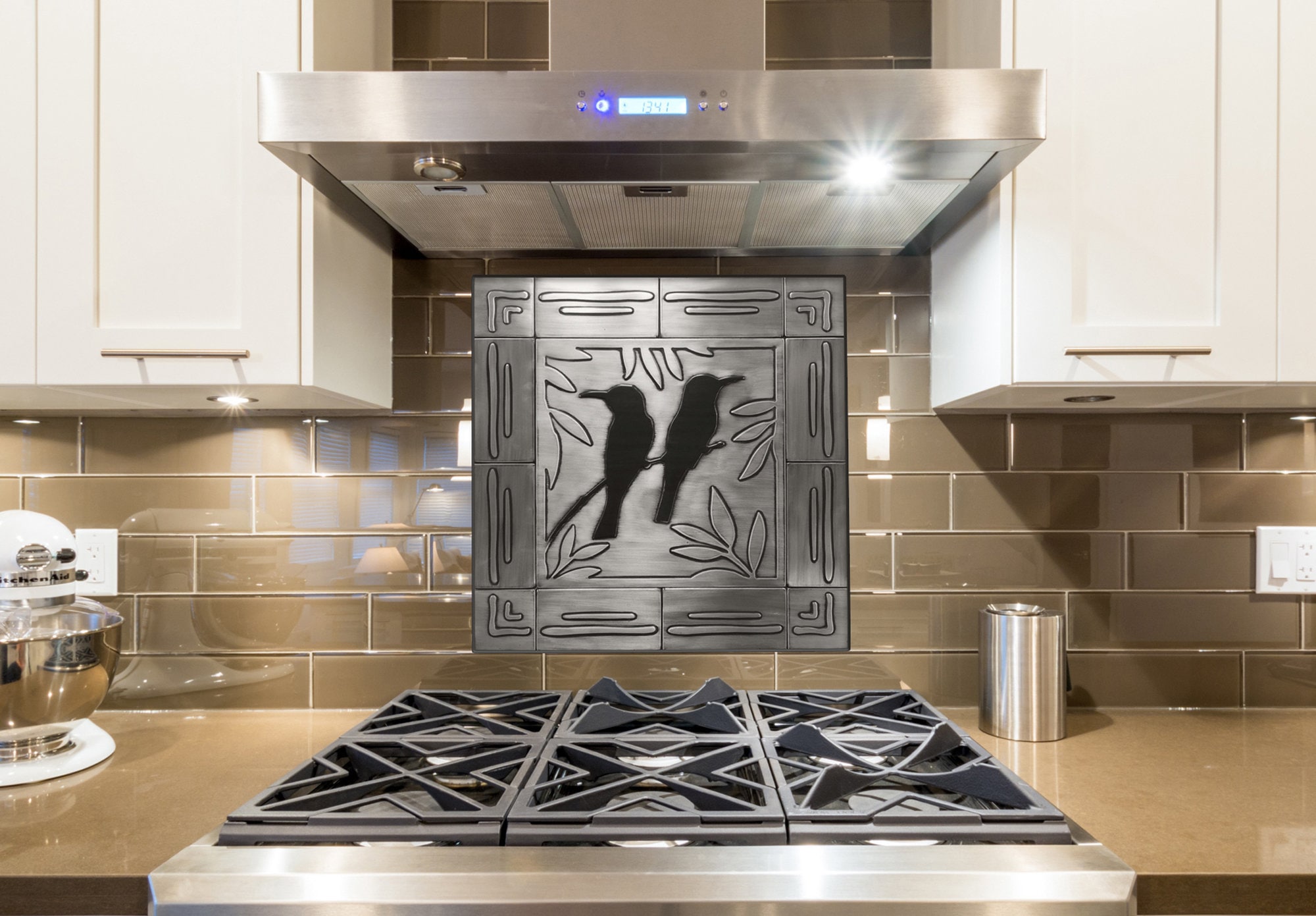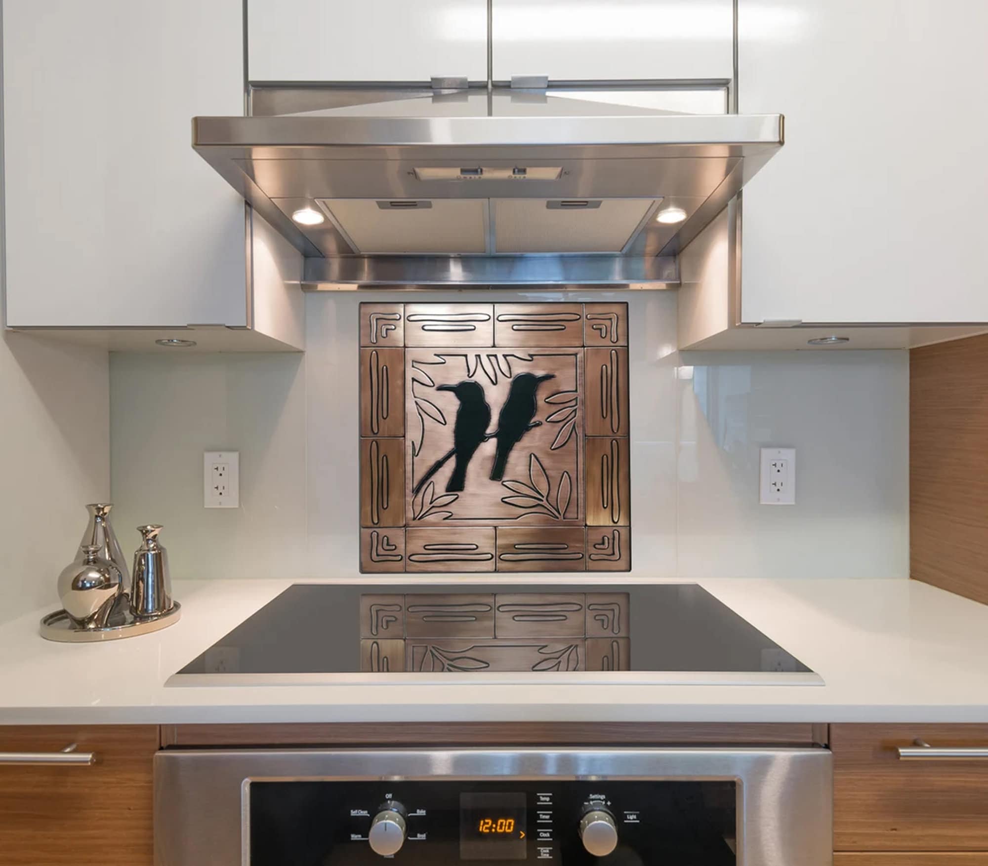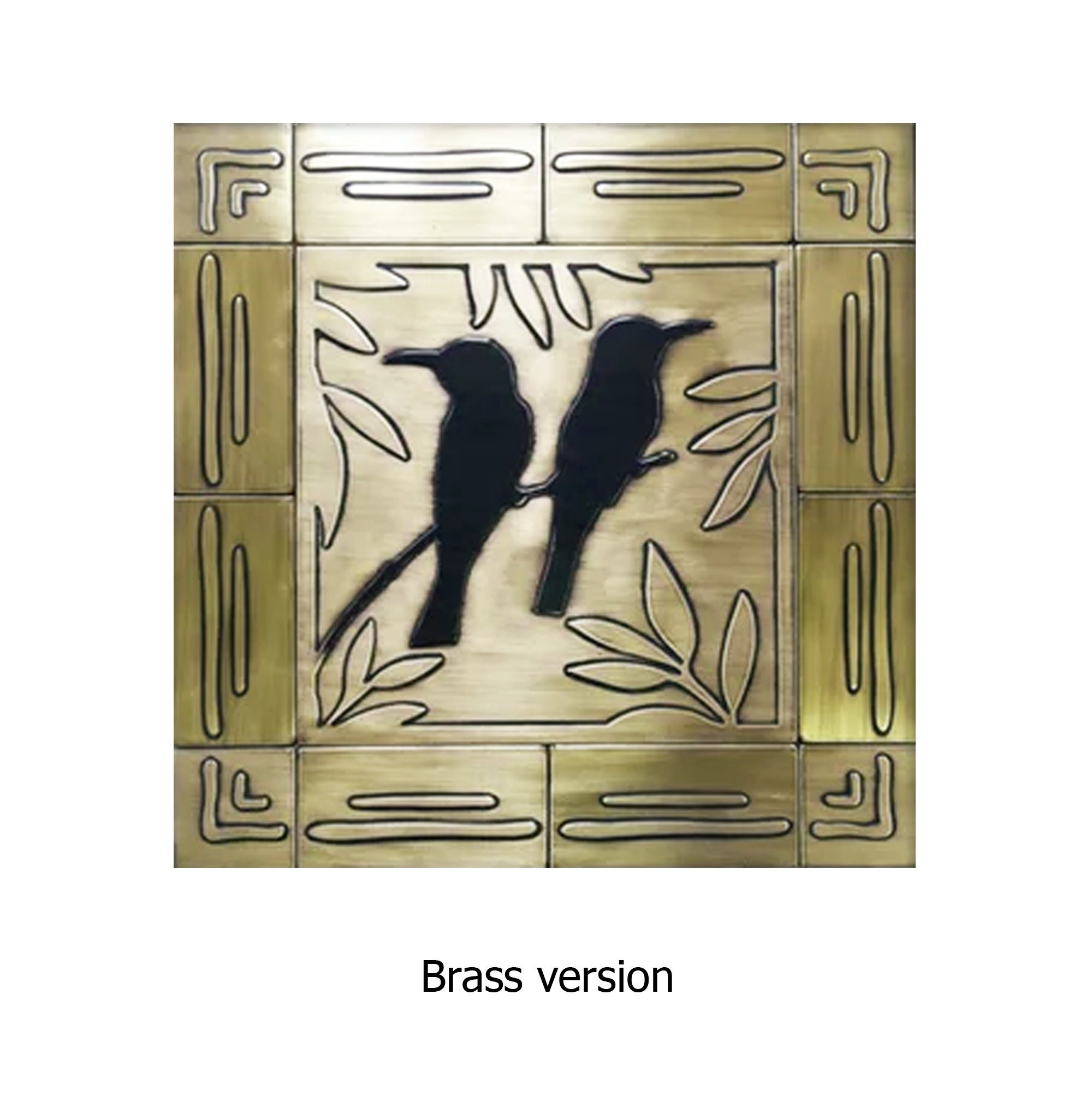 Birds on the branch. Set of 13 handmade tiles - 100% Stainless Steel, Copper or Brass