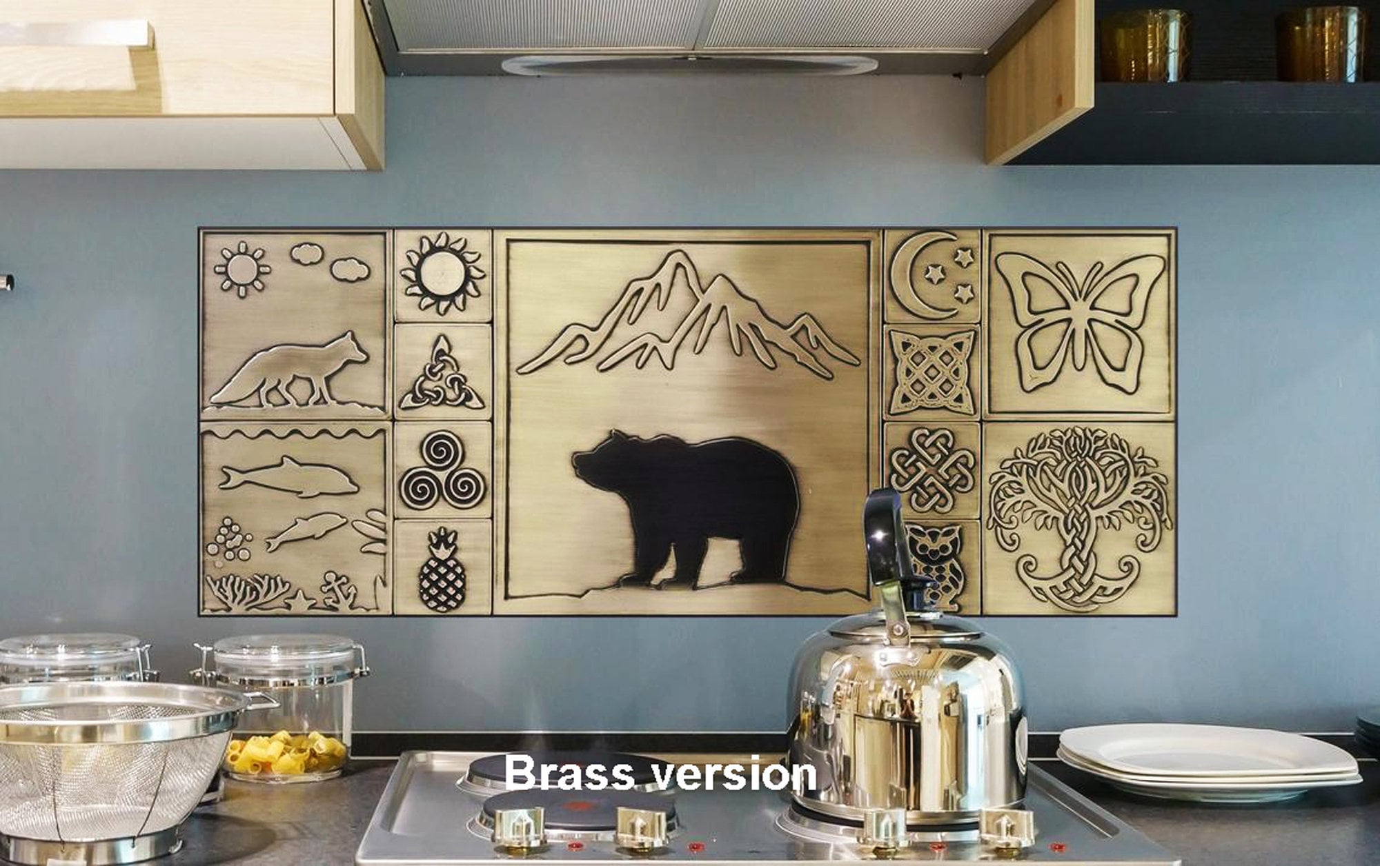 Beautiful, unique backsplash. Set of 13 Handmade tiles - Brass, Copper or Stainless steel