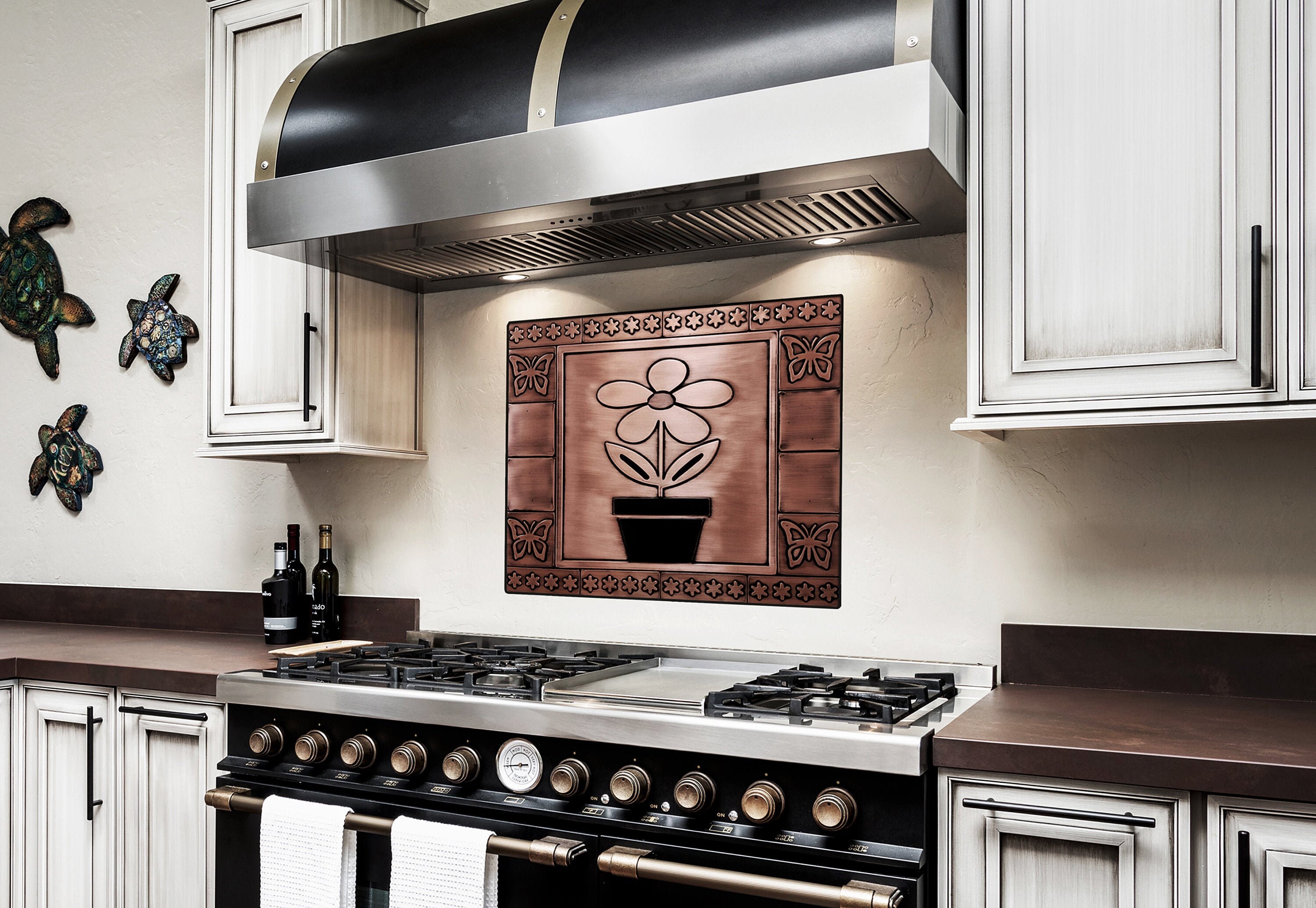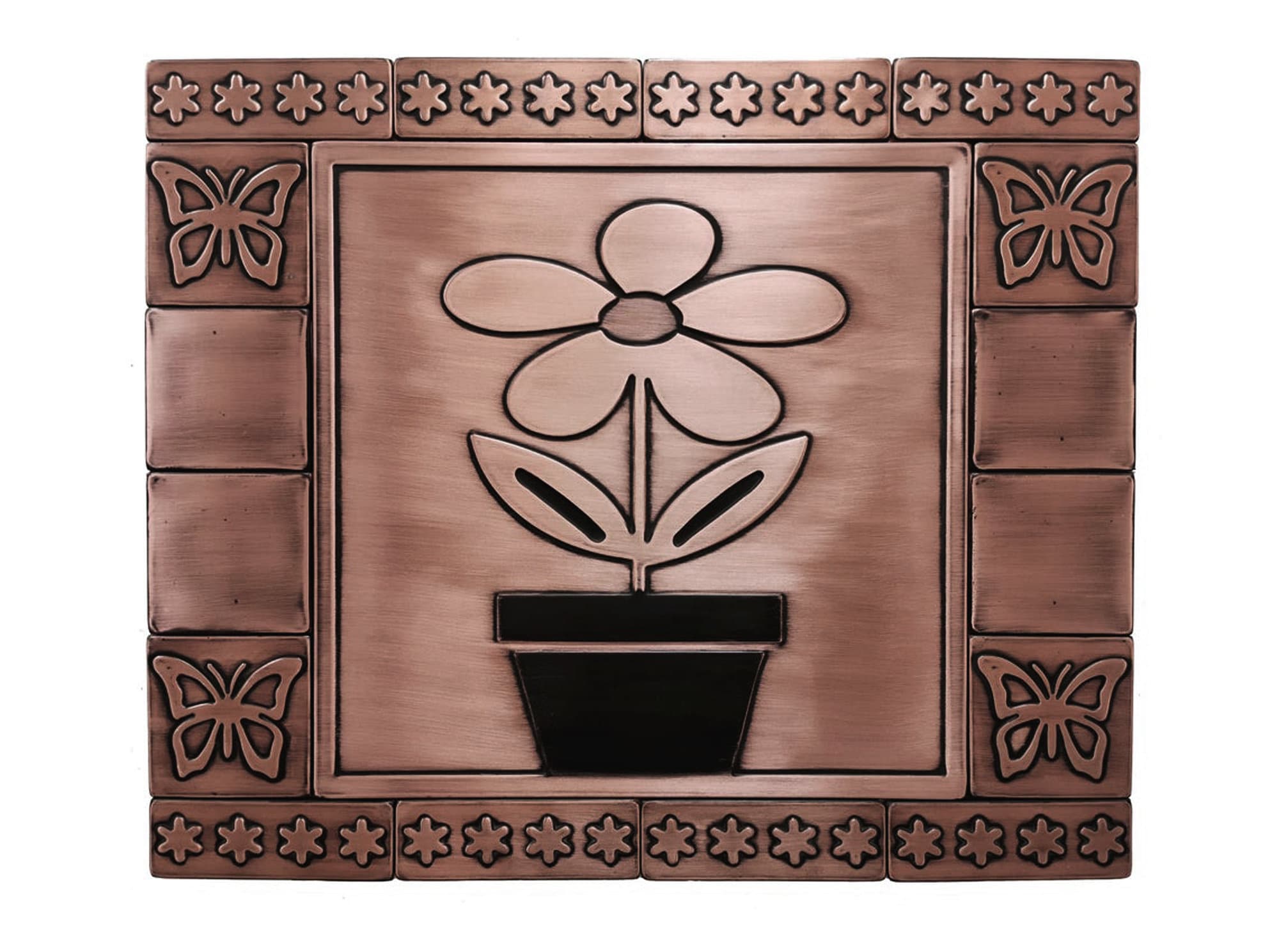 Flower in a pot and butterflies, Set of 17 Handmade tiles - 100% Copper, Stainless Steel or Brass