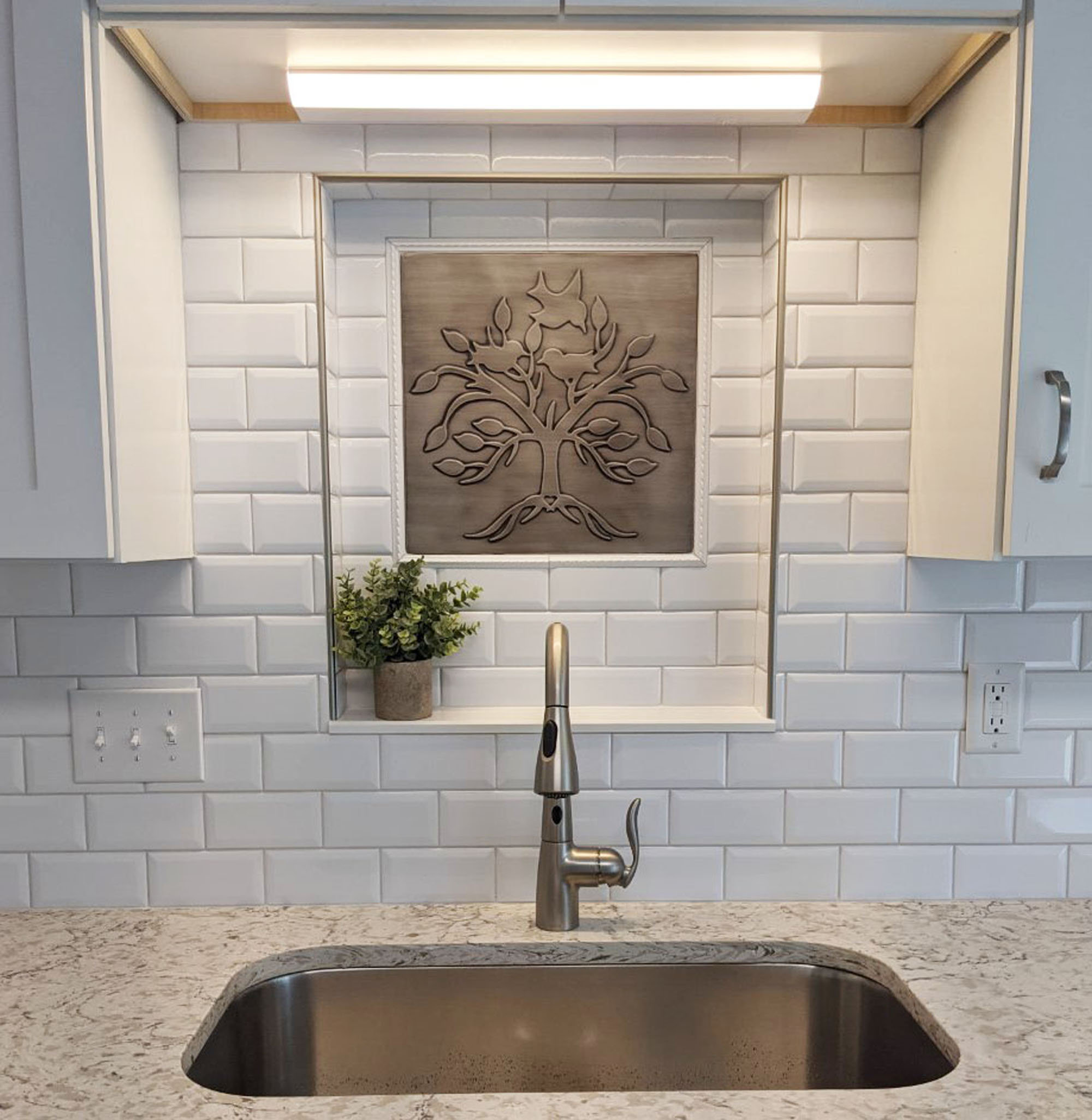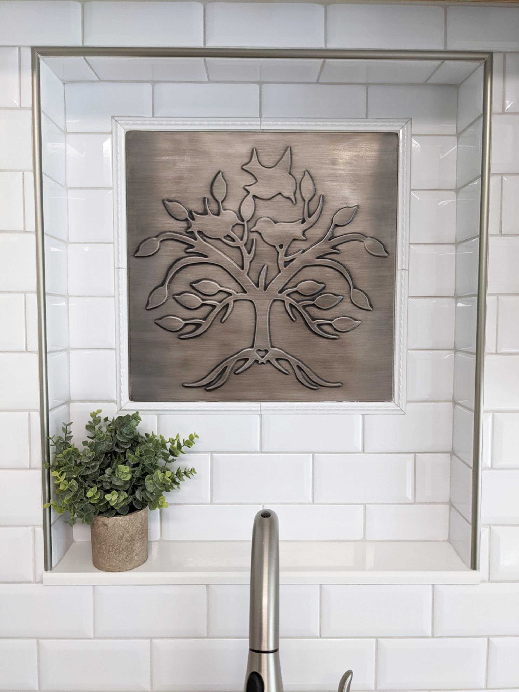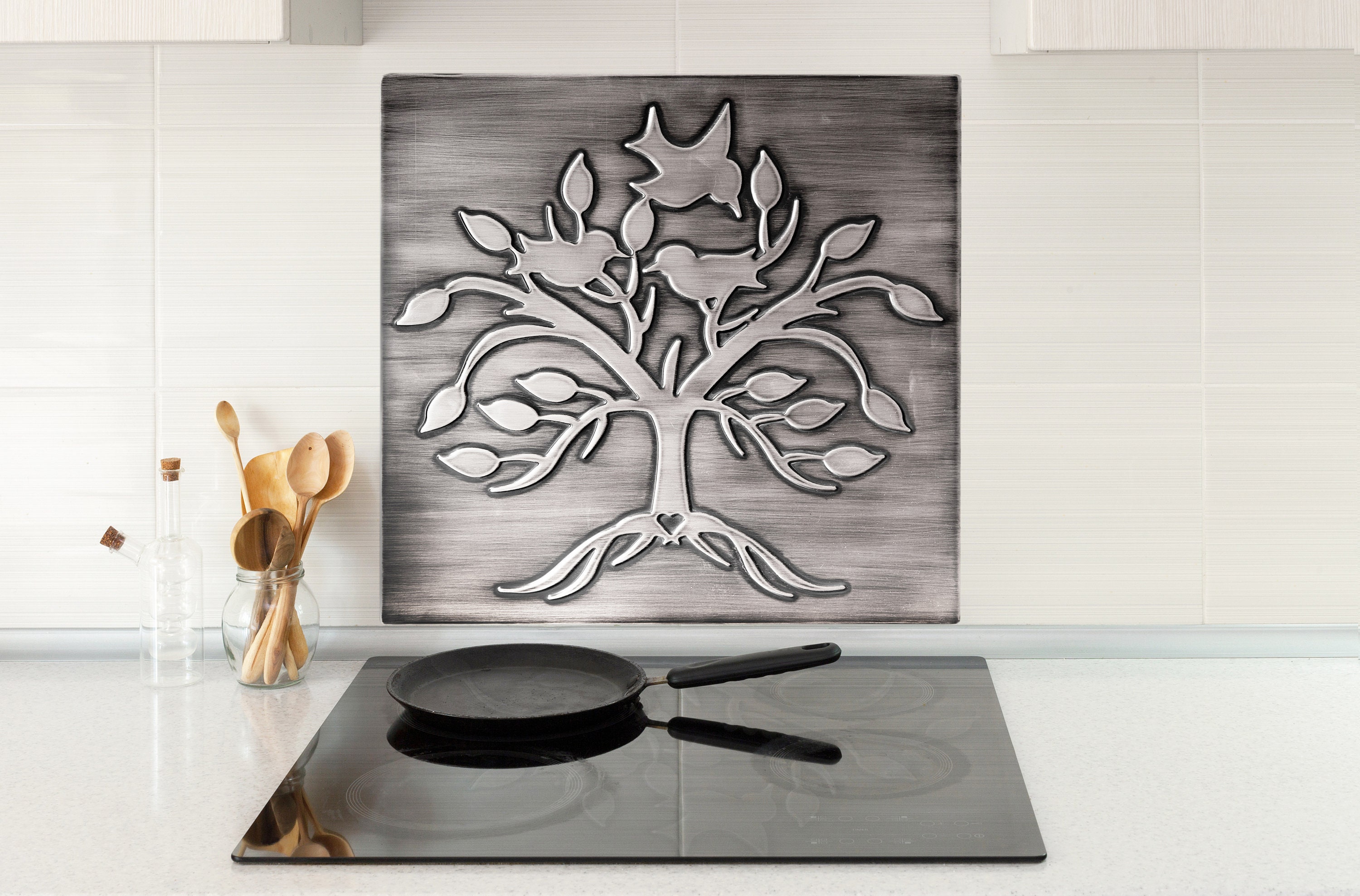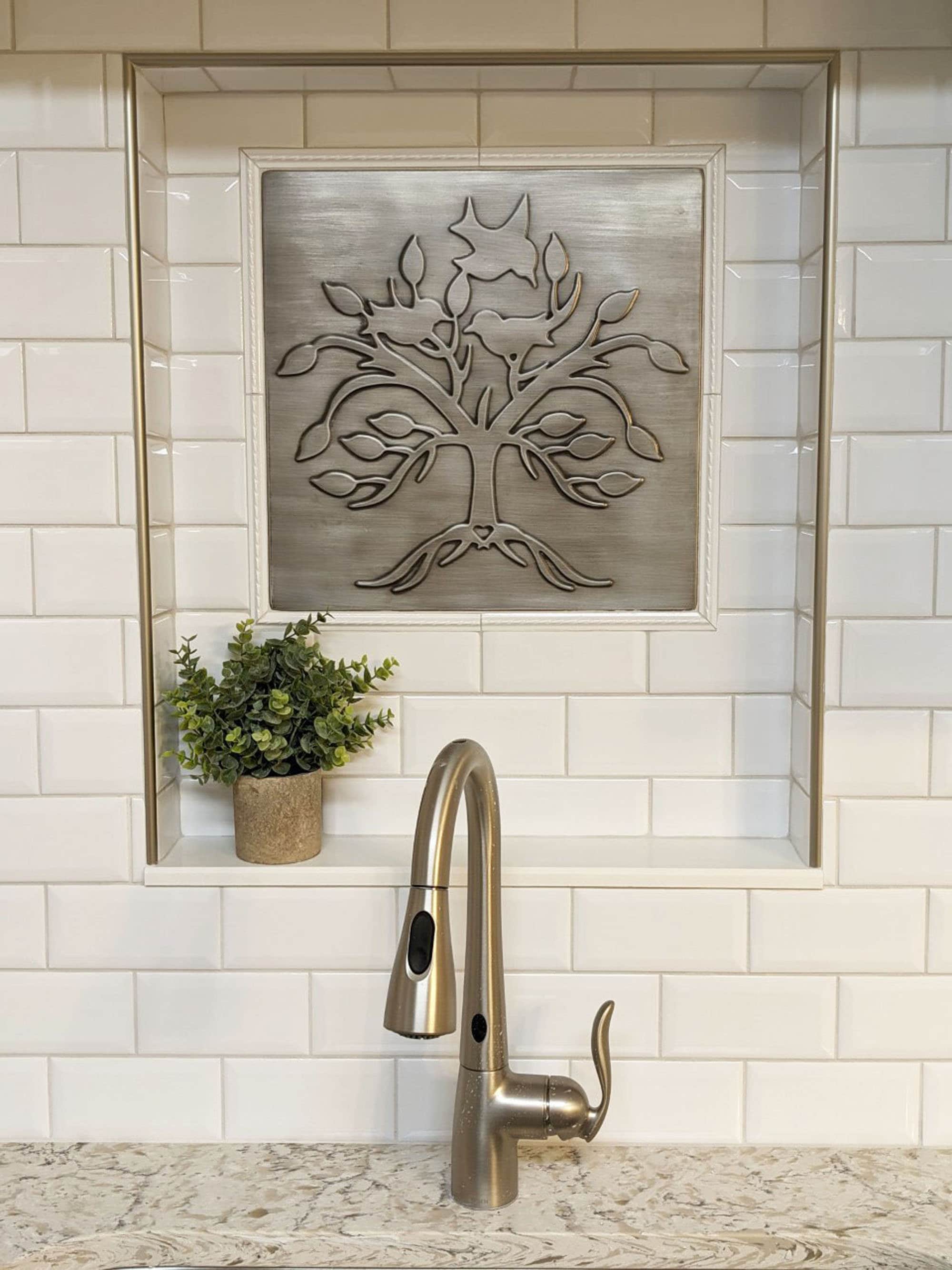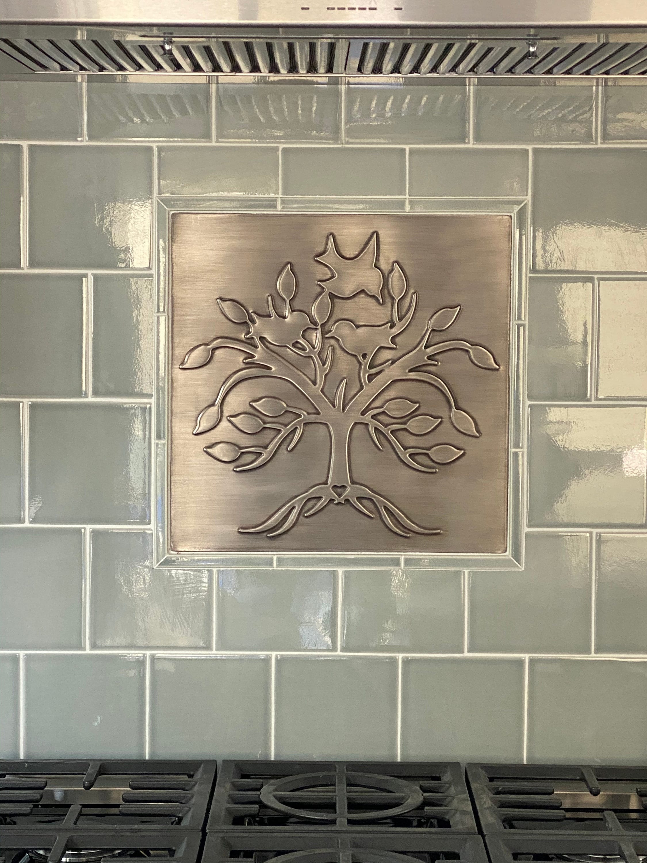 Lovely, unique tree with birds and a heart - Handmade 100% Stainless Steel, Copper, or Brass Tile