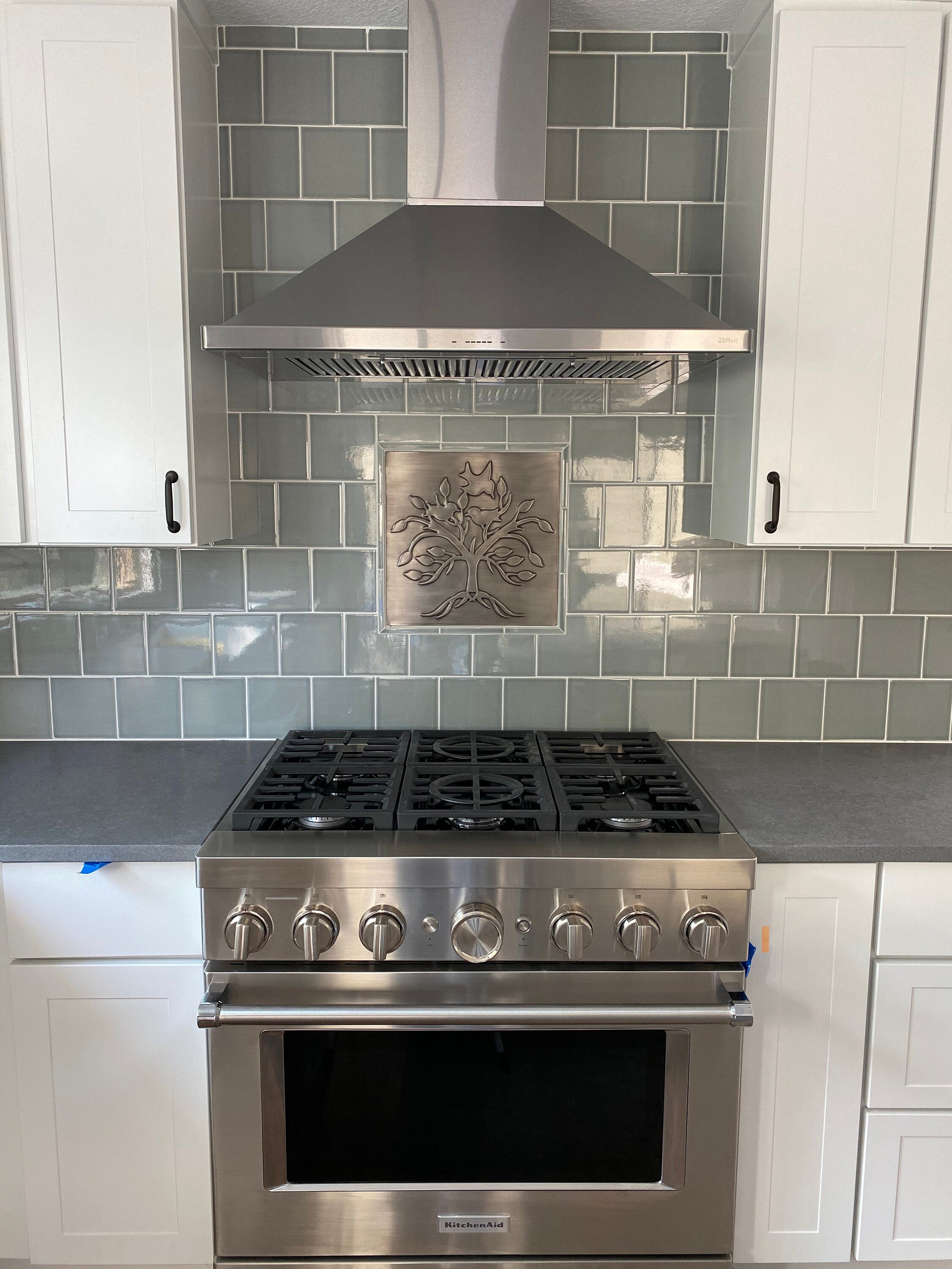 My durable backsplash tiles are 0.2" thick (6 mm) and very easy to install - just like regular tiles, using about 0.18" (3 mm) grout. Moreover, the maintenance is not a problem. Use 1/2 cup of liquid dishwashing detergent and 2 cups of warm water or mild soap solution. Use a soft cloth or rag, not an abrasive sponge, nor a pad. When cleaning the tile's surface, wipe it gently then rinse the cloth or rag with warm water. Wipe the tile's surface until you make sure that any soap or dishwashing detergent residue is removed. Then dry the surface with a soft cloth or a rag.