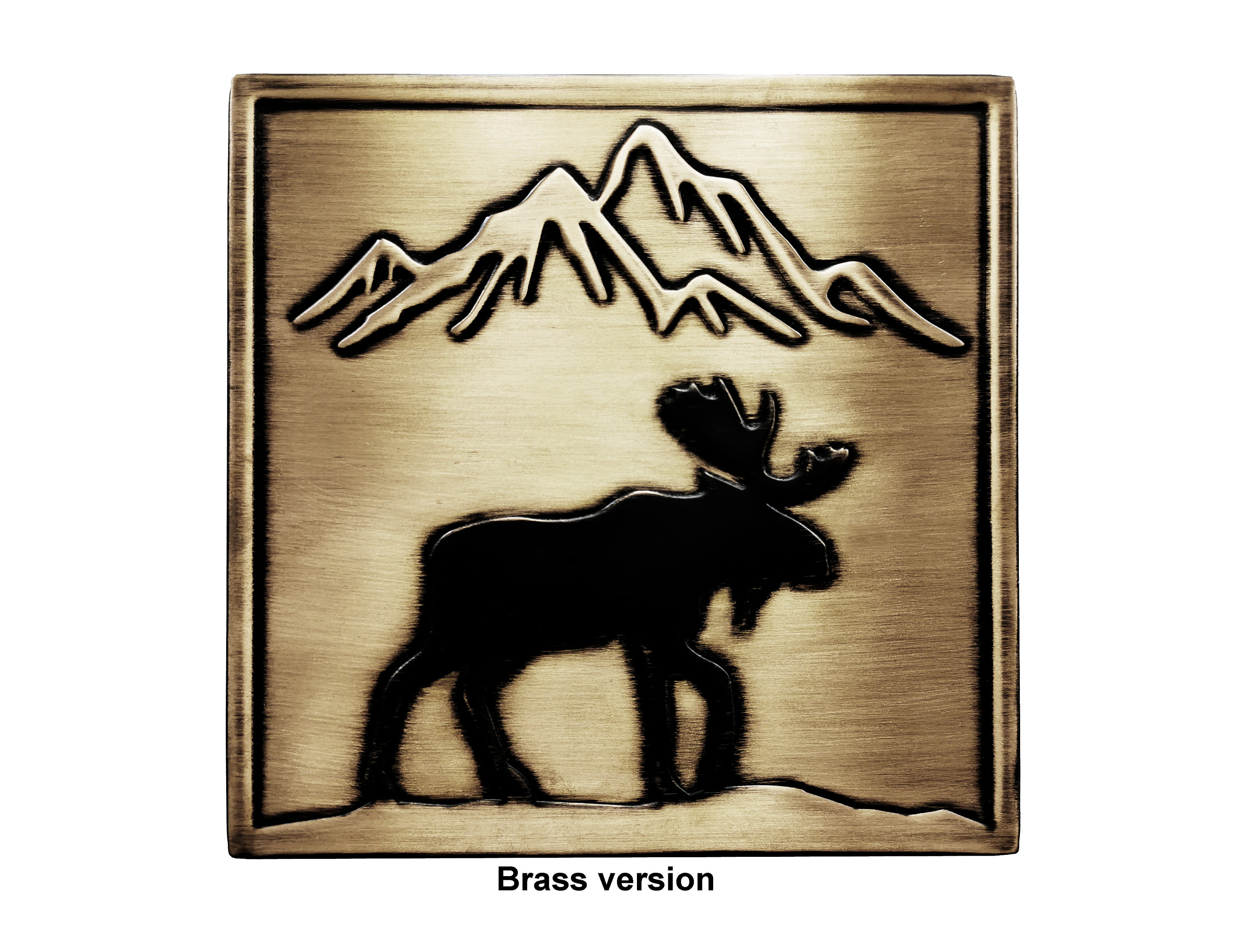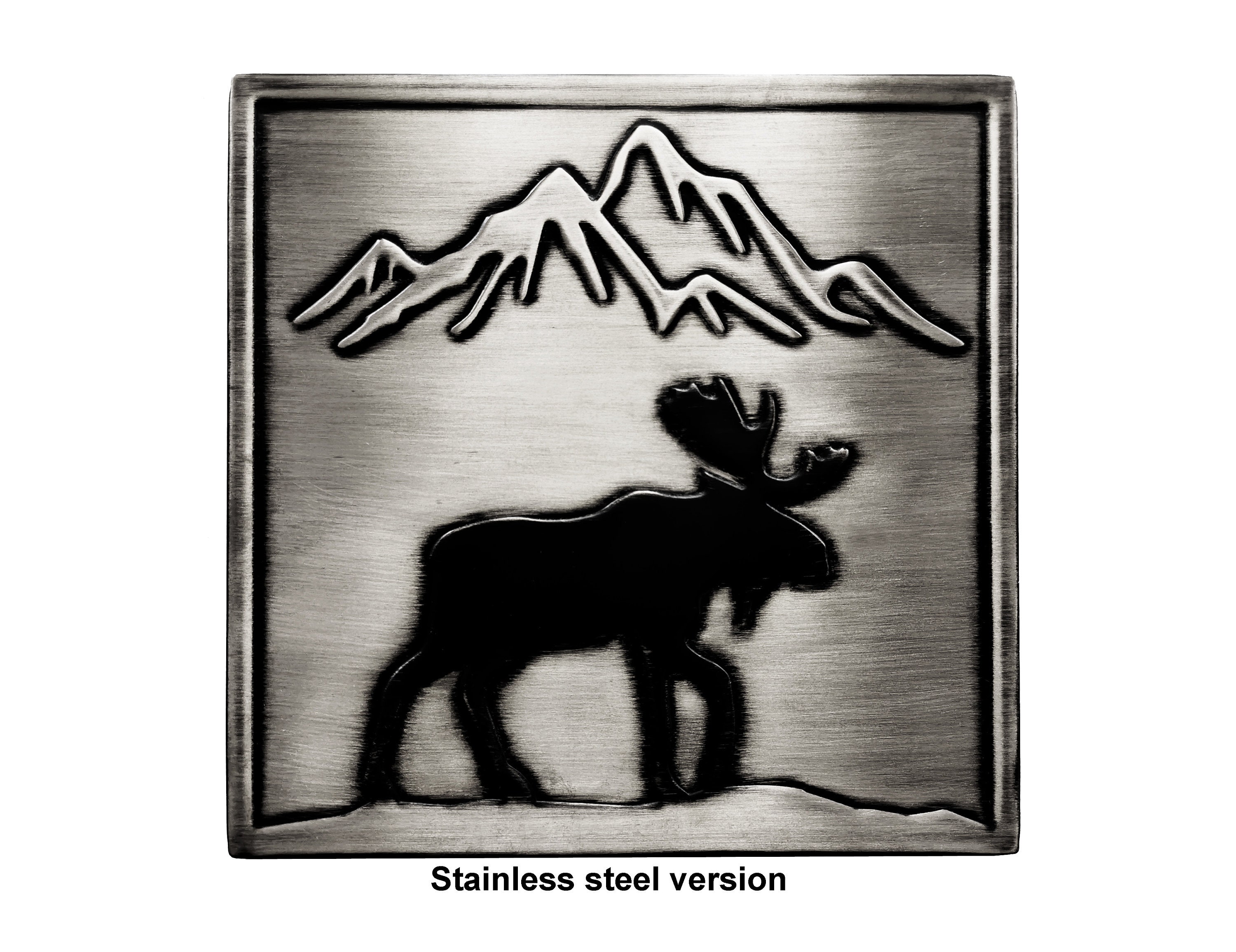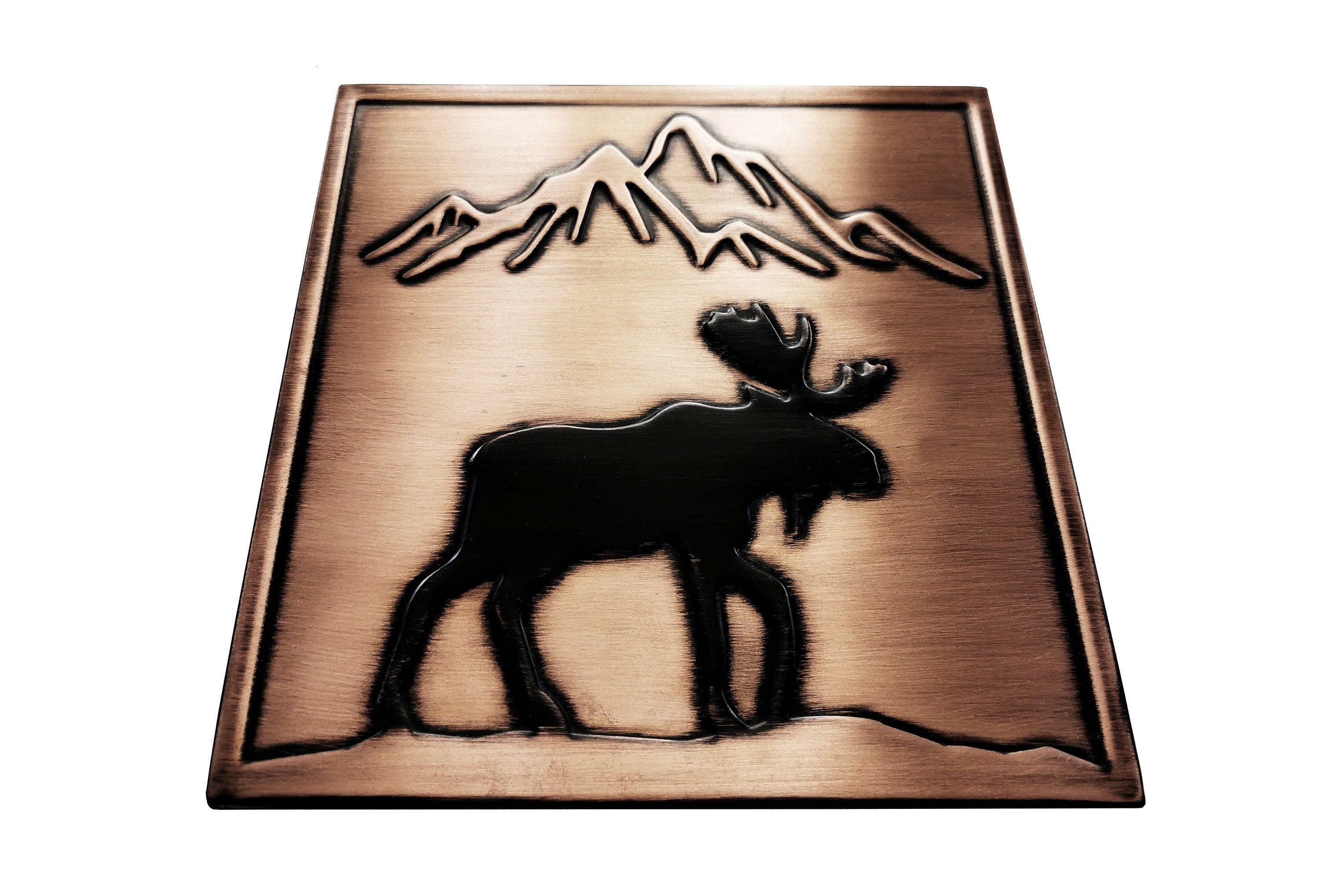 Moose and mountains - Handmade 100% Copper, Brass or Stainless Steel Tile. Metal wall art, wall tile, kitchen tile, rustic,