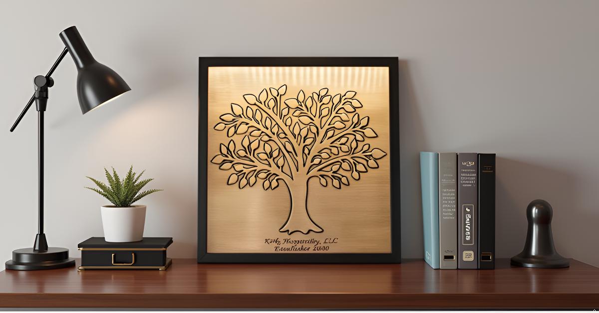 Personalized, lovely tree of life in a beautiful, unique wooden frame. Handmade, 100% Copper and wood