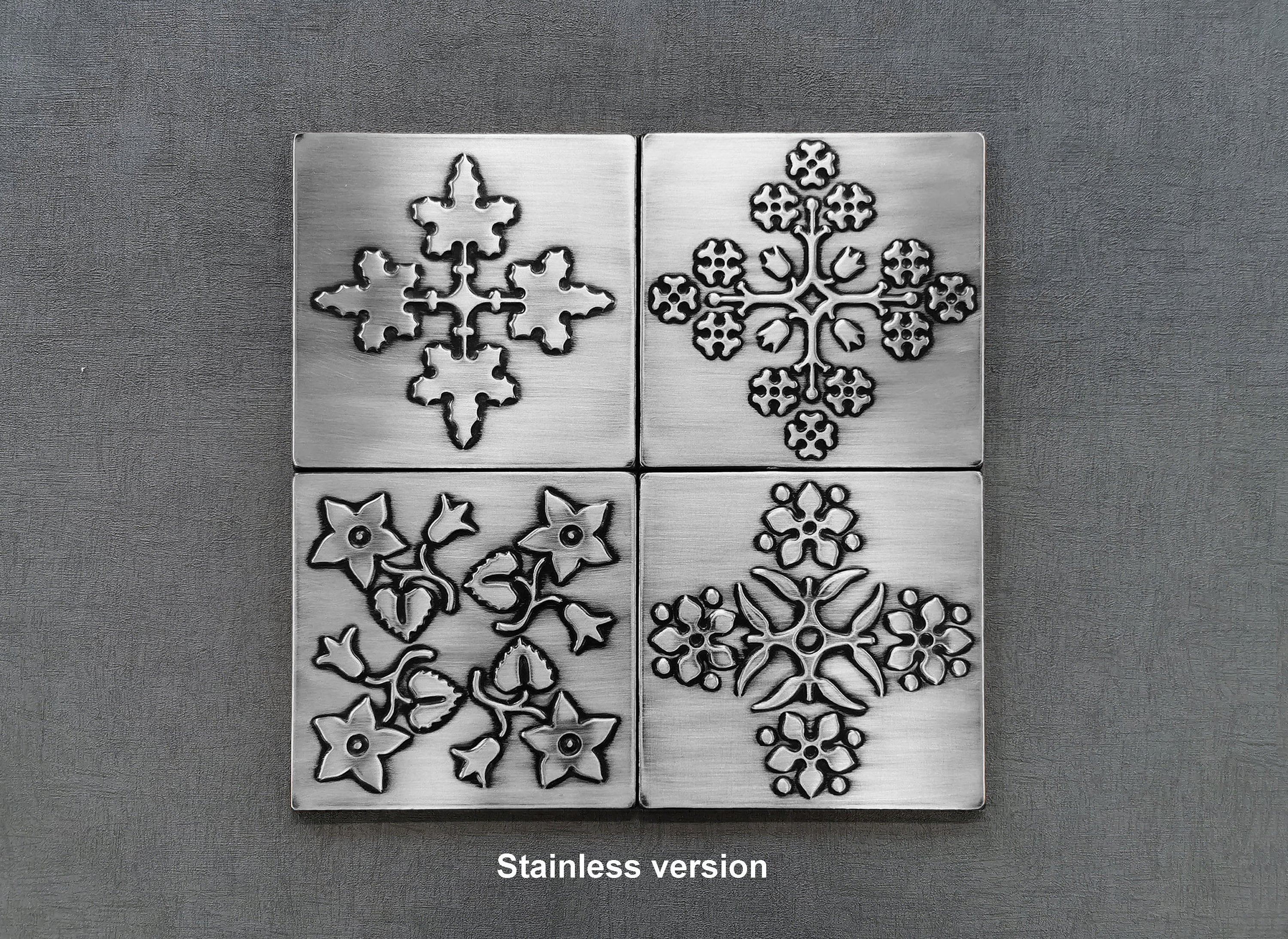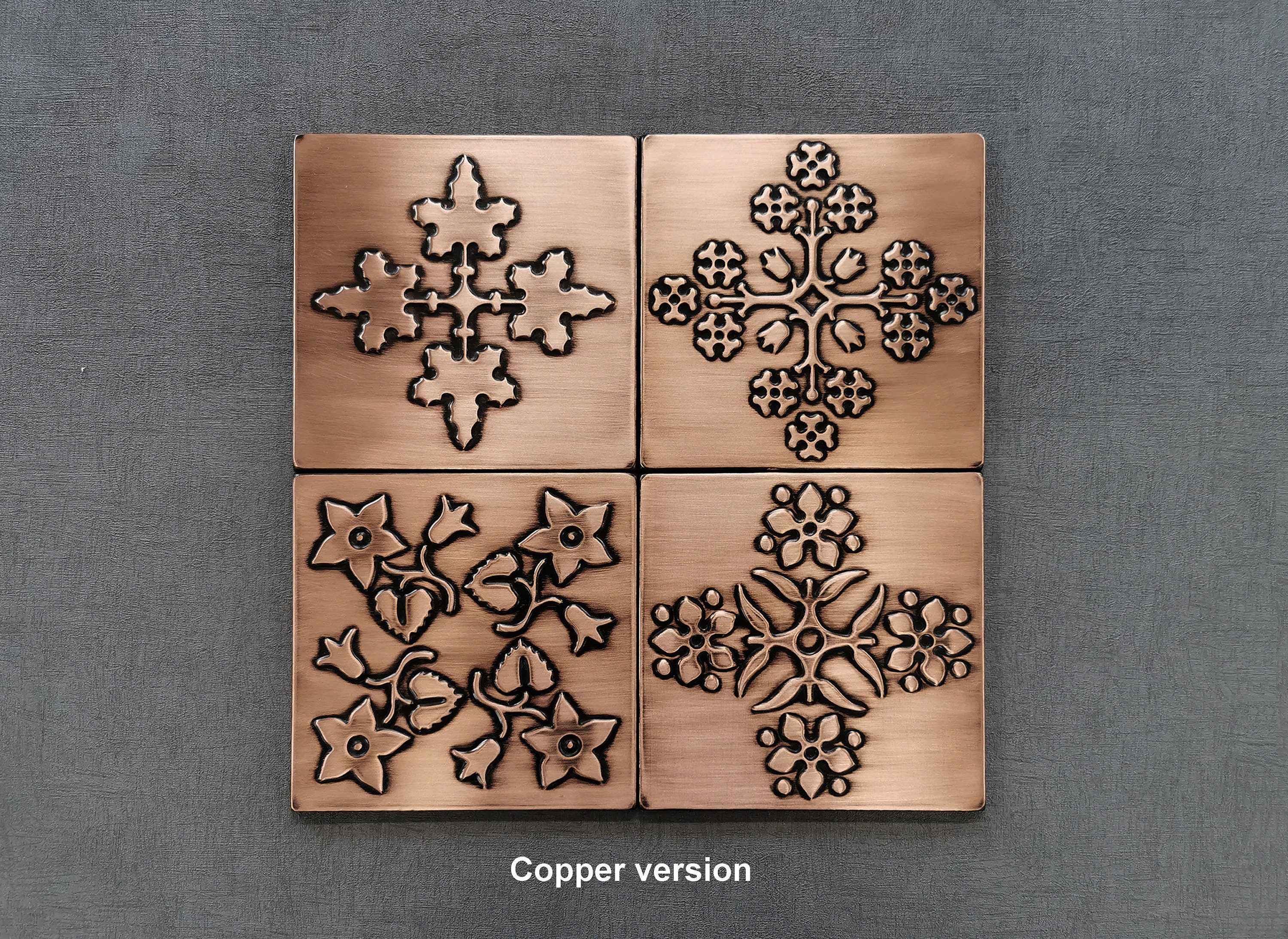 Magnificent patterns - Set of 4 Handmade tiles - 100% Brass, Copper or Stainless Steel