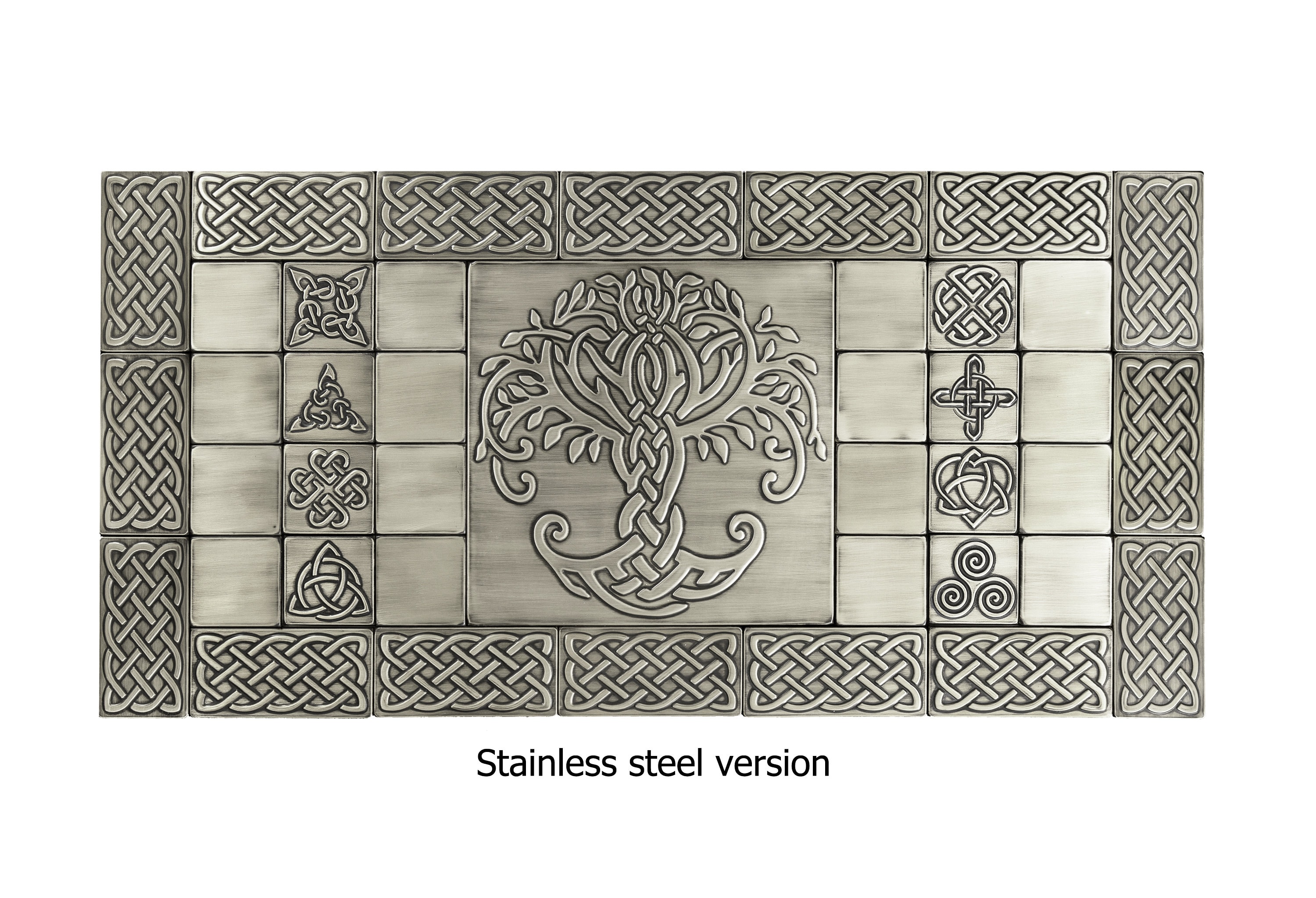 The most beautiful, magnificent celtic backsplash - Set of 29 Handmade tiles - 100% Copper, Stainless Steel or Brass. The perfect backsplash for celtic art lovers.
