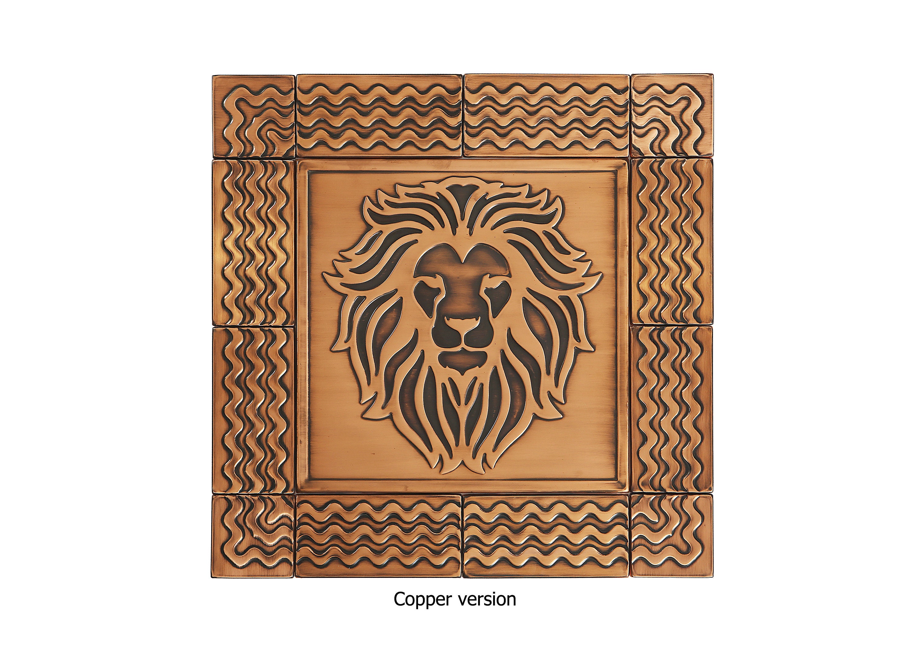 Dignified Lion - Set of 13 Handmade tiles - 100% Copper, Stainless Steel or Brass. The perfect backsplash for wild nature lovers.